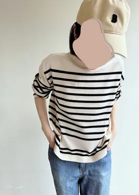 搭配前色牛仔褲或款褲,清爽日常休閒穿搭造型