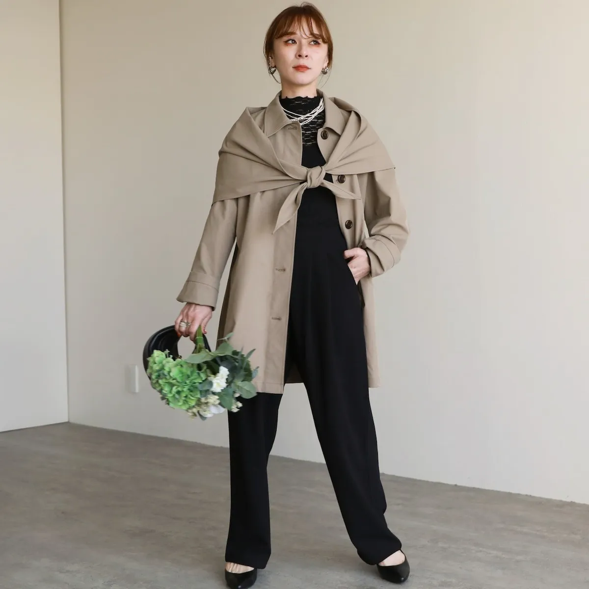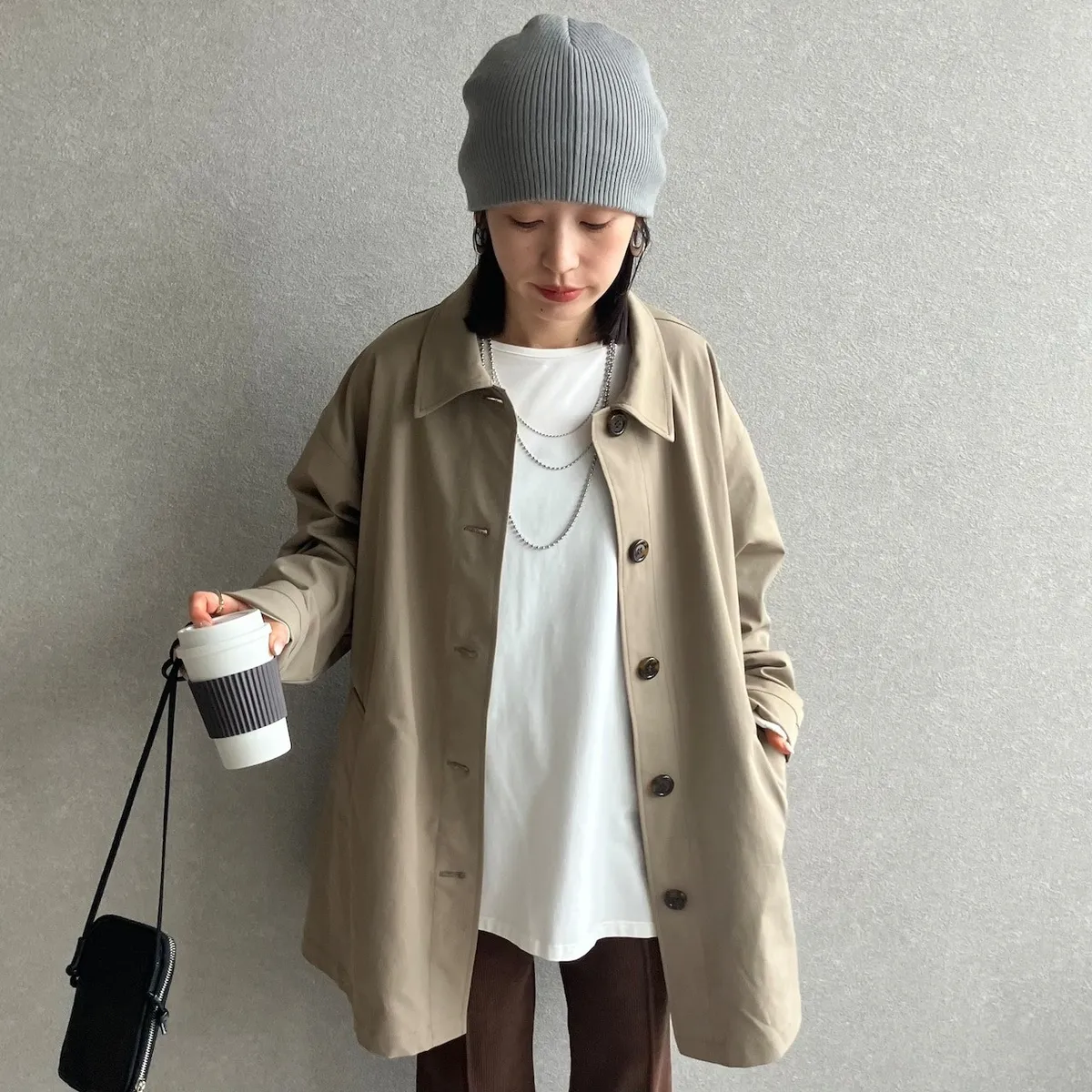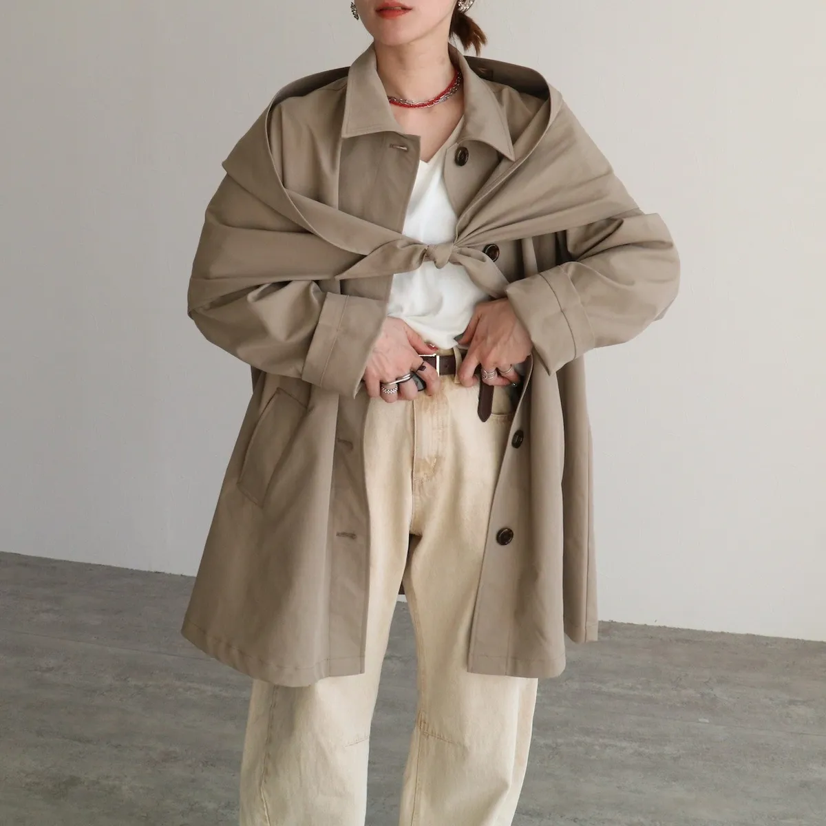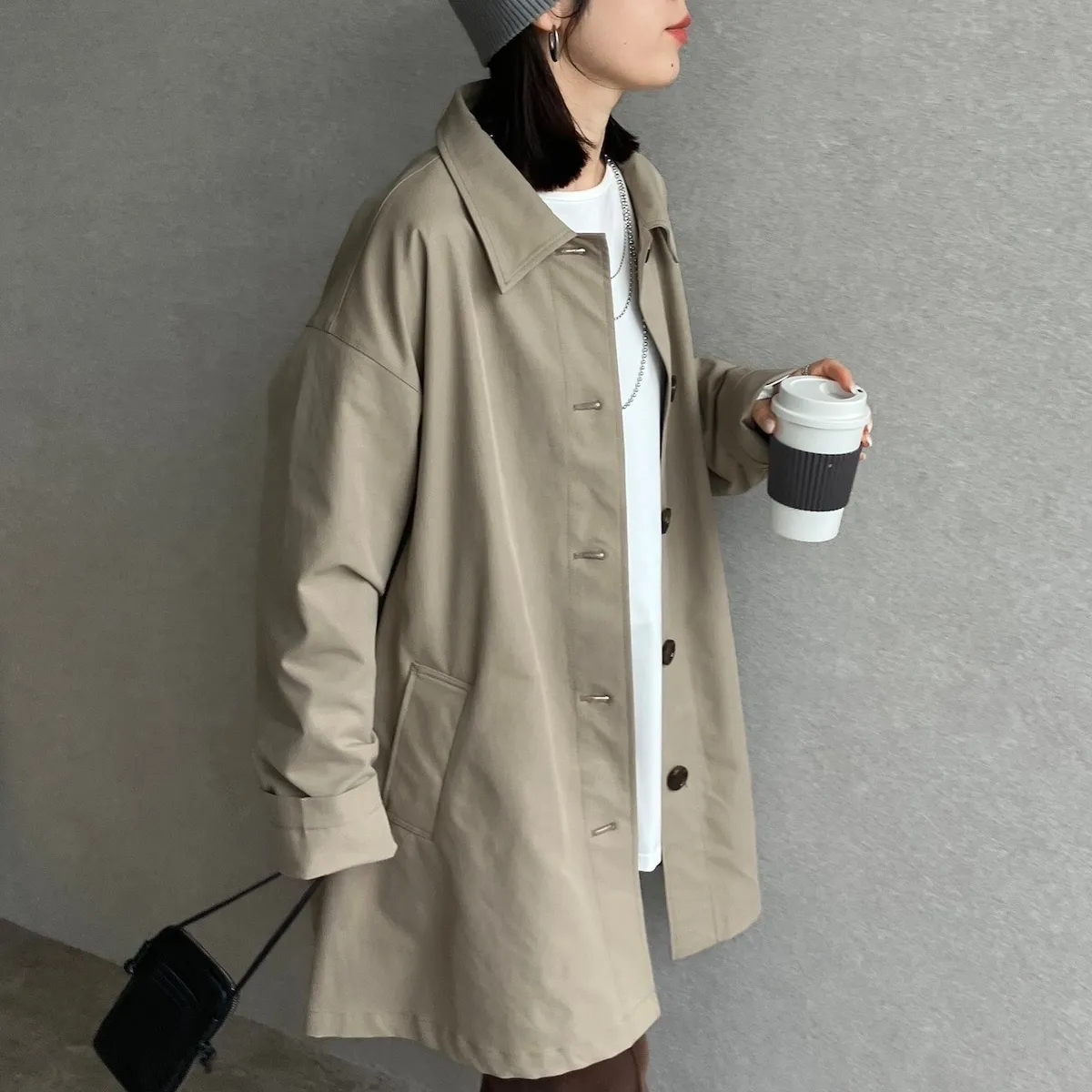 寬袖增加空間與份量感.內搭穿搭空間活動餘裕