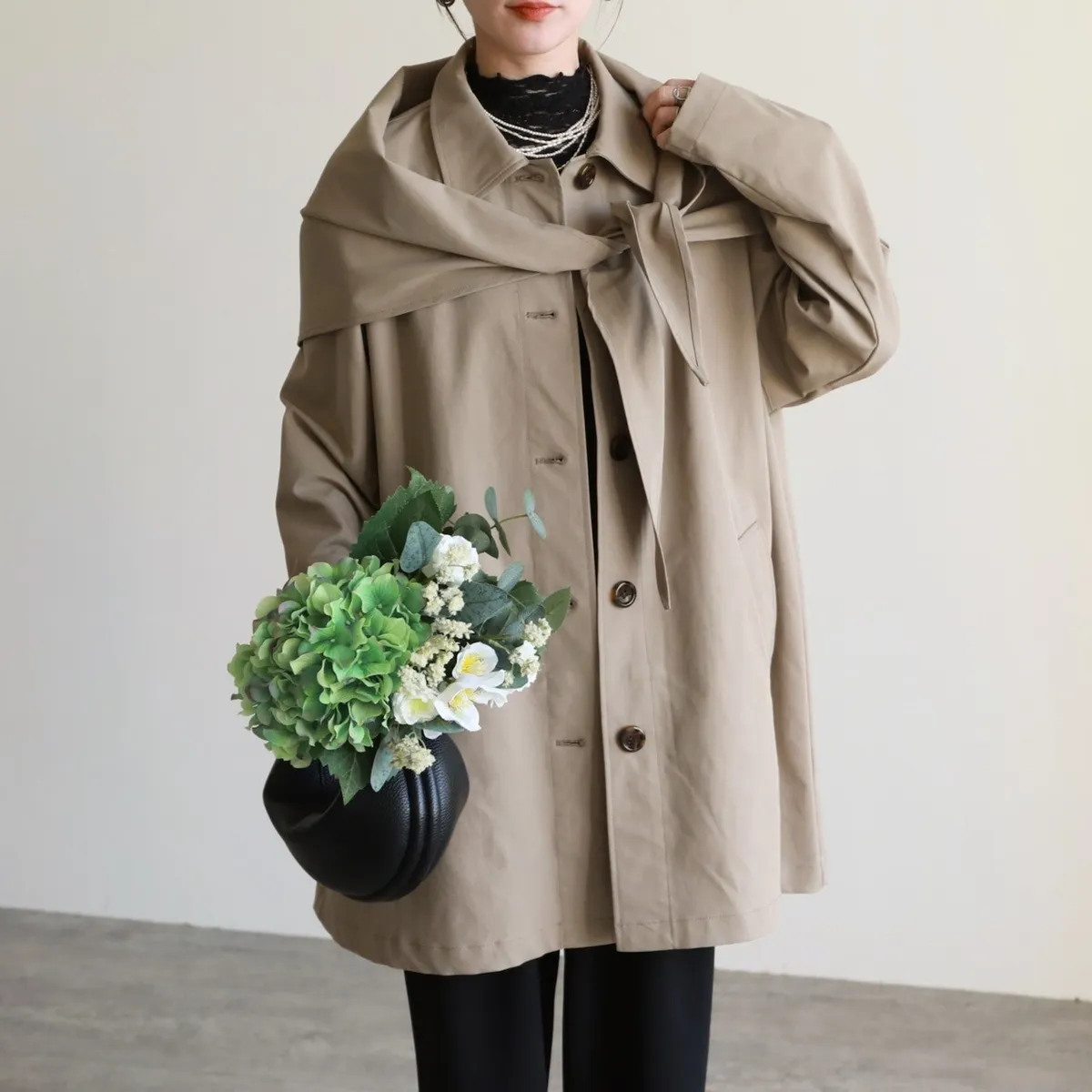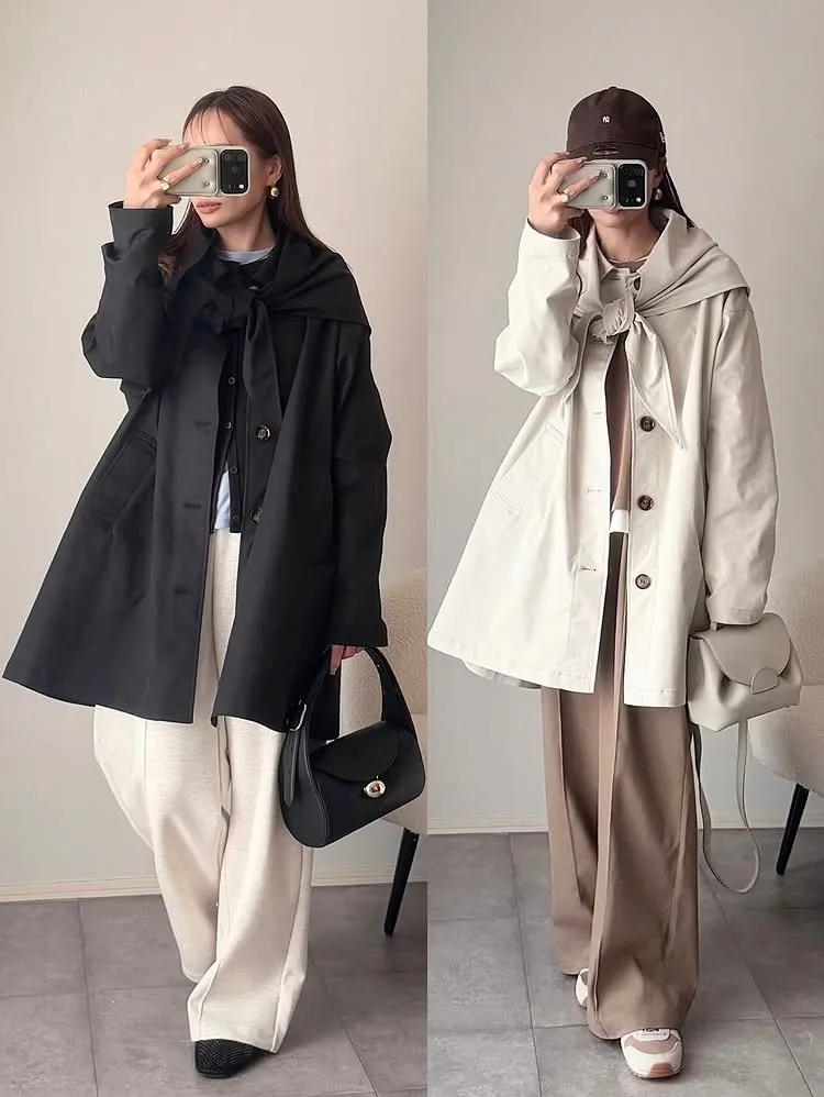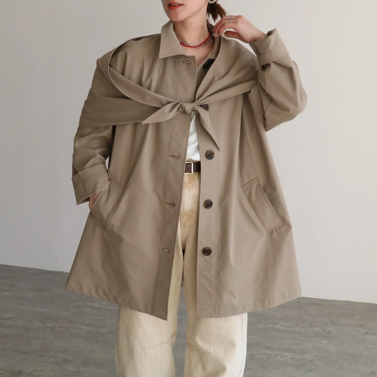 簡單~有造型~付一個三角巾<風衣面料>