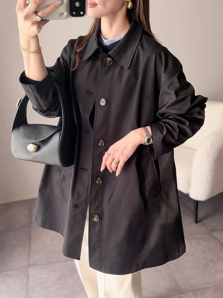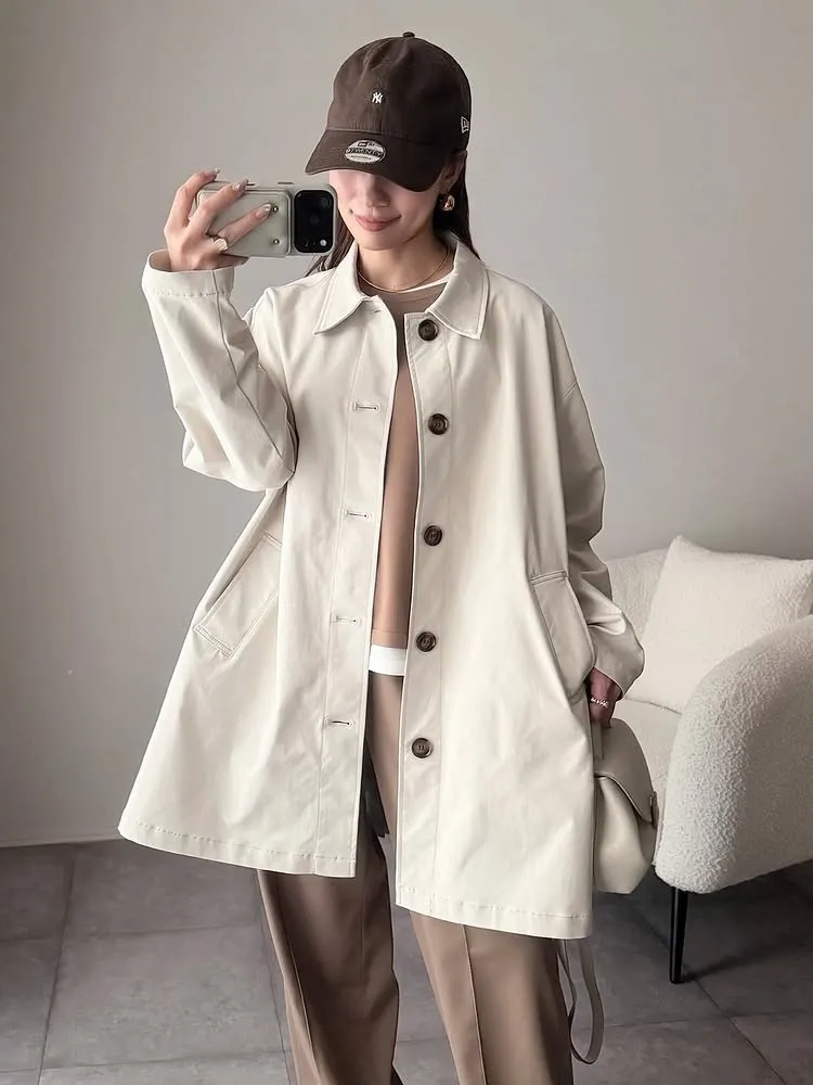 風衣布料+中長版襯衫版型-簡約好搭配