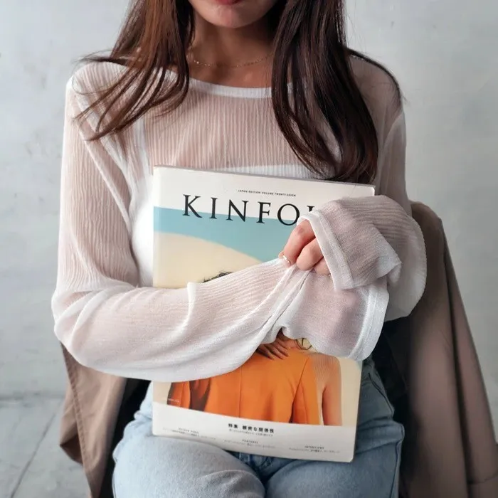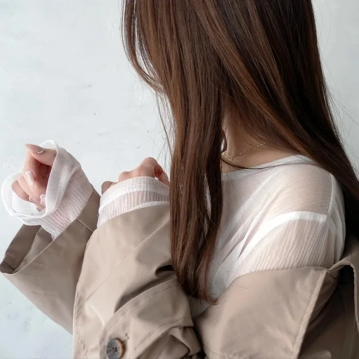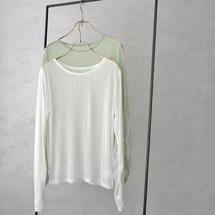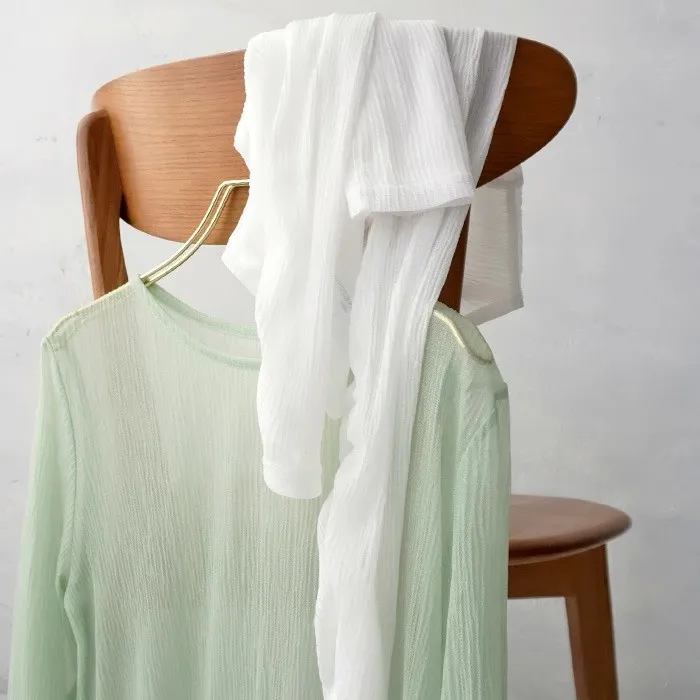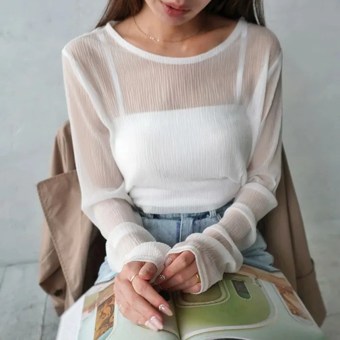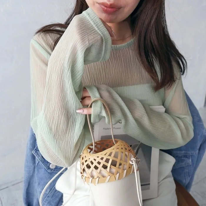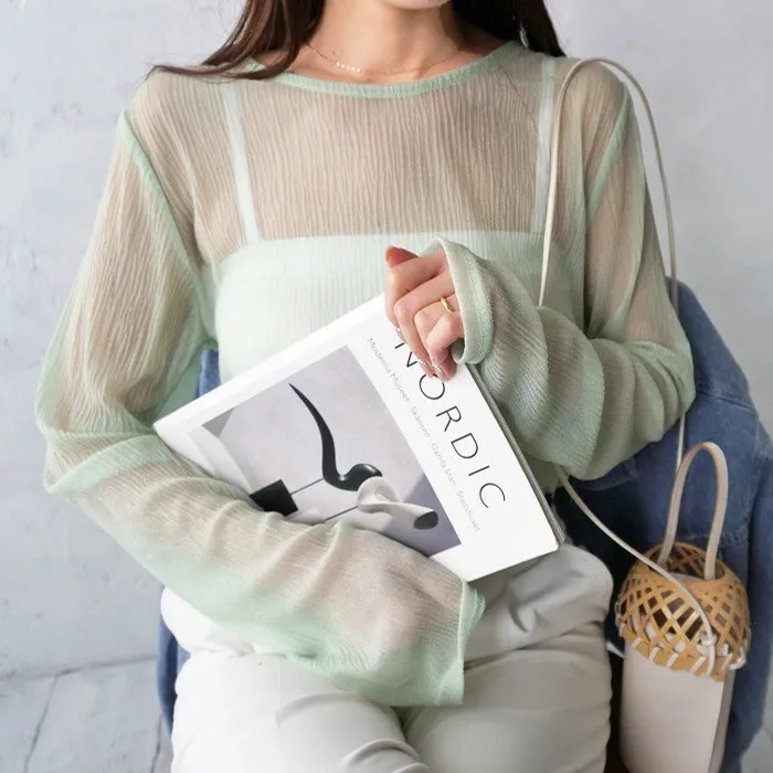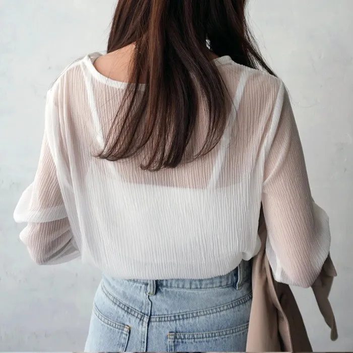 楊柳紋路透視雪紡罩衫上衣