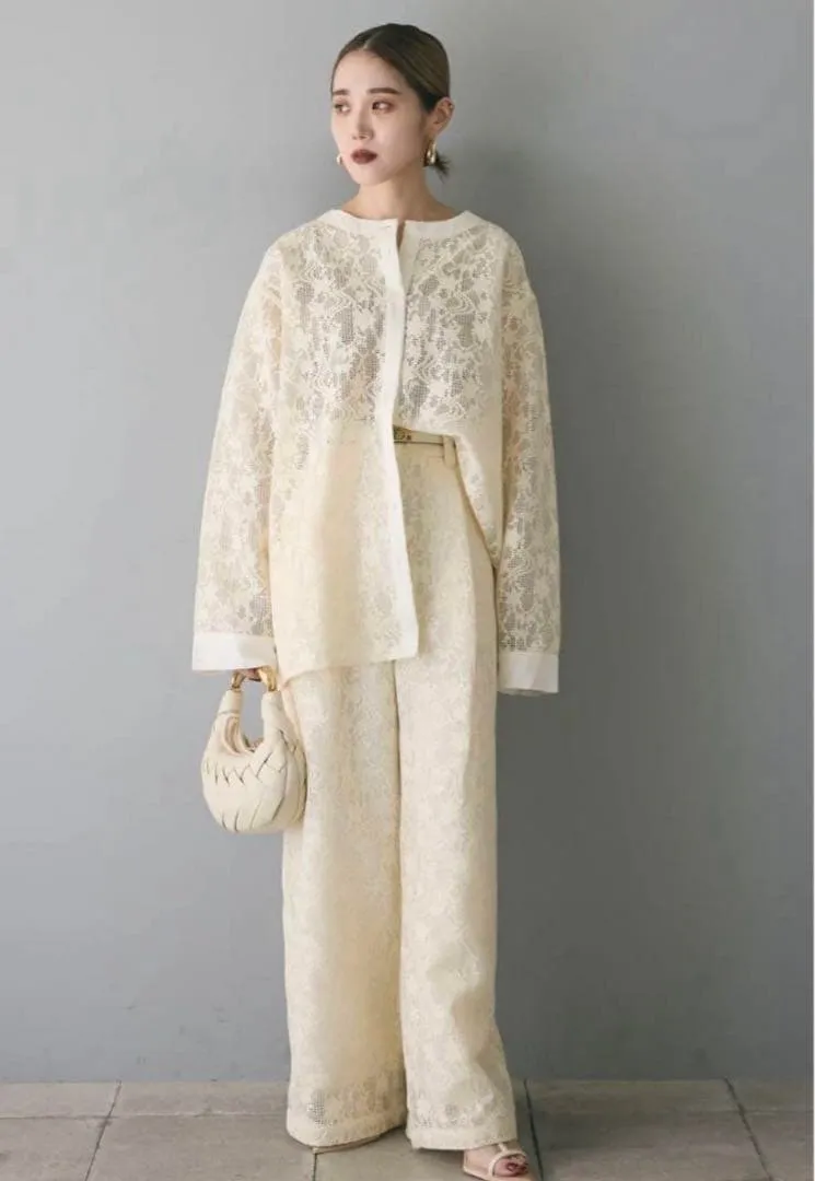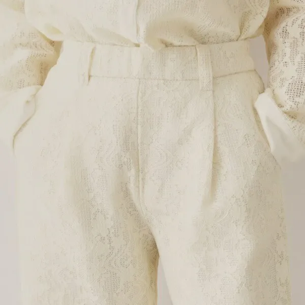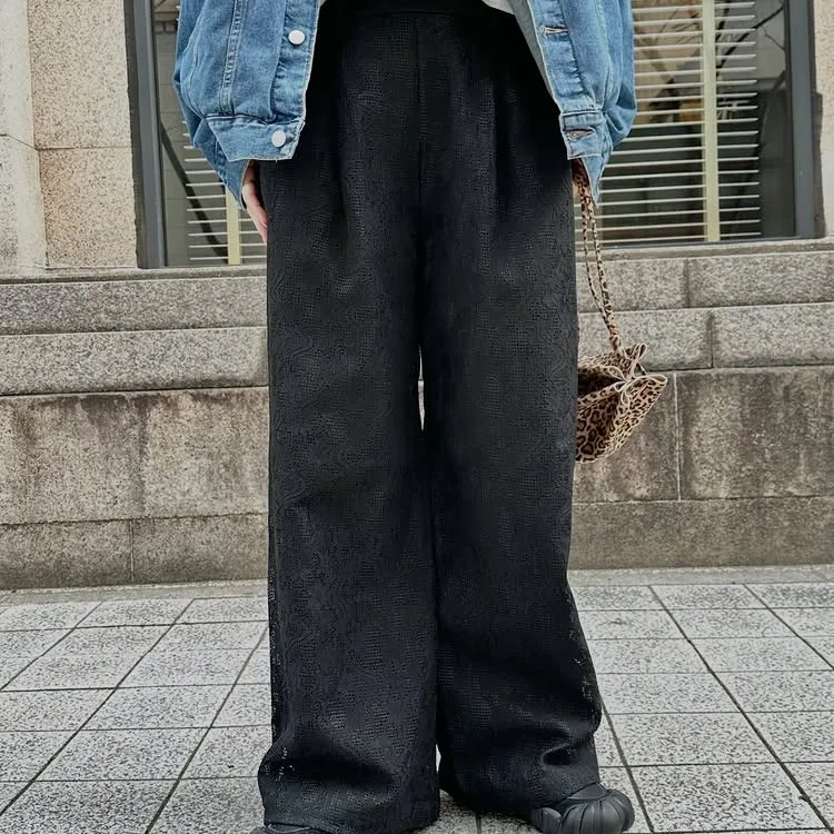 精緻微微立體雕花蕾絲寬褲