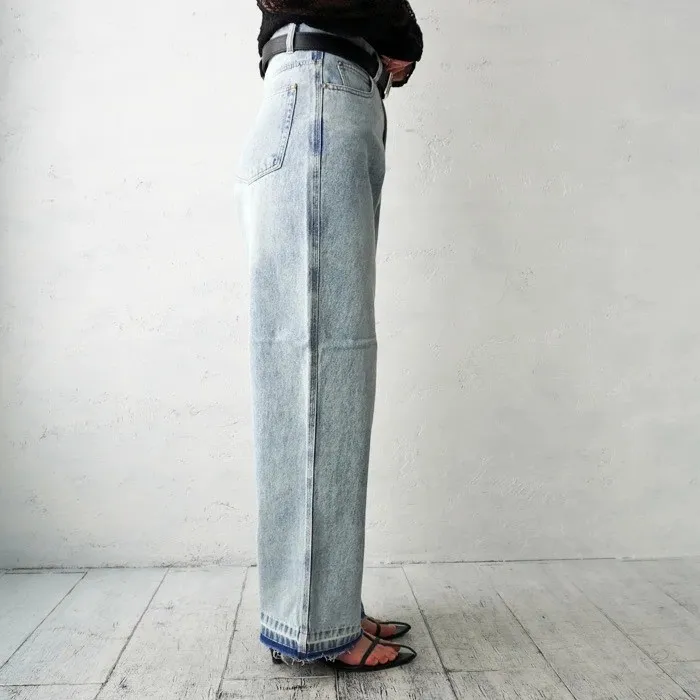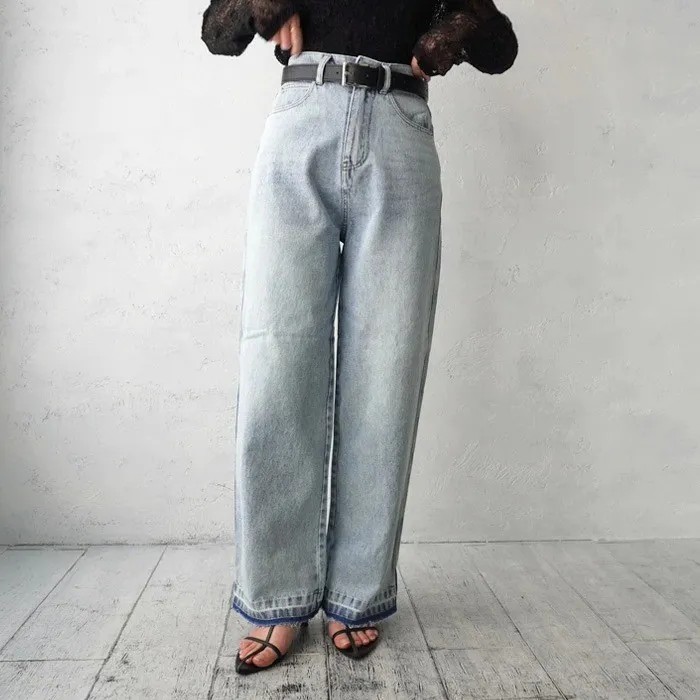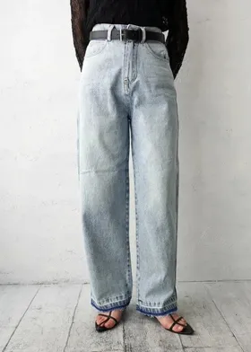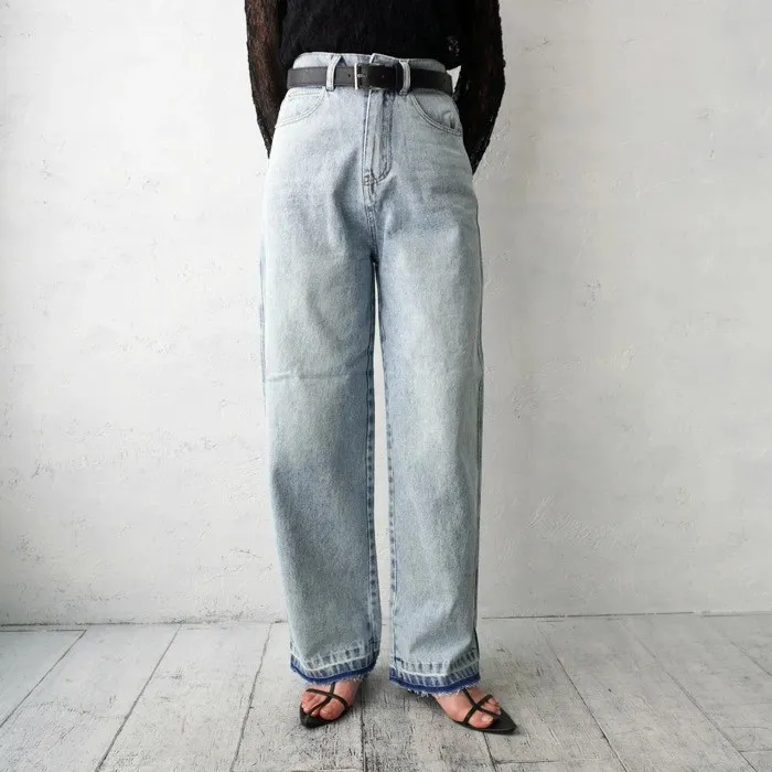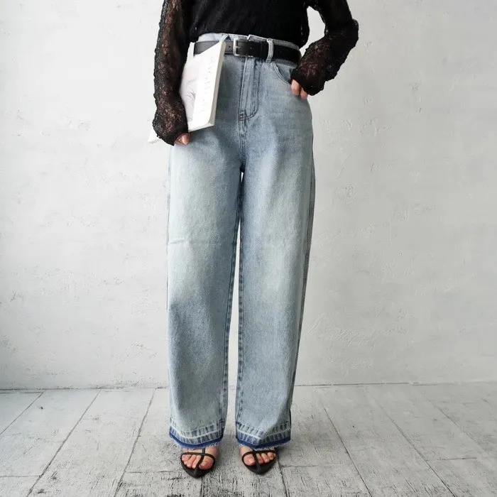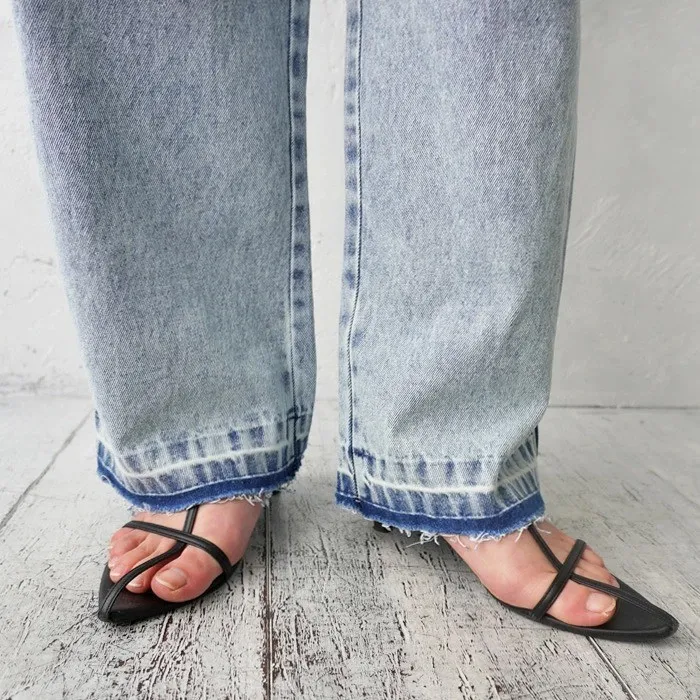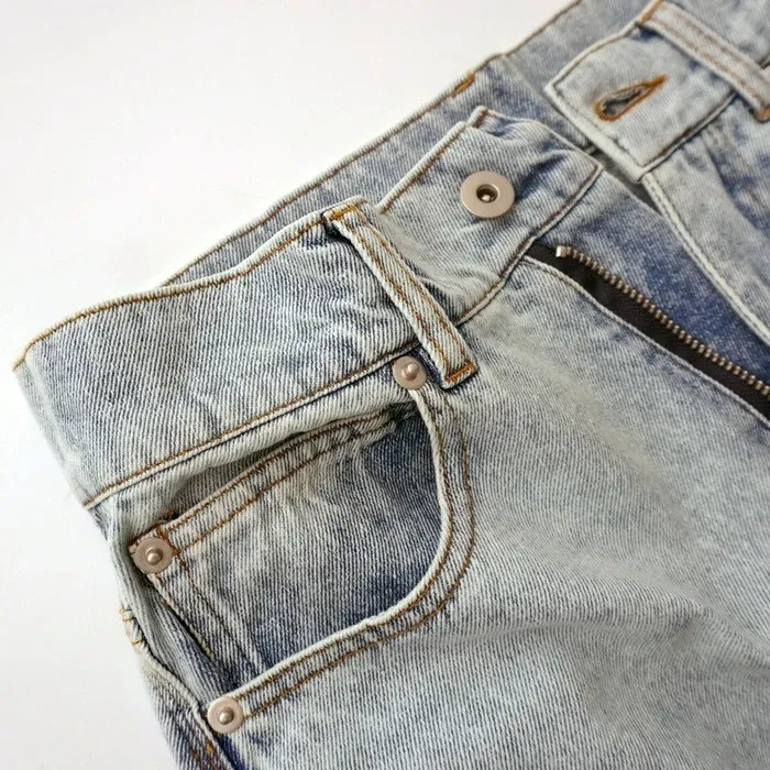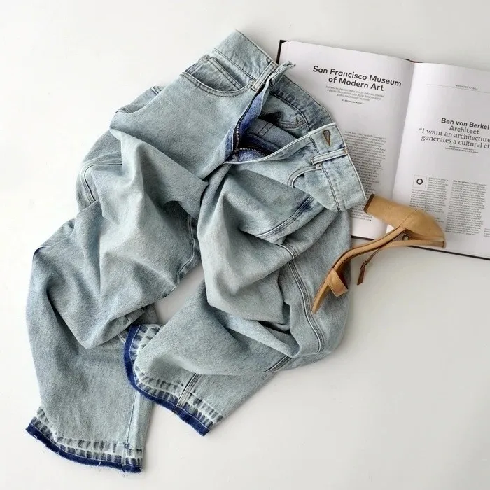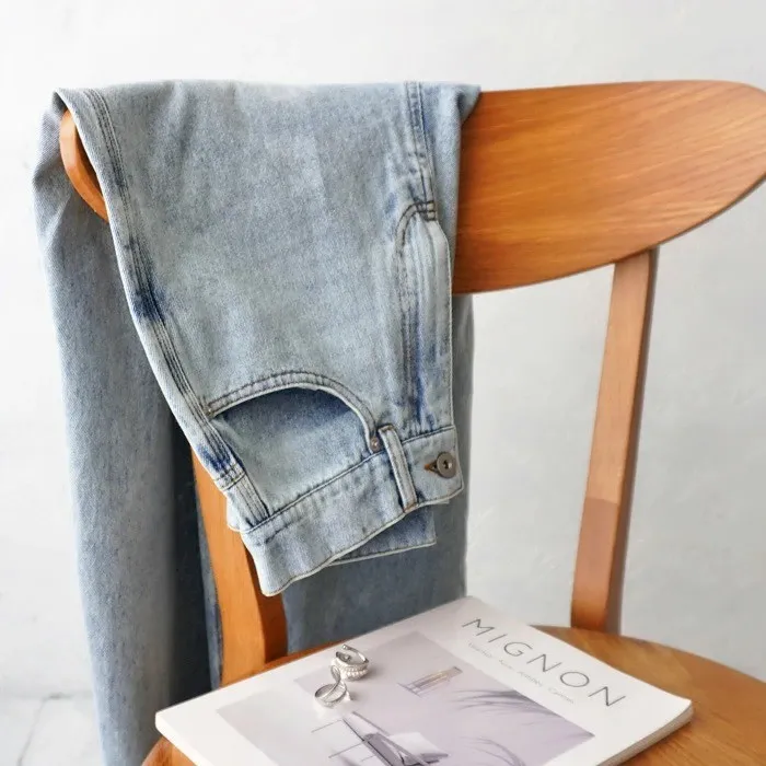 刷色超級美的水洗刷色淺藍單寧牛仔褲