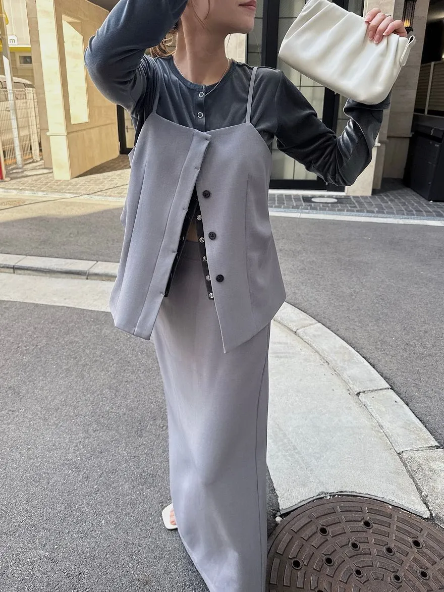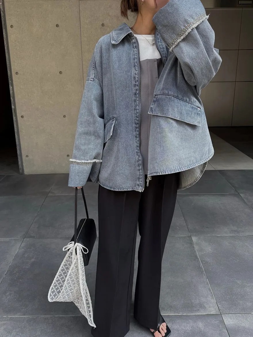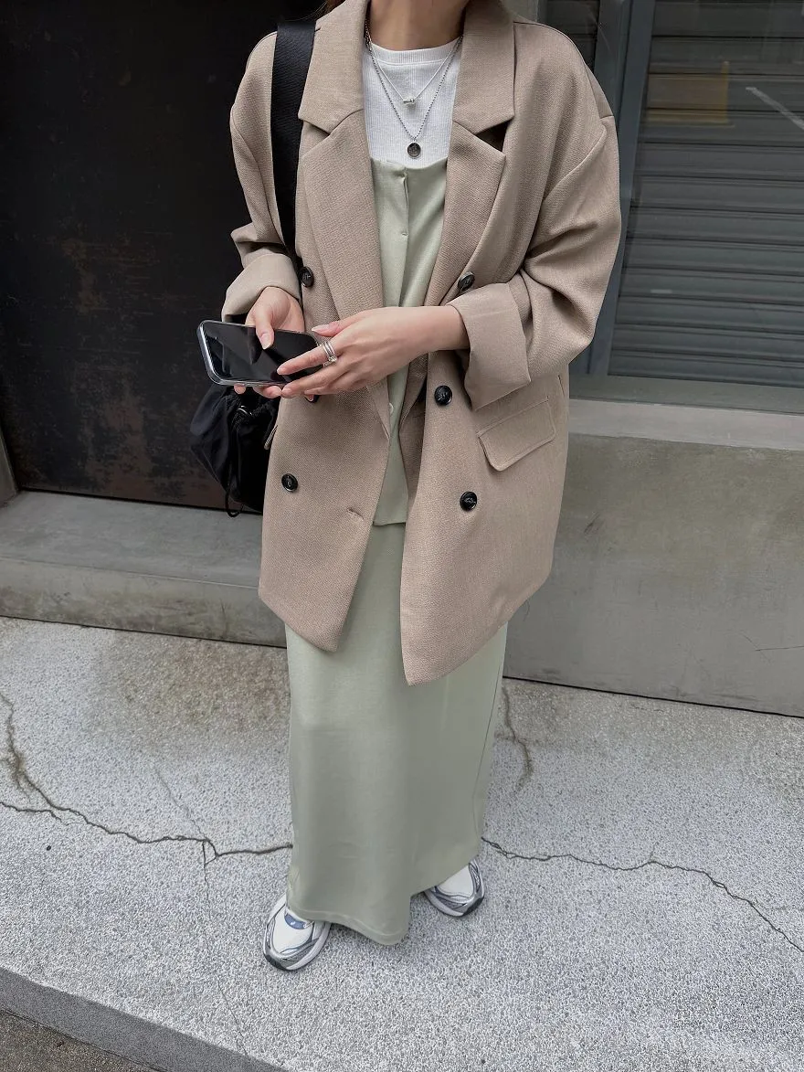 搭配也可以將下襬釦子部分打開~有一種鬆鬆地隨興感