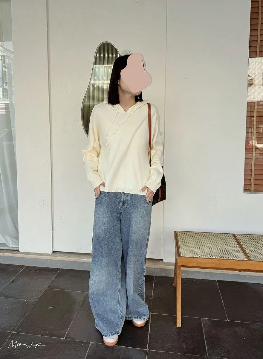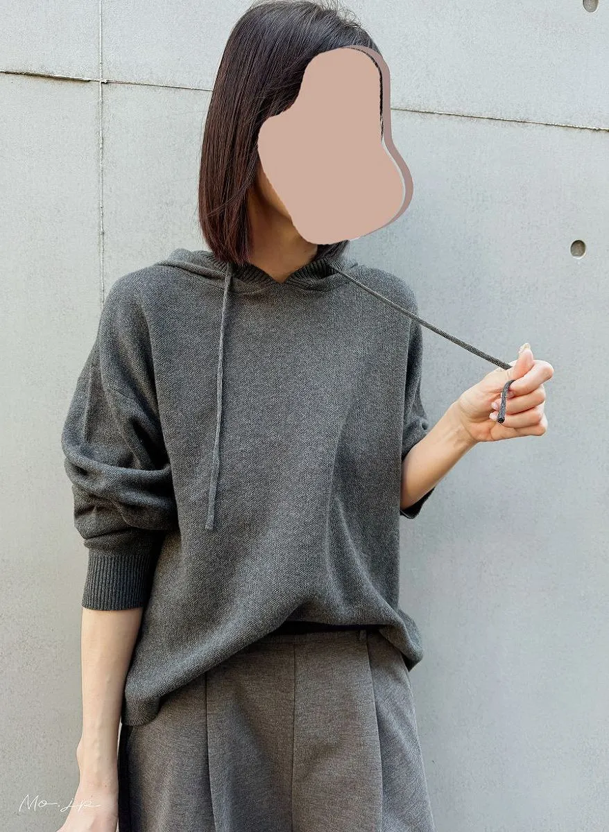 直接單穿也完全沒負擔~很輕很舒服地一款連帽細針織