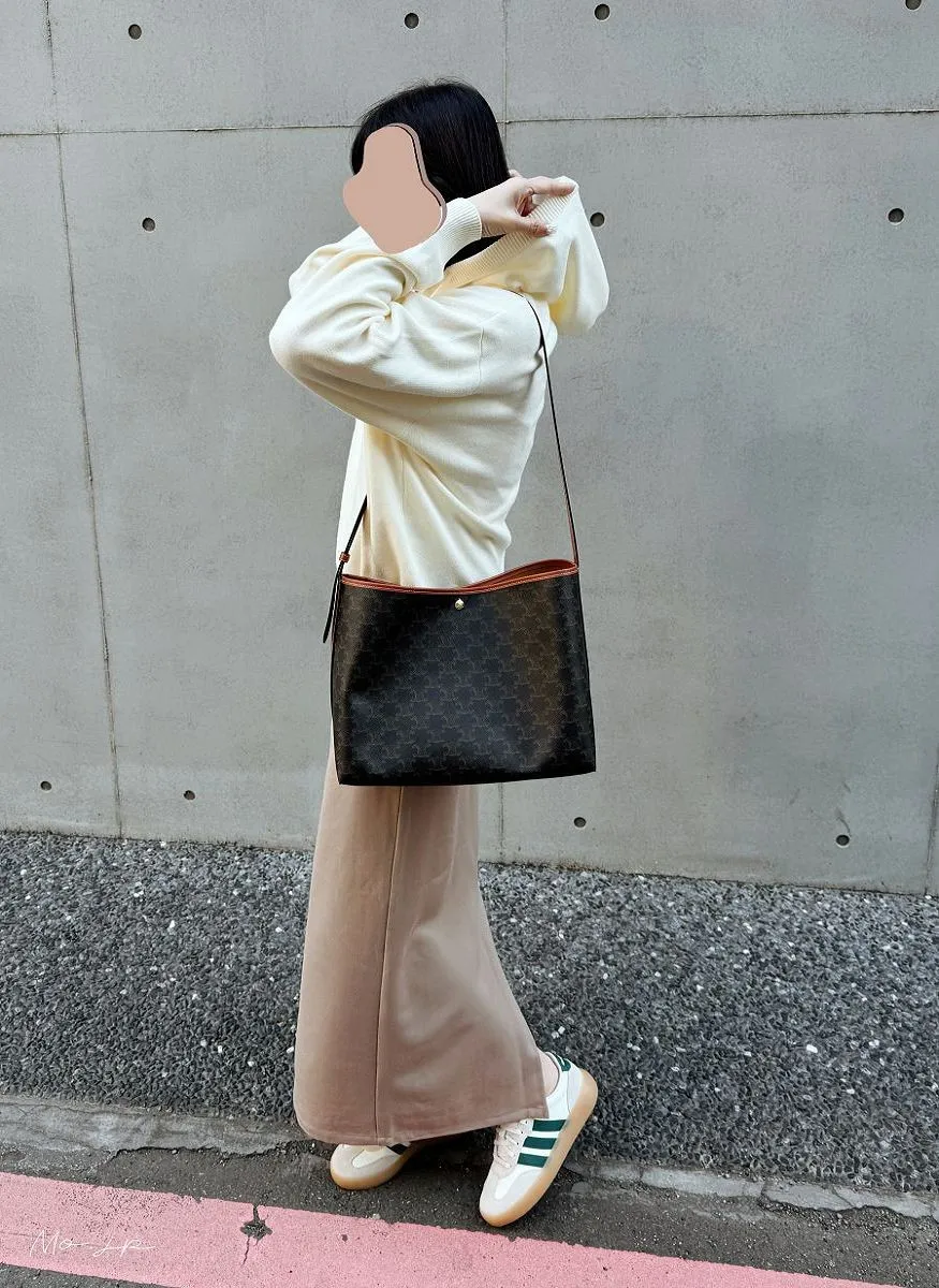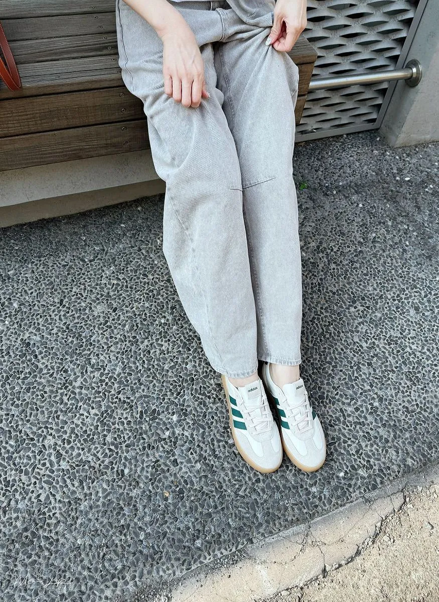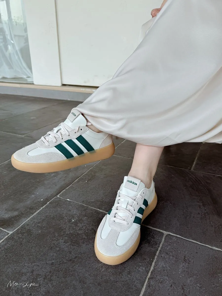 春天的燕麥米駝:搭配是經典QQ焦底、側邊是綠線、除了奶油極皮+淺灰色麂皮