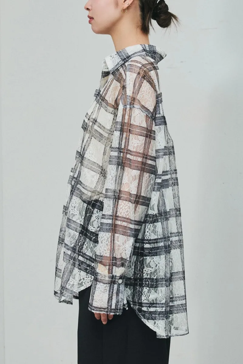 超精緻~可搭成套~整件蕾絲線條格紋襯衫