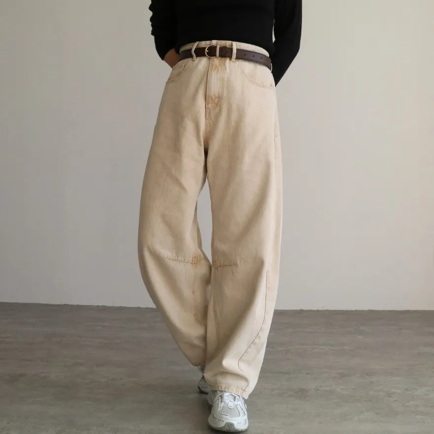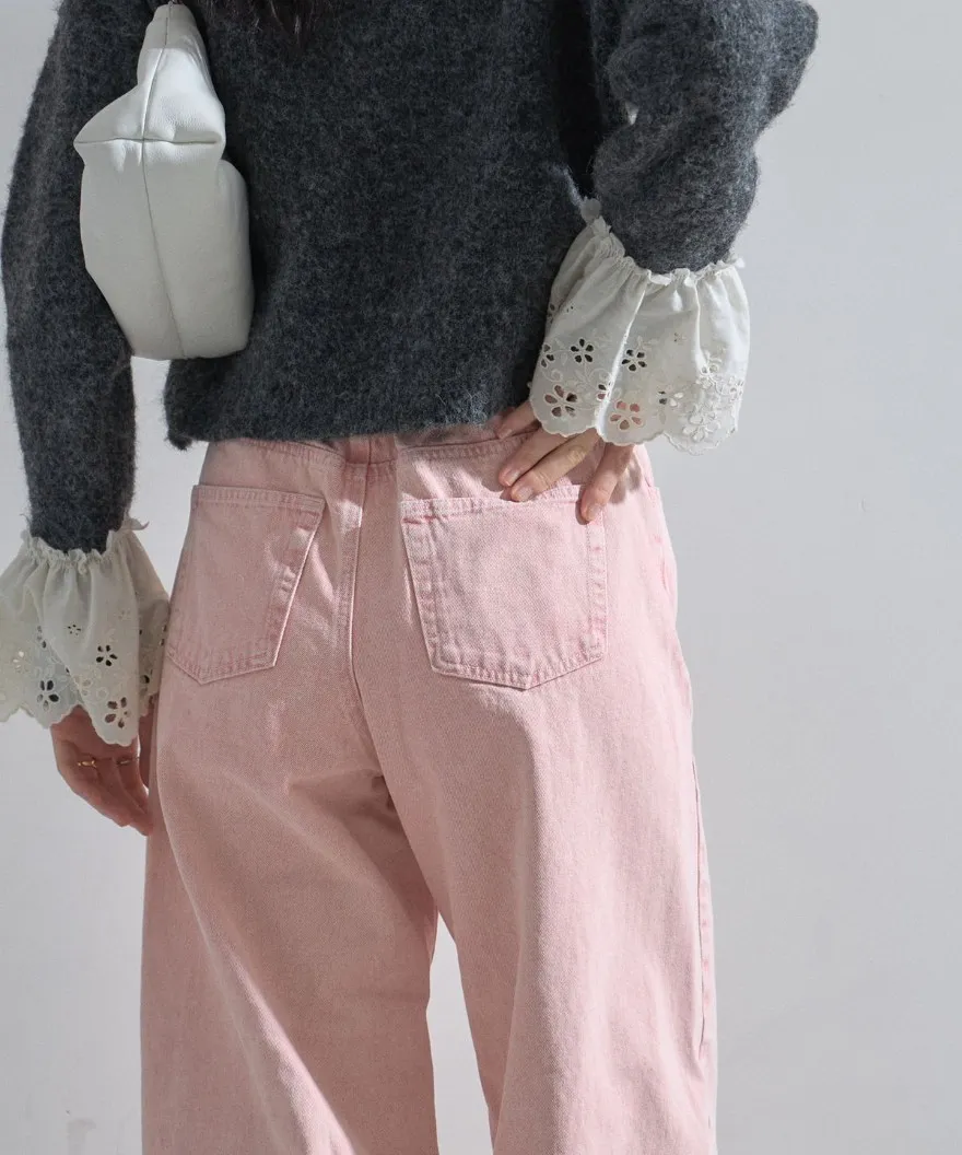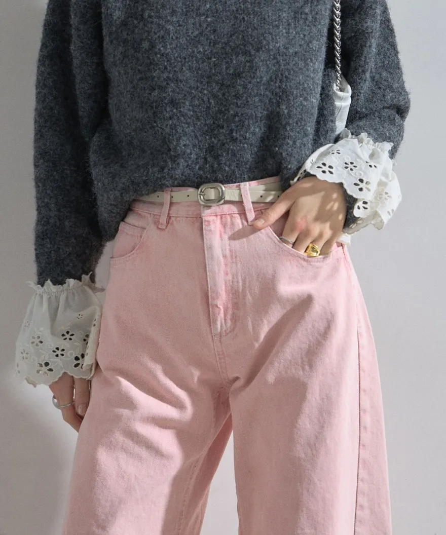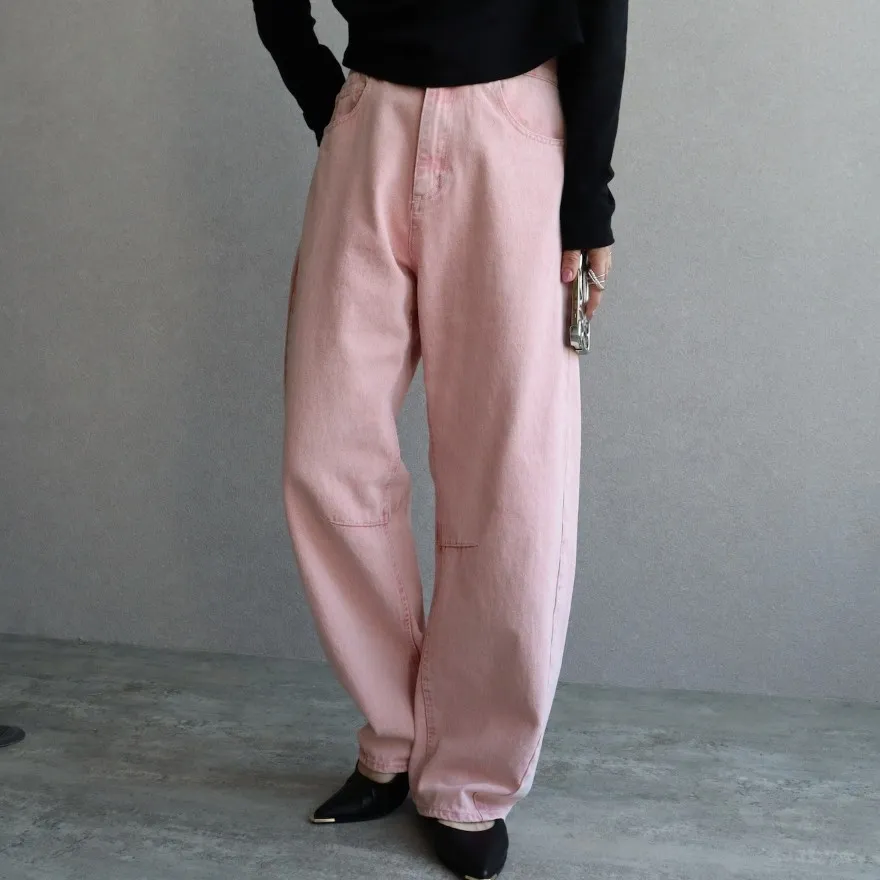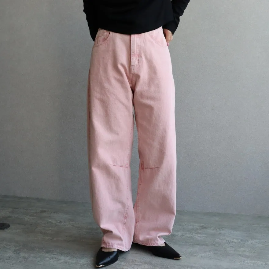 <必買喔>人氣版型~復古刷色染繽紛色彩10OZ彎月繭形挺版牛仔褲