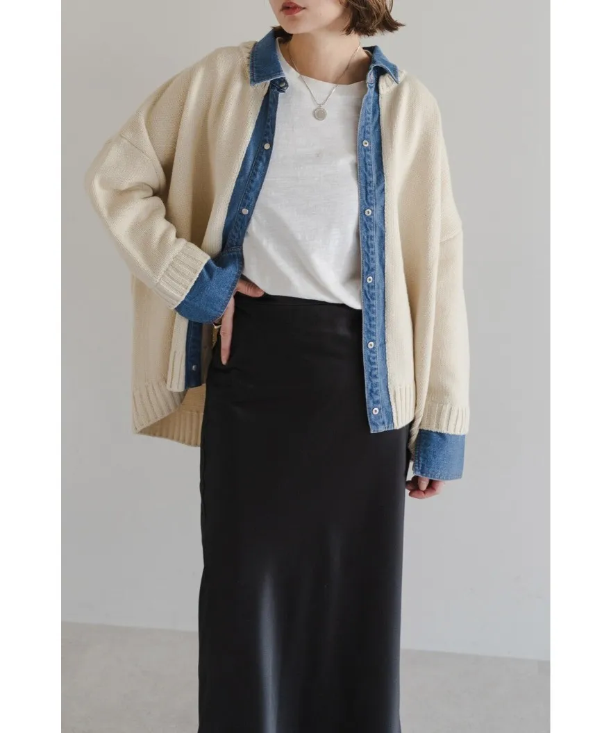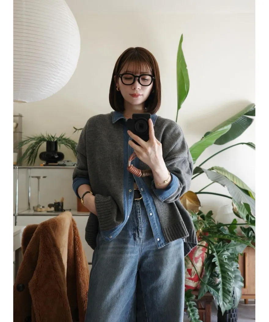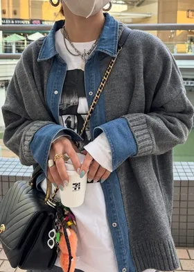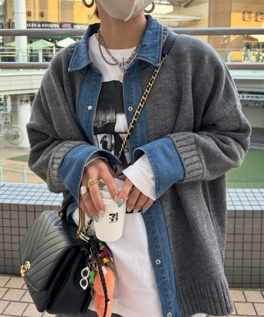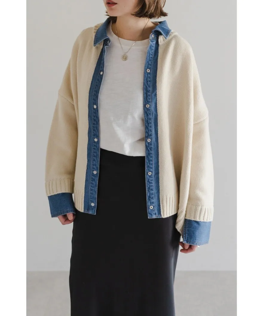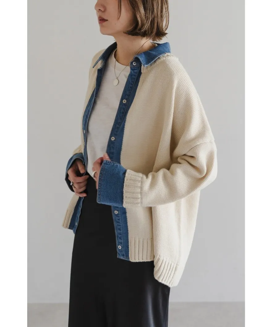 數量限定~人氣異素材單寧拼接假兩件式造型毛衣外套