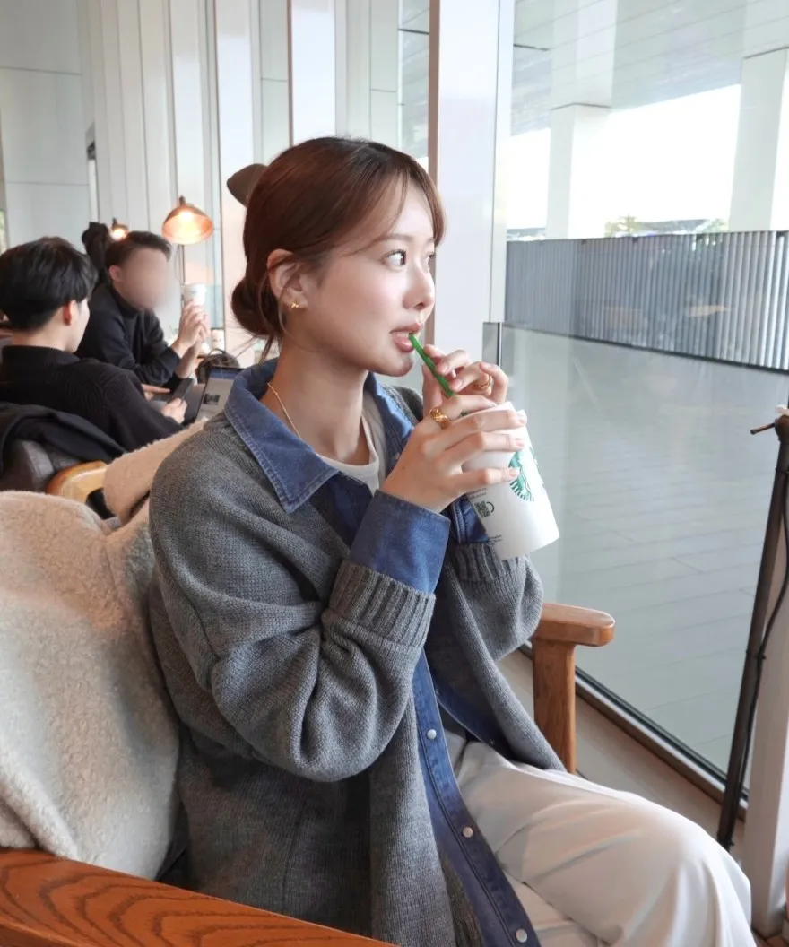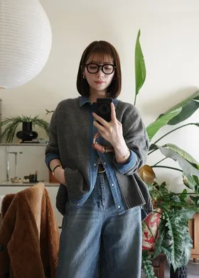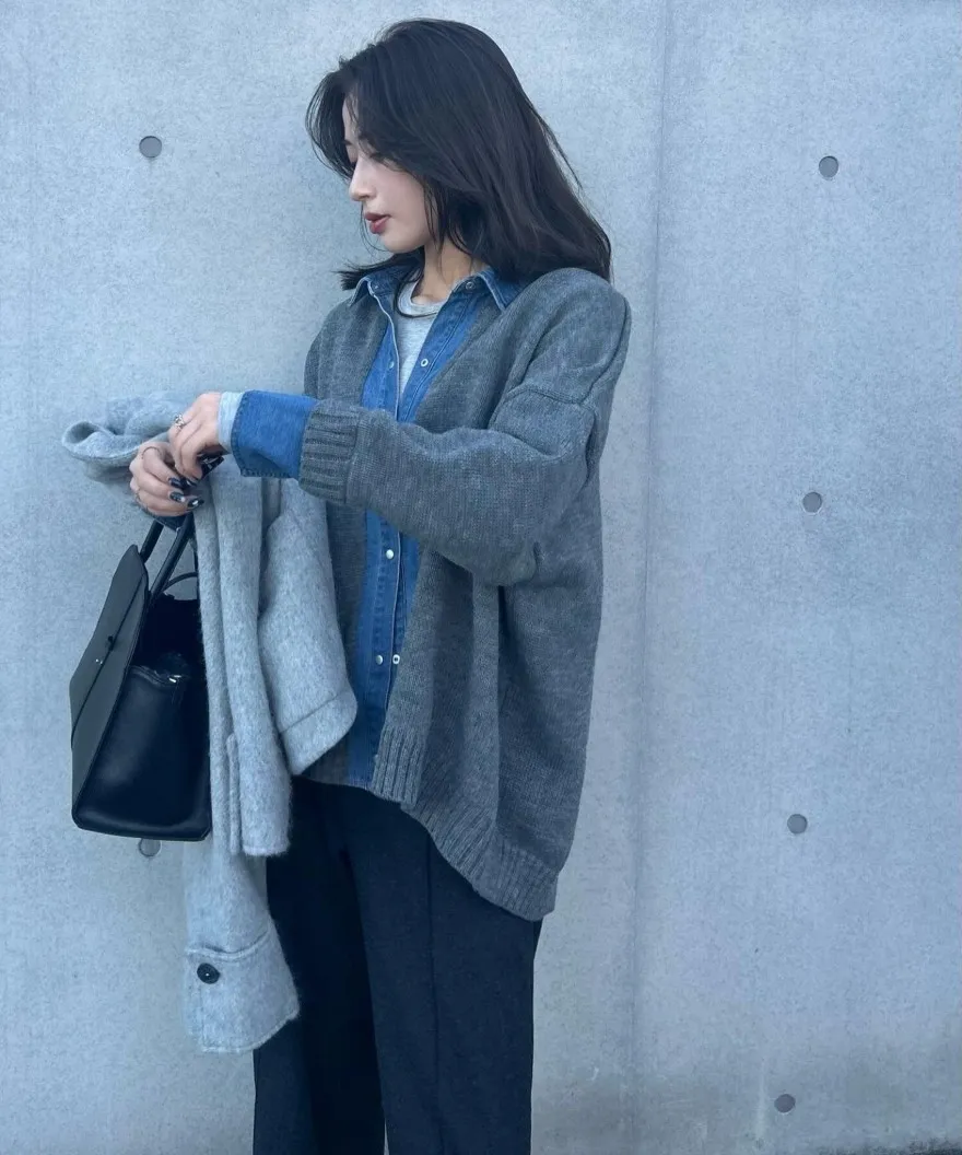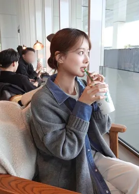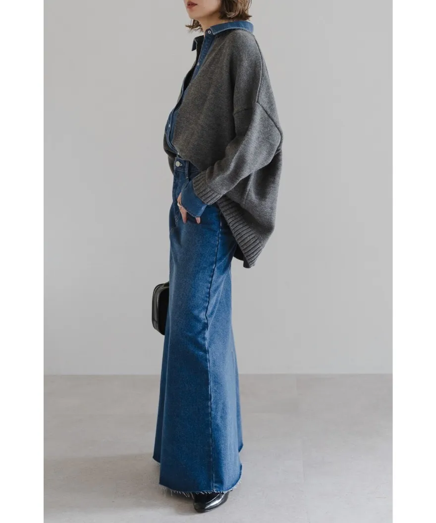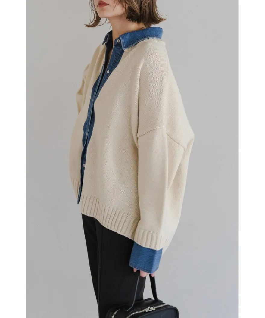數量限定~人氣異素材單寧拼接假兩件式造型毛衣外套