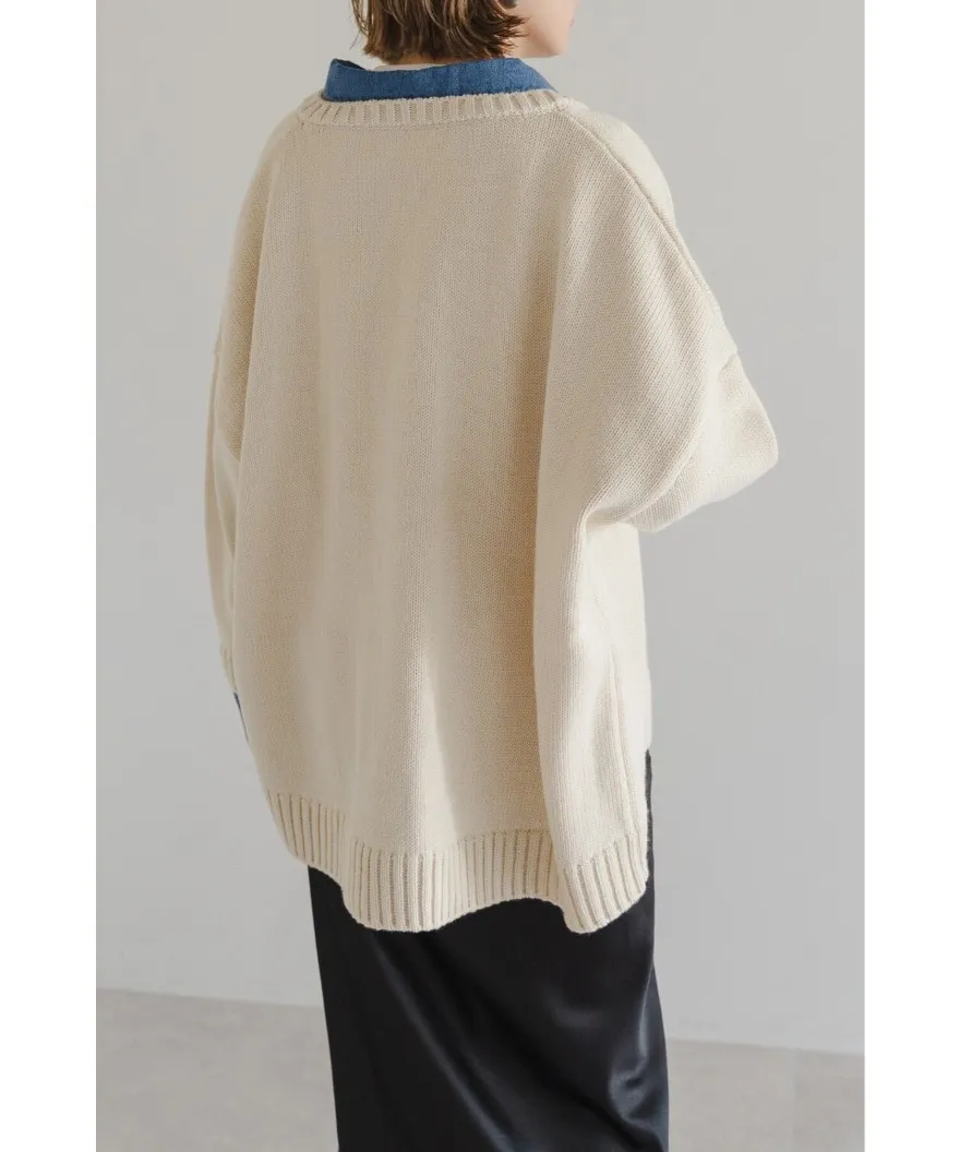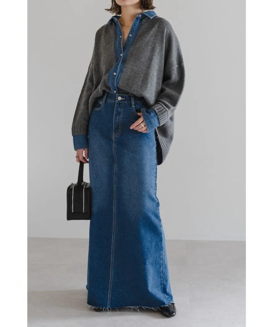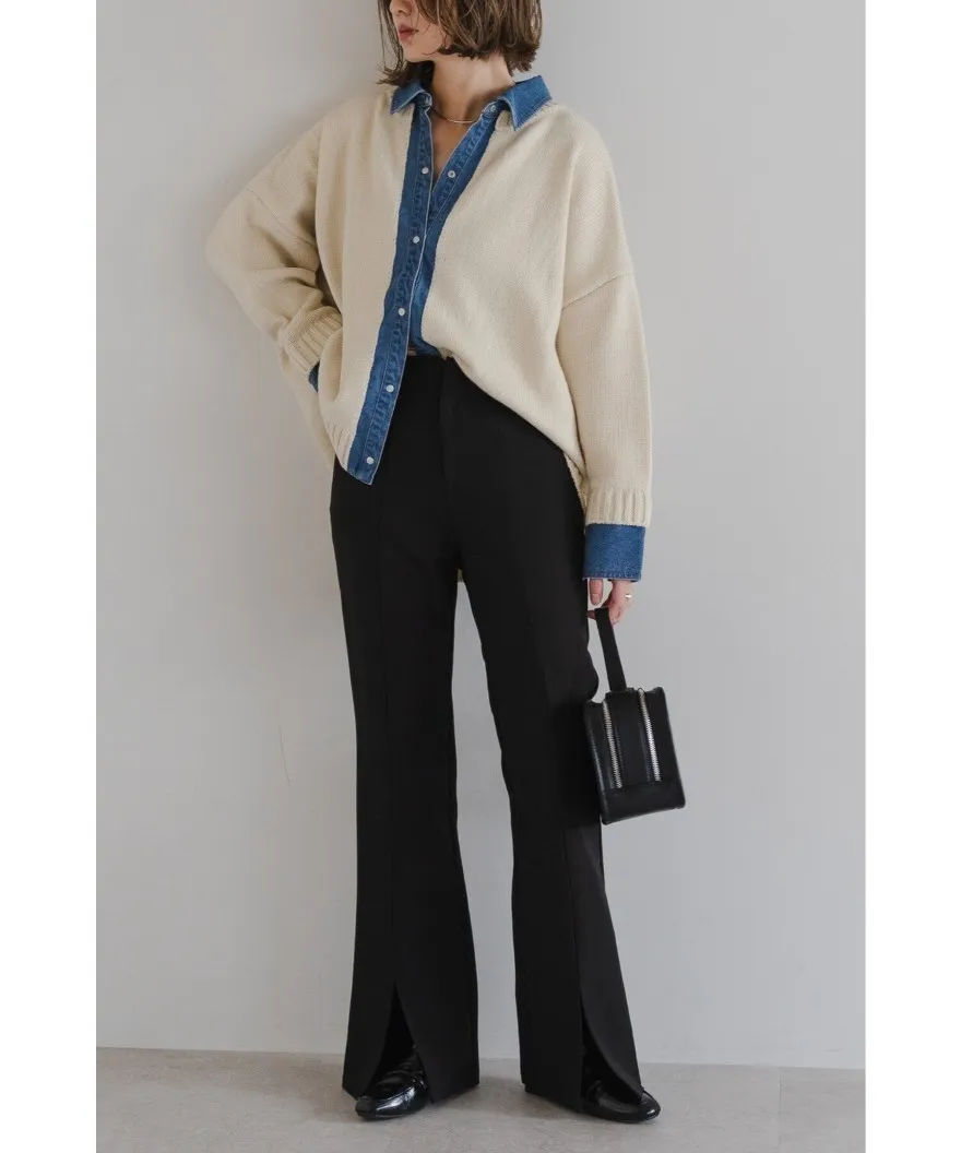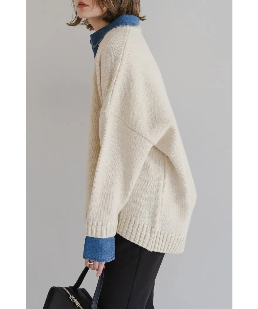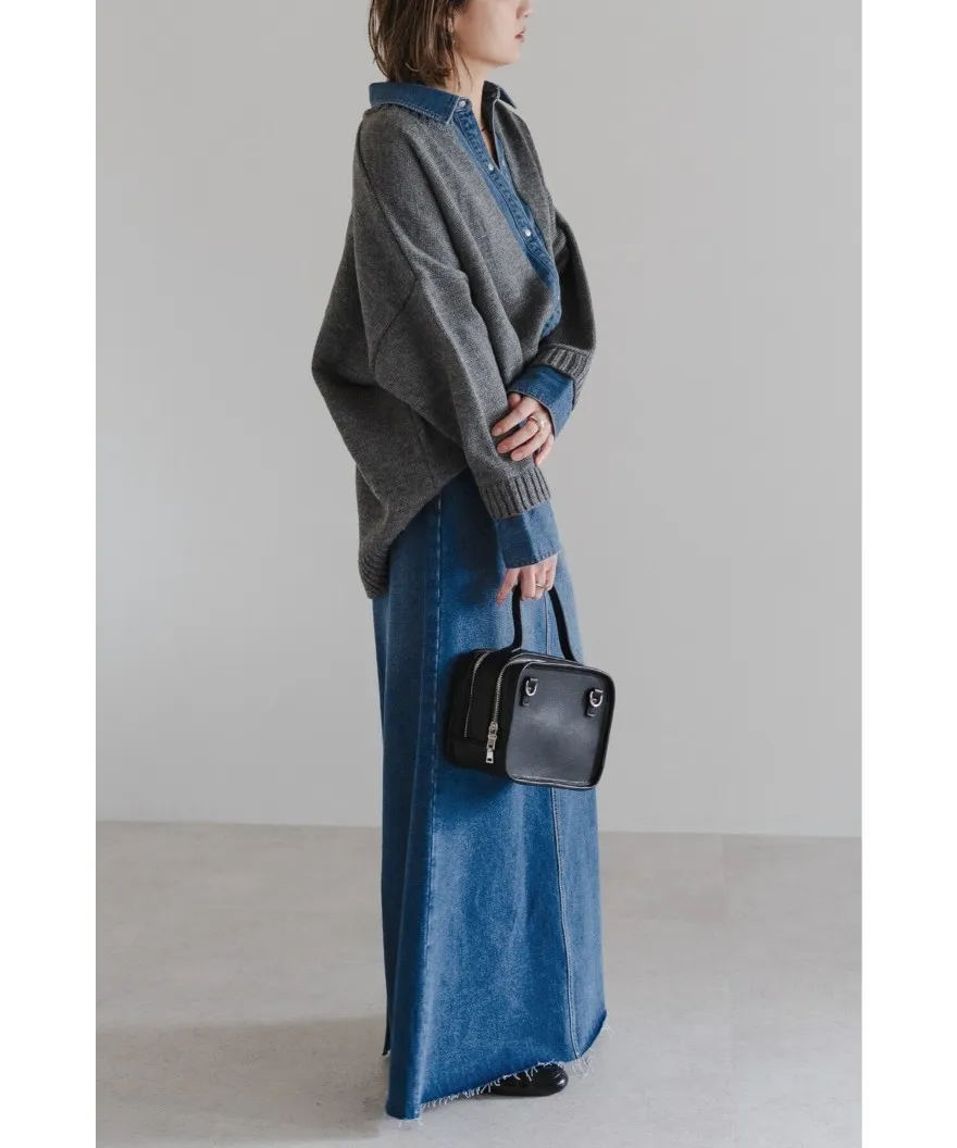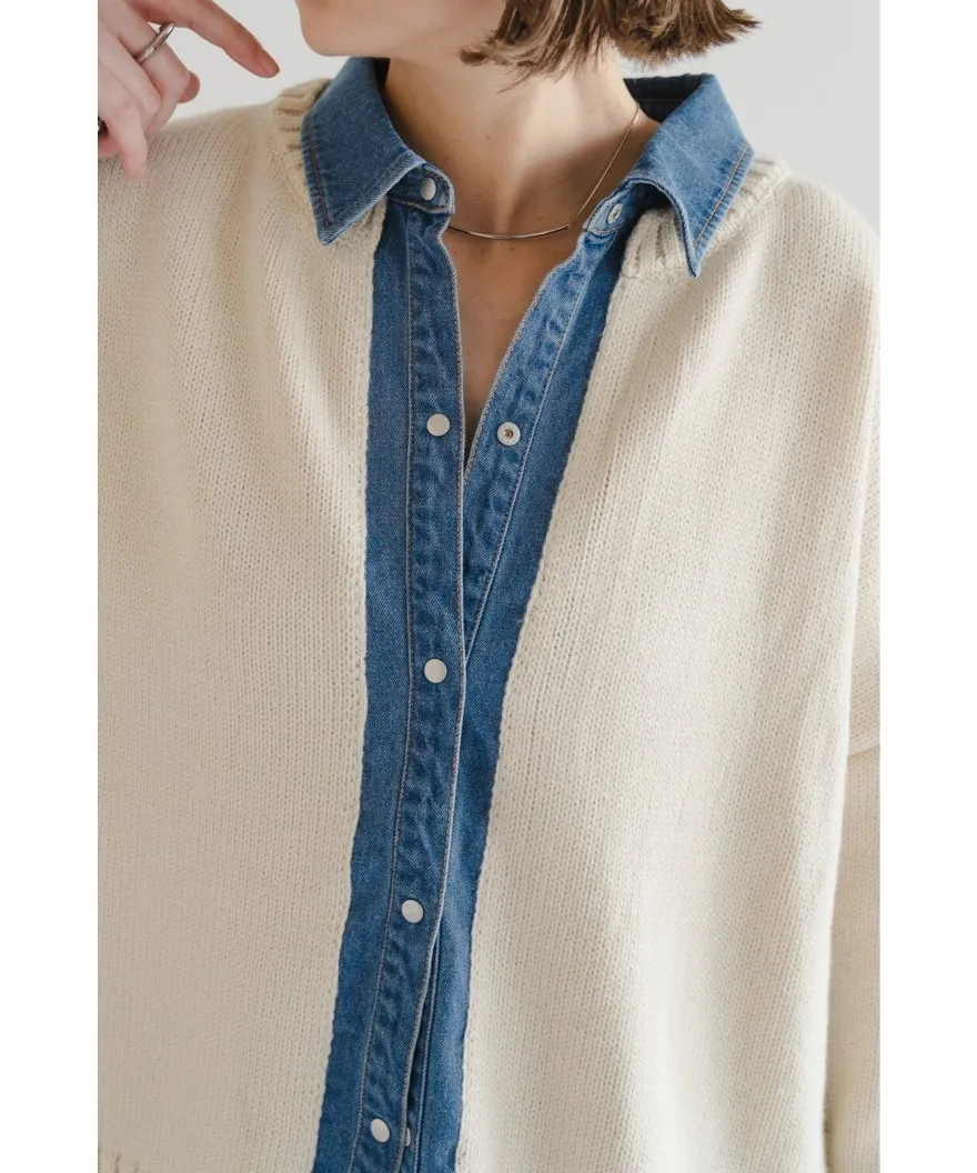假兩件式牛仔拼接密實針織毛衣