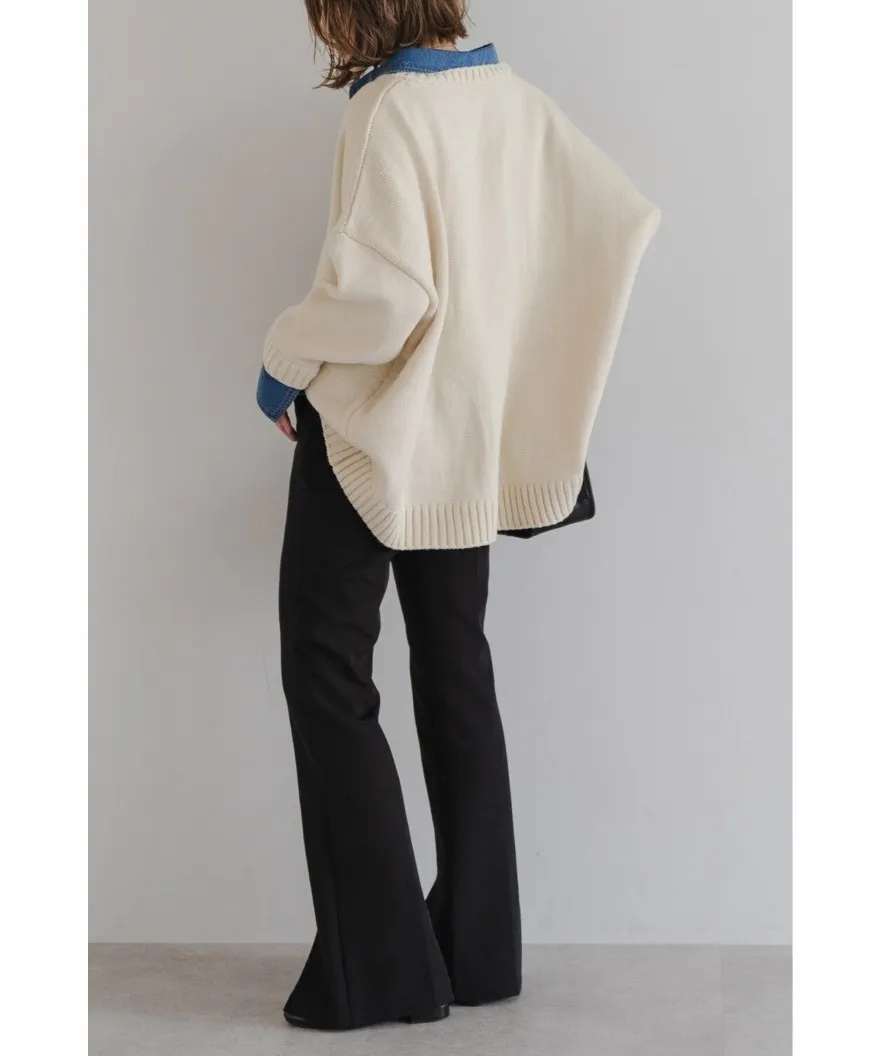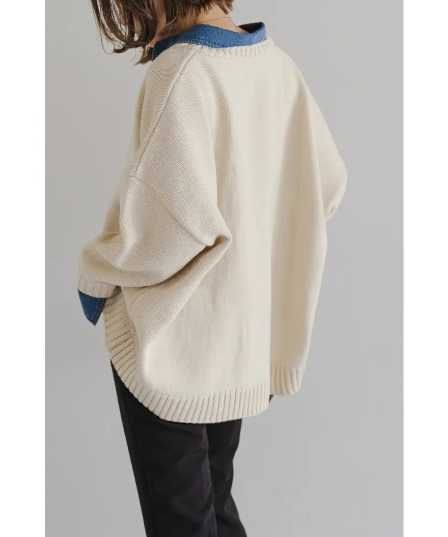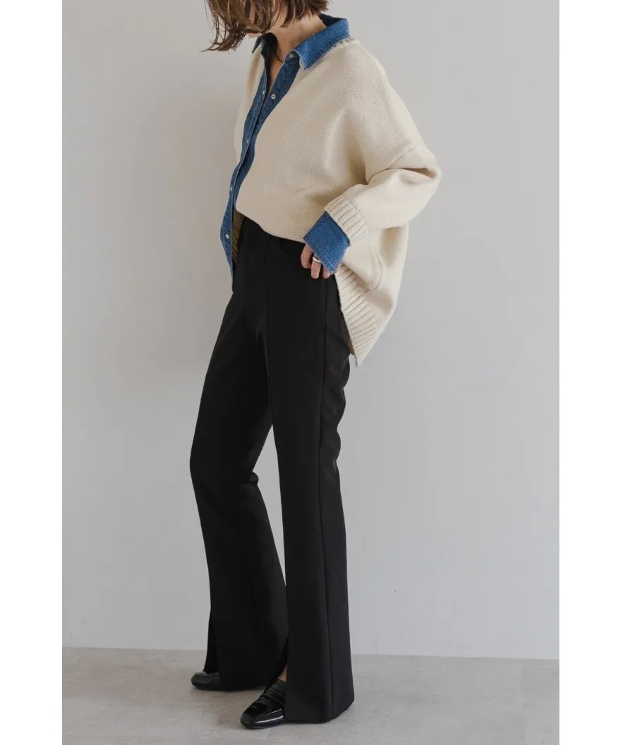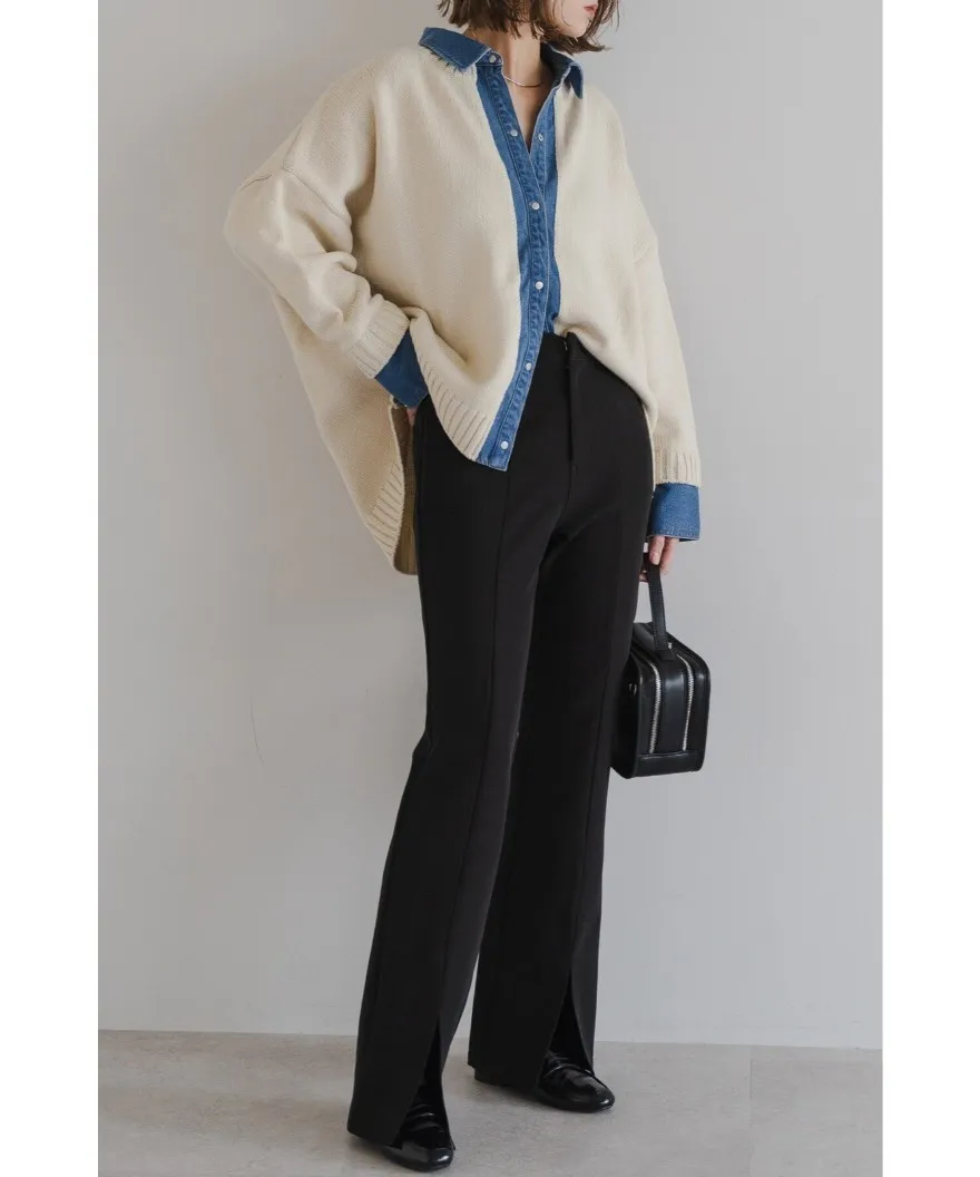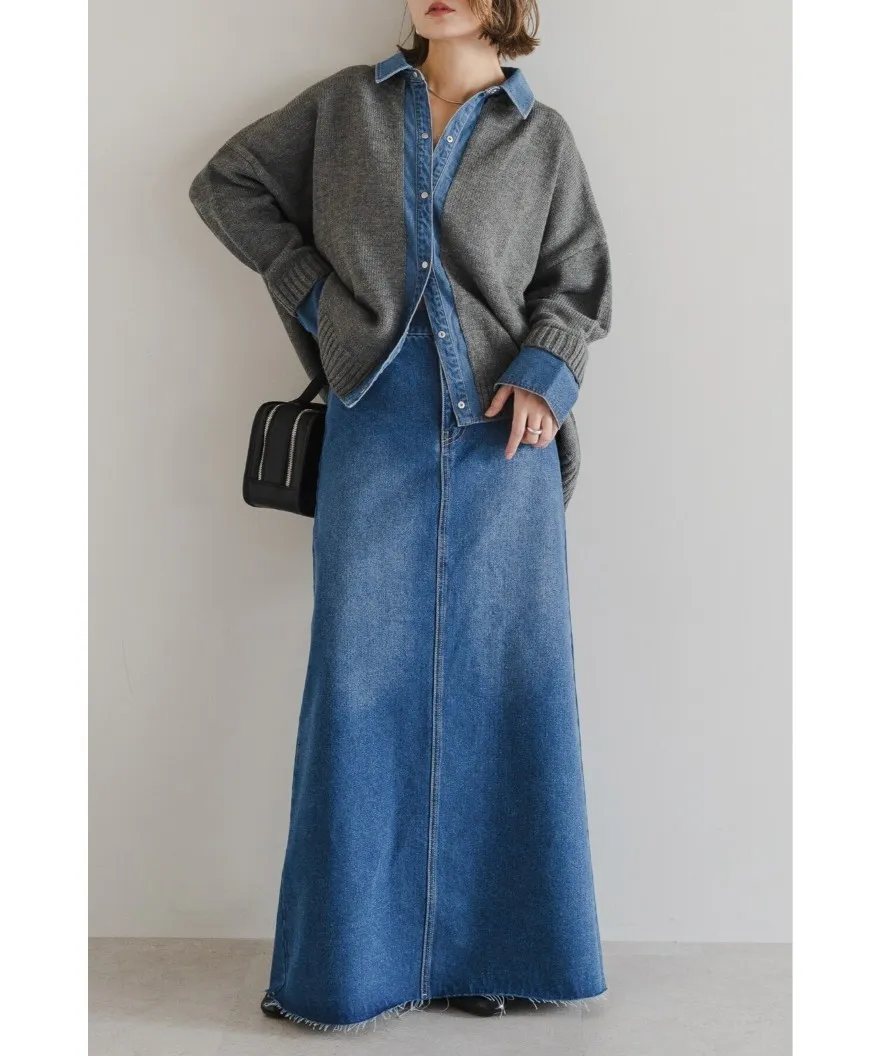 假兩件式牛仔拼接密實針織毛衣