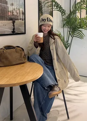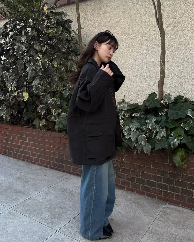 打褶微寬袖增加空間與份量感~內搭仍保有空間