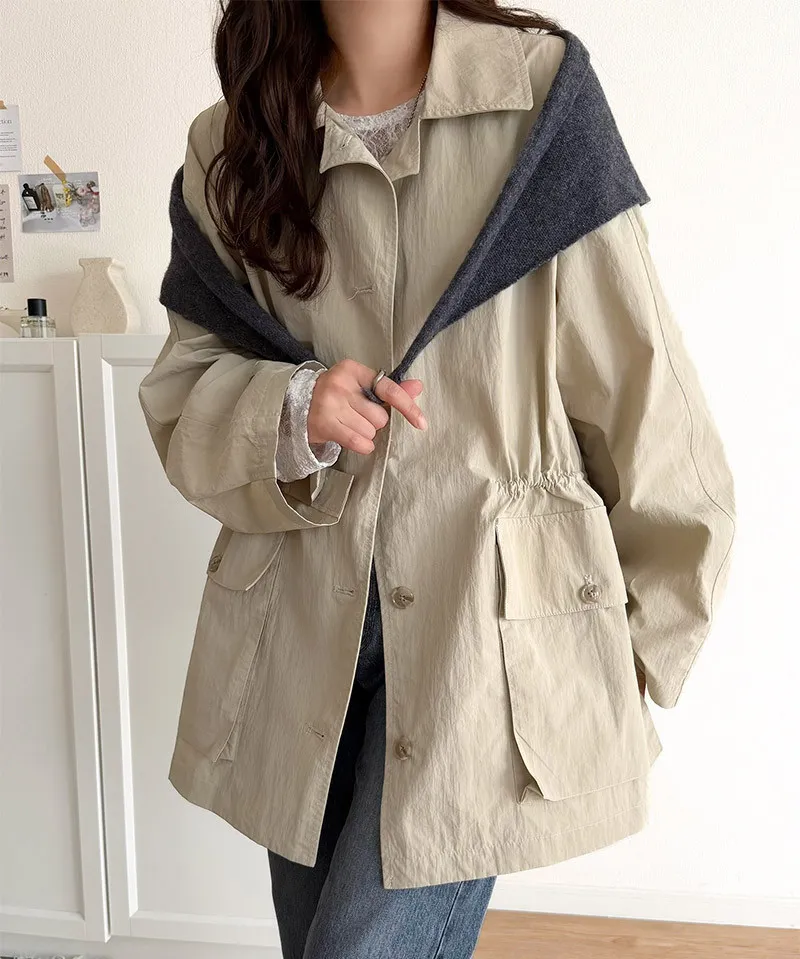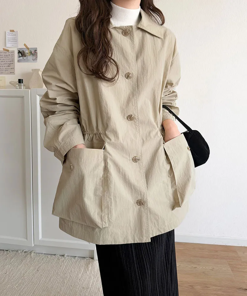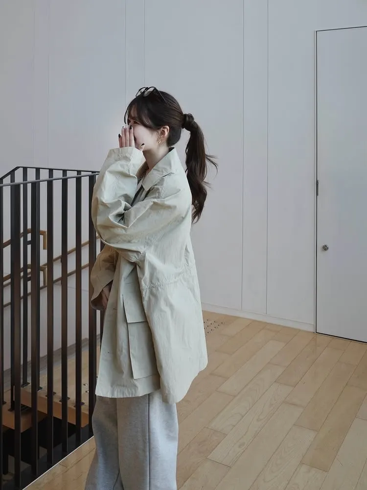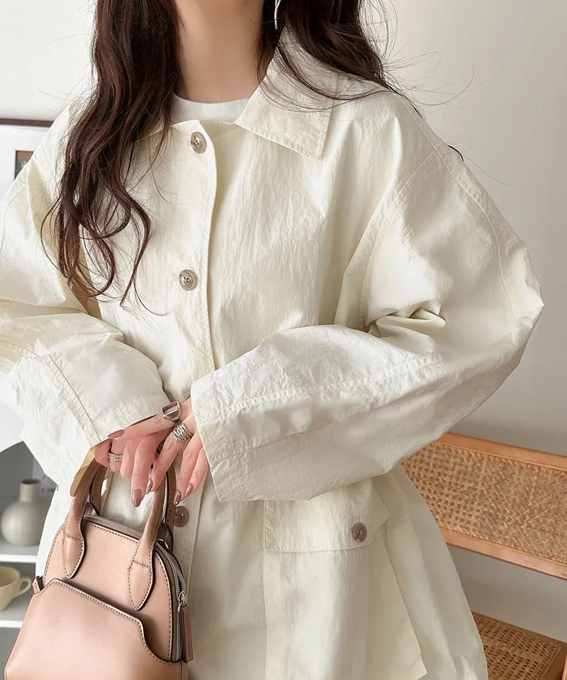 風衣面料結合襯衫版型.保有外套感跟襯衫靈活度