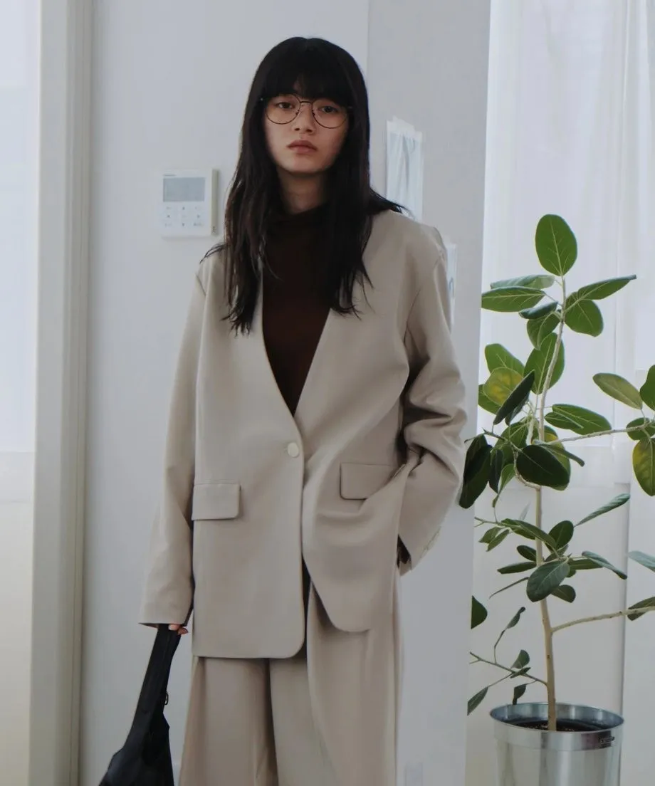 極美單品面料真的很棒日幣破萬元~高單品牌商品專櫃全數調貨-數量限定<商品已抵台>無領設計是春天很流行的一個款式專櫃高級質感的平整挺實面料.厚度適中.整體俐落時髦單顆釦設計.無領.搭配上更多元2色數量限定