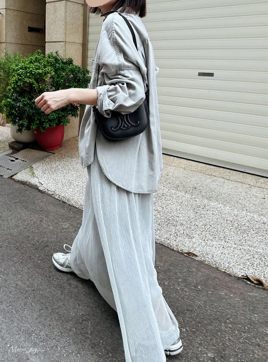 走動時微微擺動,細褶自然垂墜,修飾下半身線條
