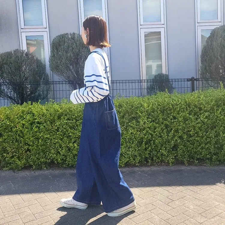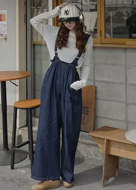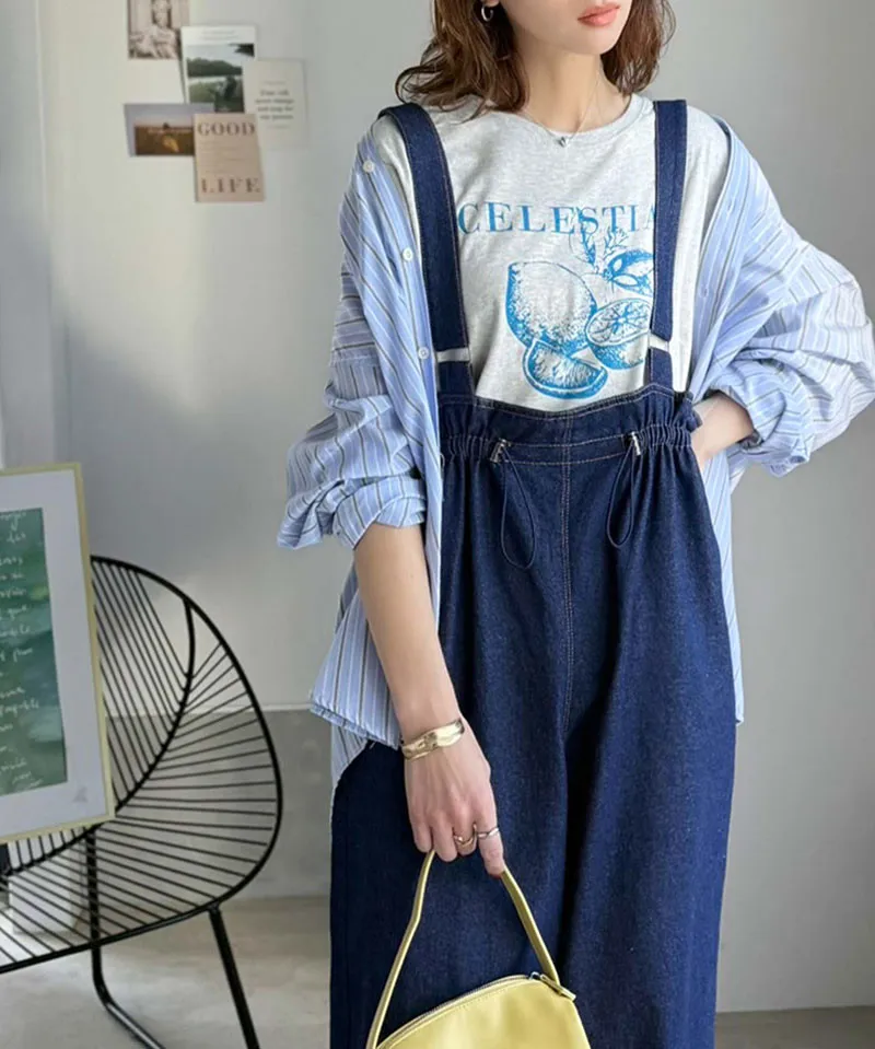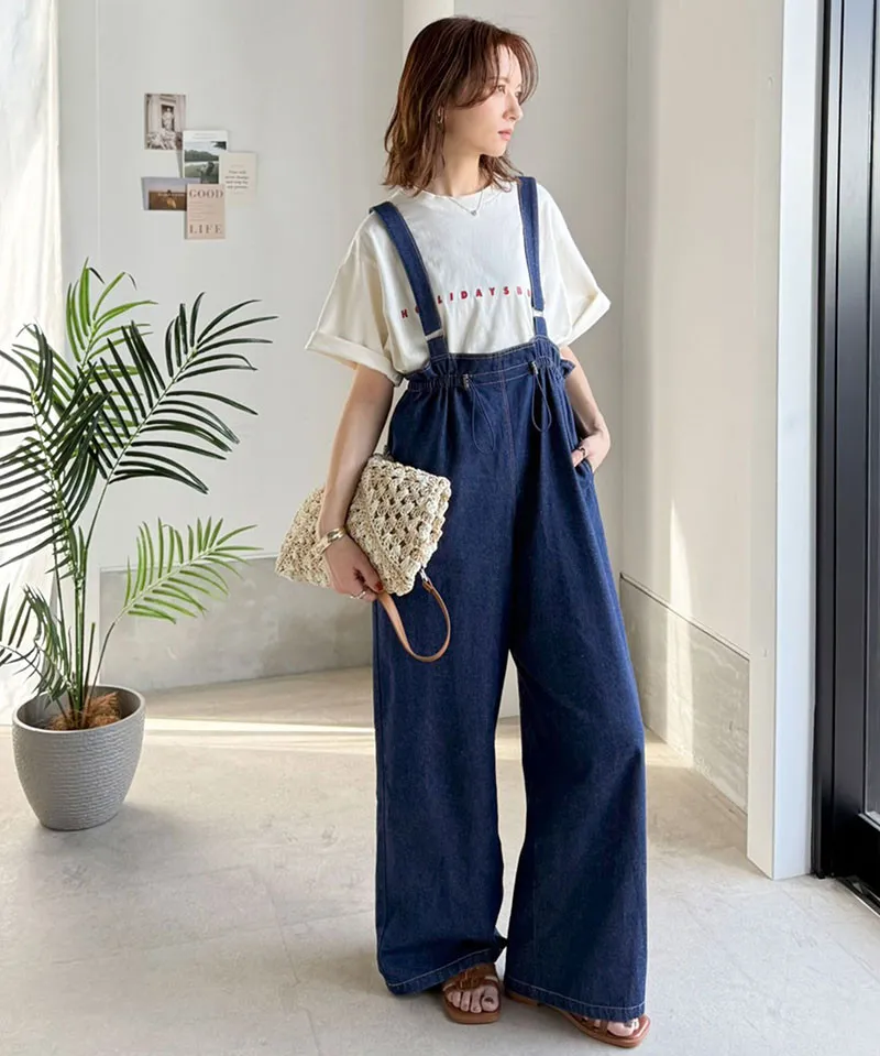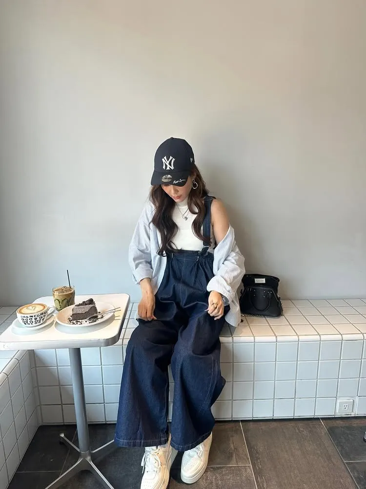 它是一款人人都可以駕馭的丹寧.素面連身褲