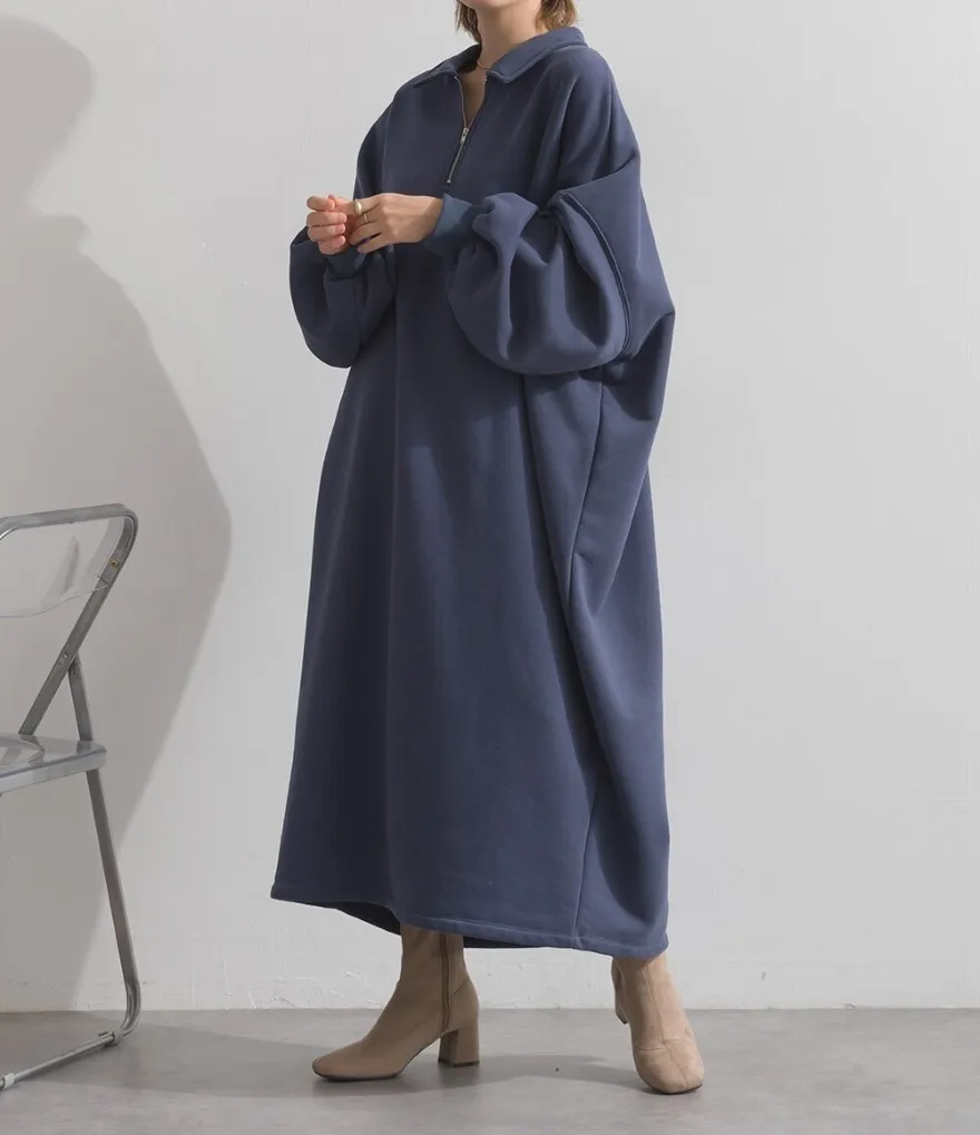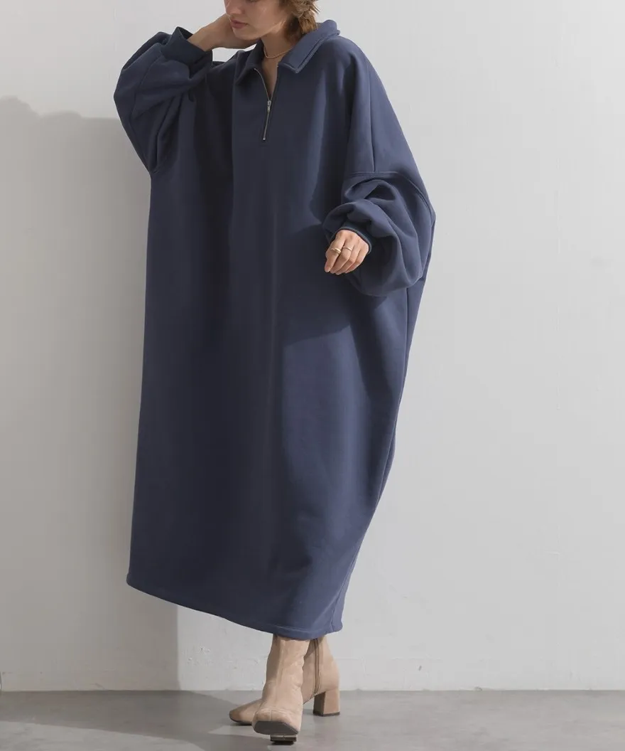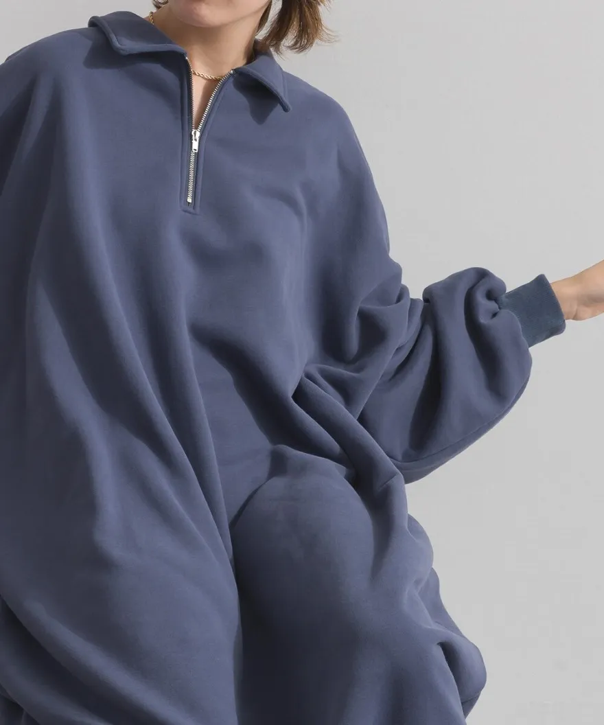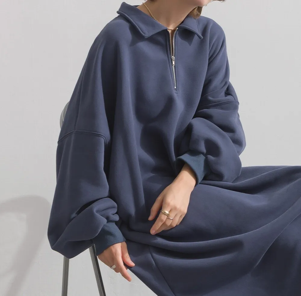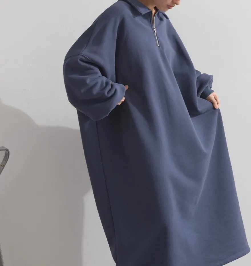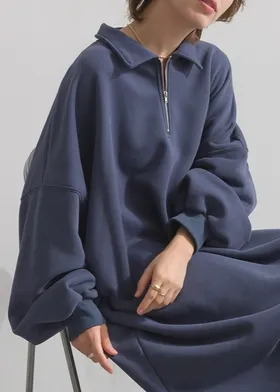 這款簡約精緻的半拉鍊洋裝,採用休閒衛衣布料,展現優雅氣質。半拉鍊設計方便調整領口的開合程度,輕鬆搭配內衣和配件,拓展您的穿搭選擇。袖子採用大面積的褶皺設計,打造出豐盈飄逸的女性化身形。這款寬鬆、筆直、修長的洋裝適合各種身材,同時又不失時尚現代感。它的百搭性使其成為居家休閒或外出辦事的理想之選。
