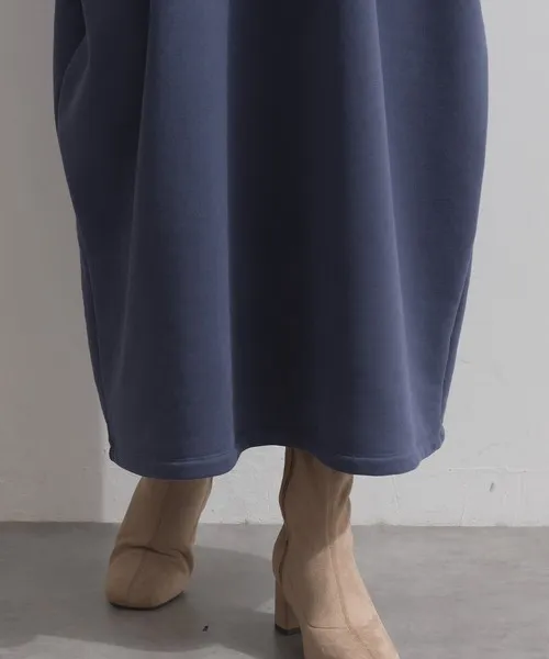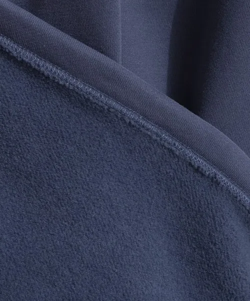 厚實的拉絨抓絨布料,質感十足,表面經噴砂處理,呈現出獨特的紋理和觸感。外層布料採用高密度編織的衛衣結構,兼具恰到好處的挺括度和蓬鬆度,既能保持版型,又能帶來舒適貼身的穿著體驗。抓絨內襯經過精心拉絨處理,保暖舒適,有效抵禦冬日的寒冷。儘管袖子和裙子都比較寬鬆,但這款洋裝卻出乎意料地輕盈,穿著輕鬆自在。羅紋袖口和領口設計,既增添了休閒感,也確保了穿著的舒適度。