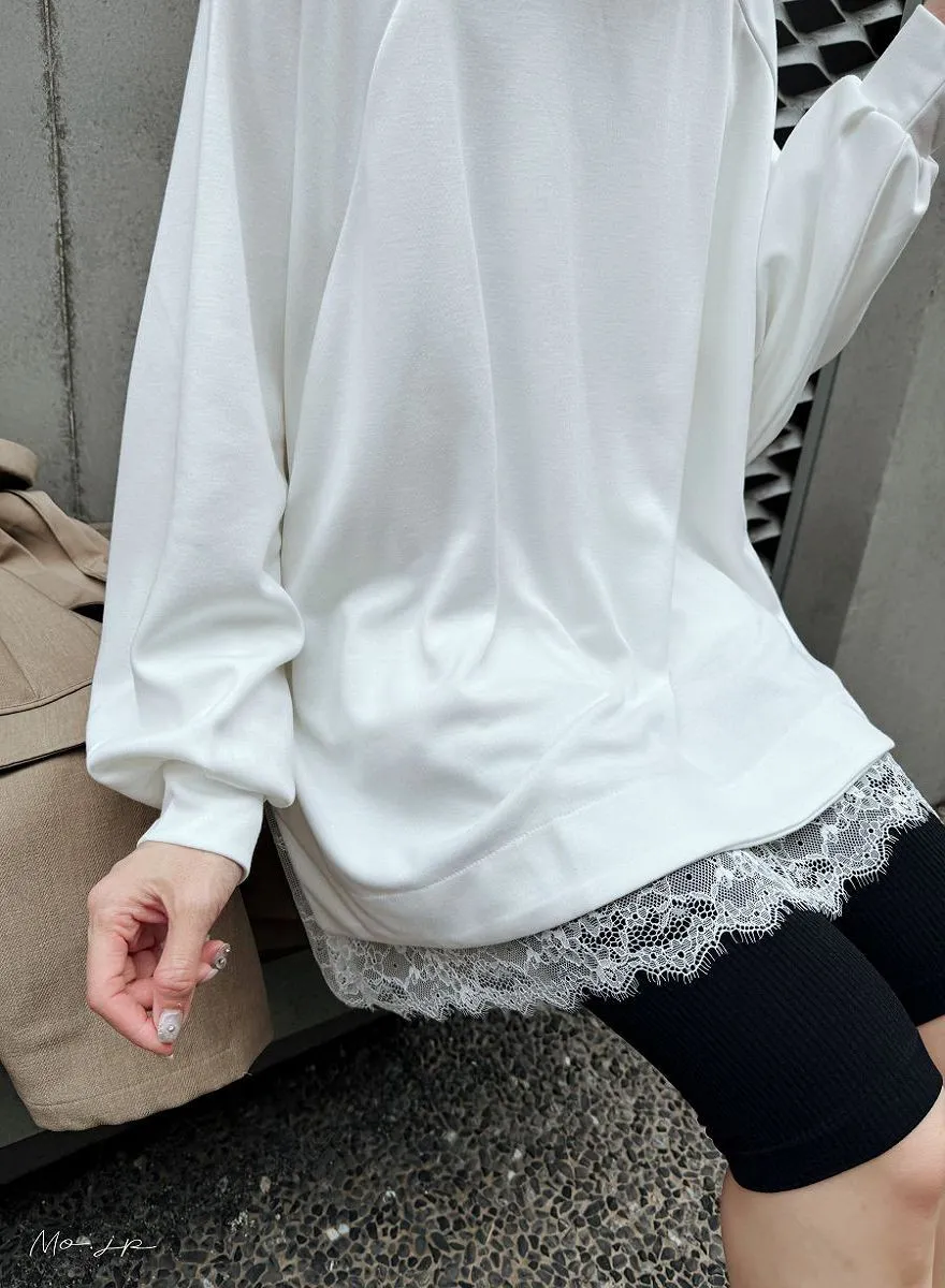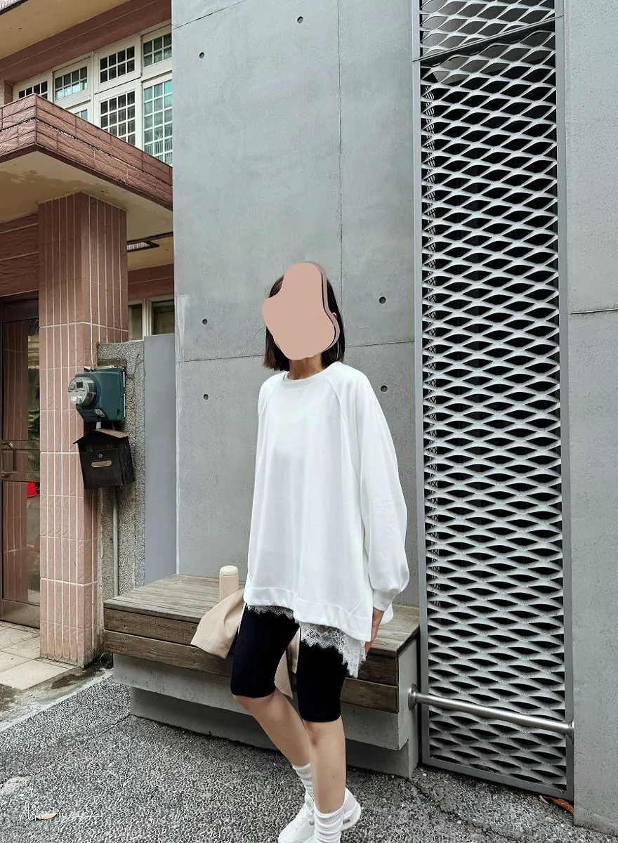 長袖款~春夏必備~下擺拼貼蕾絲搭配造型背心
