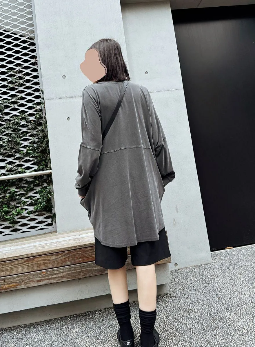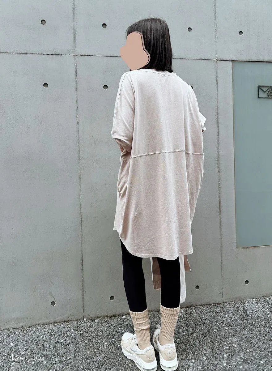 水洗刷色加工長版棉T