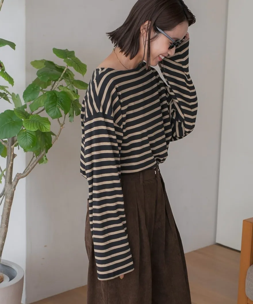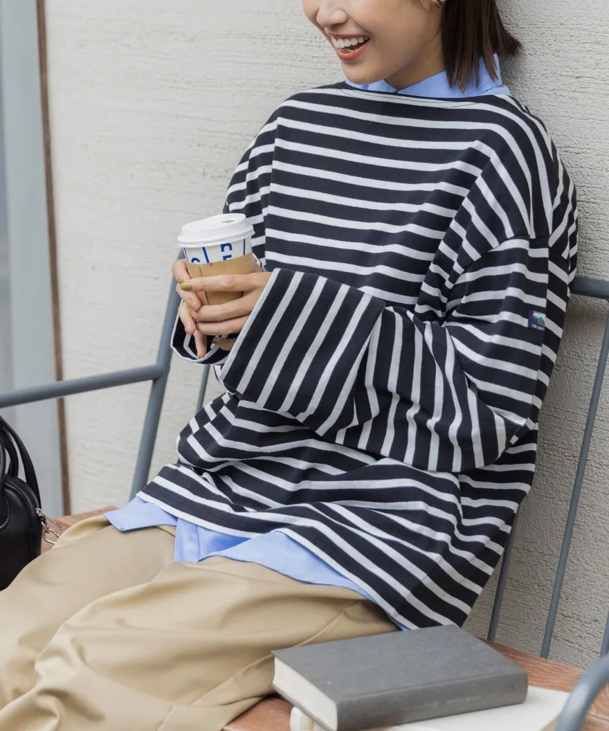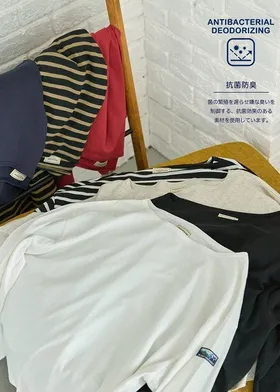 期間限定特價~品牌垂墜寬袖素面/條文純棉Tshirt
