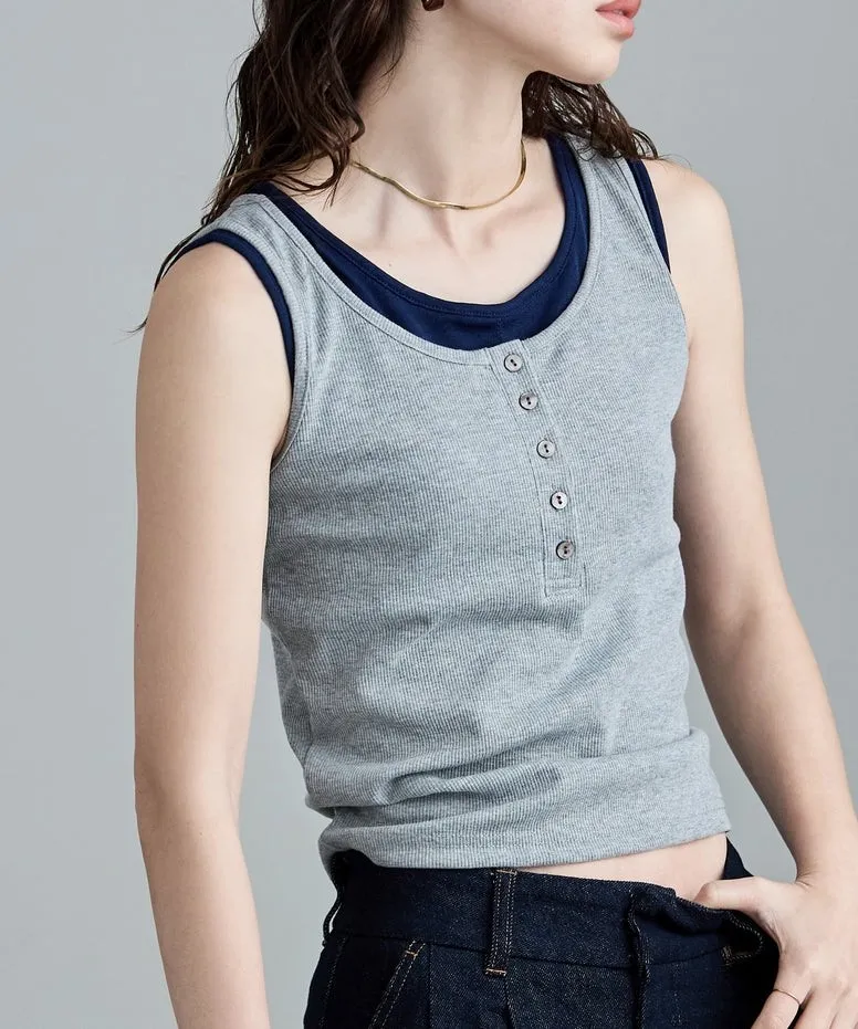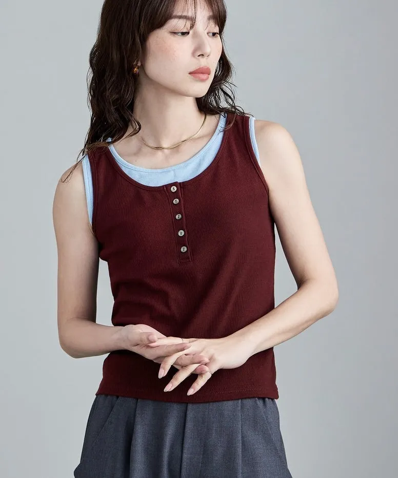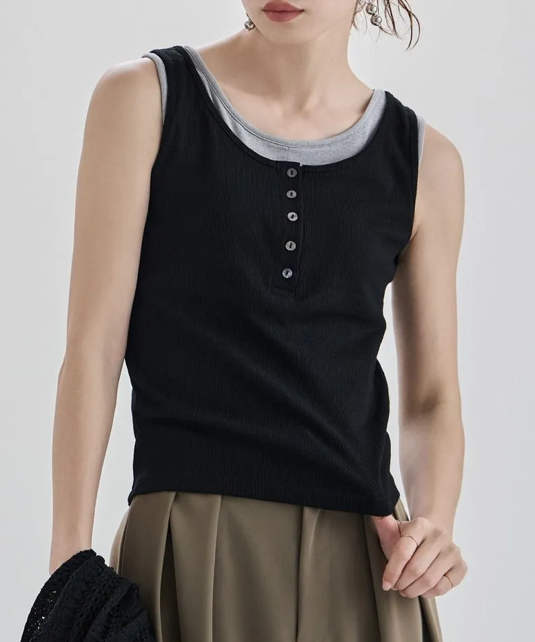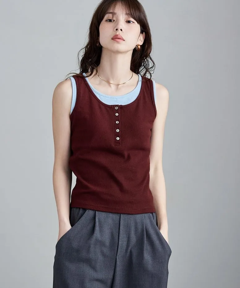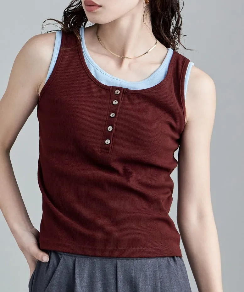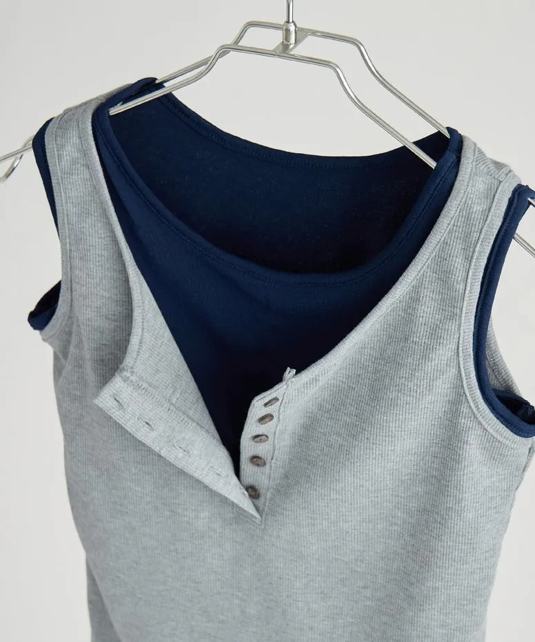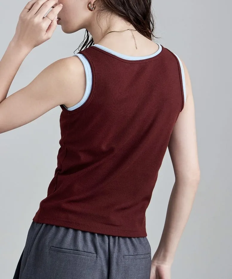 雙層造型配色羅紋背心~<附可拆胸墊>