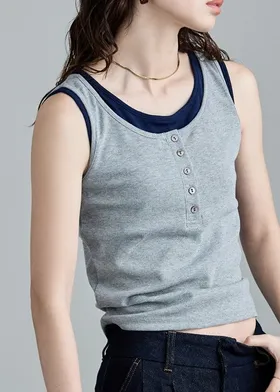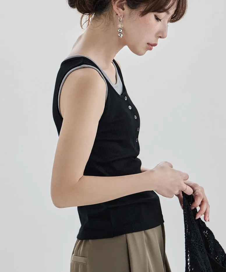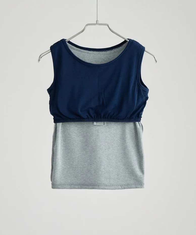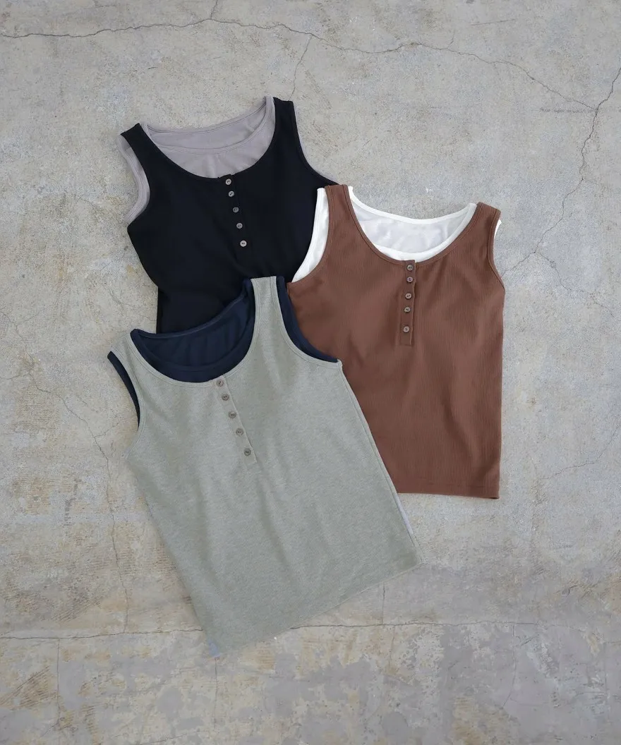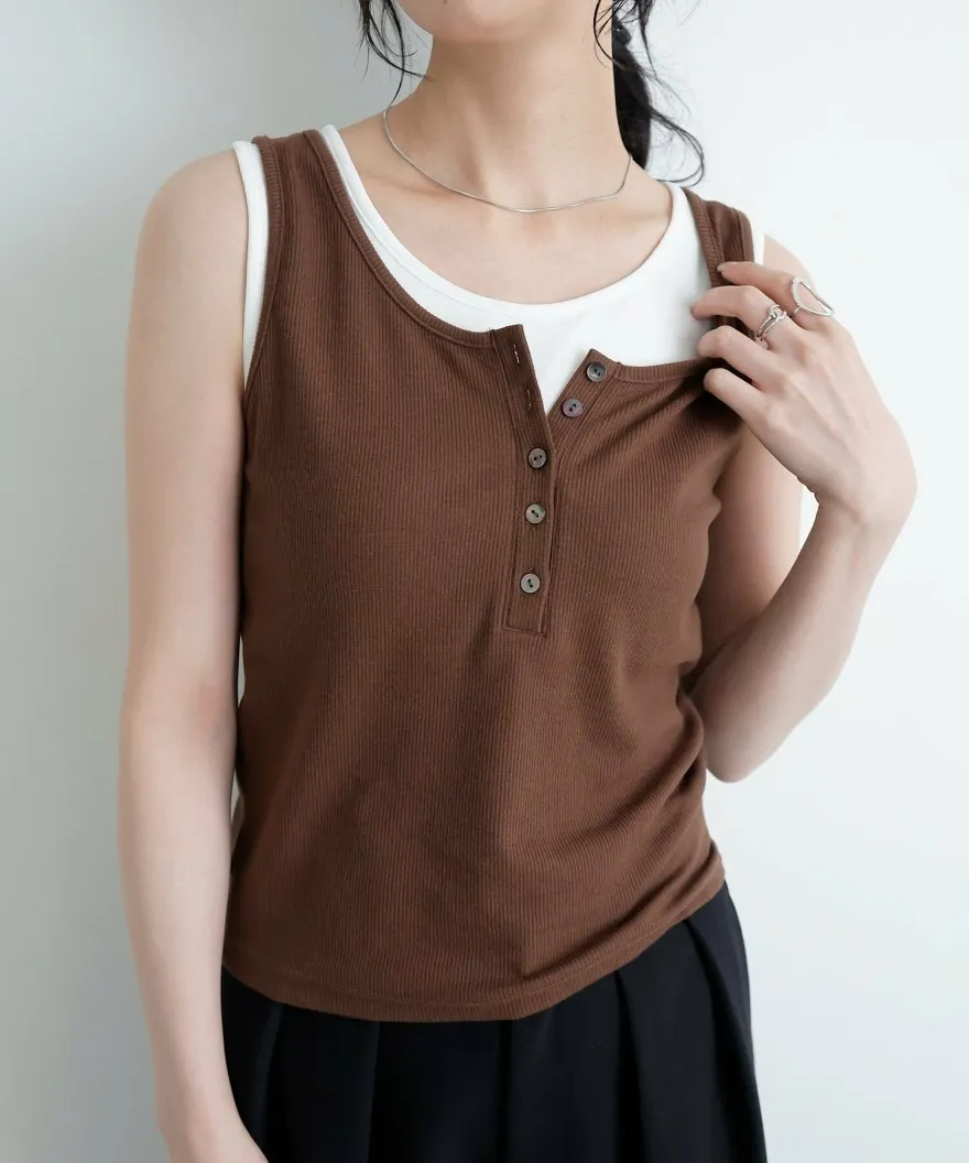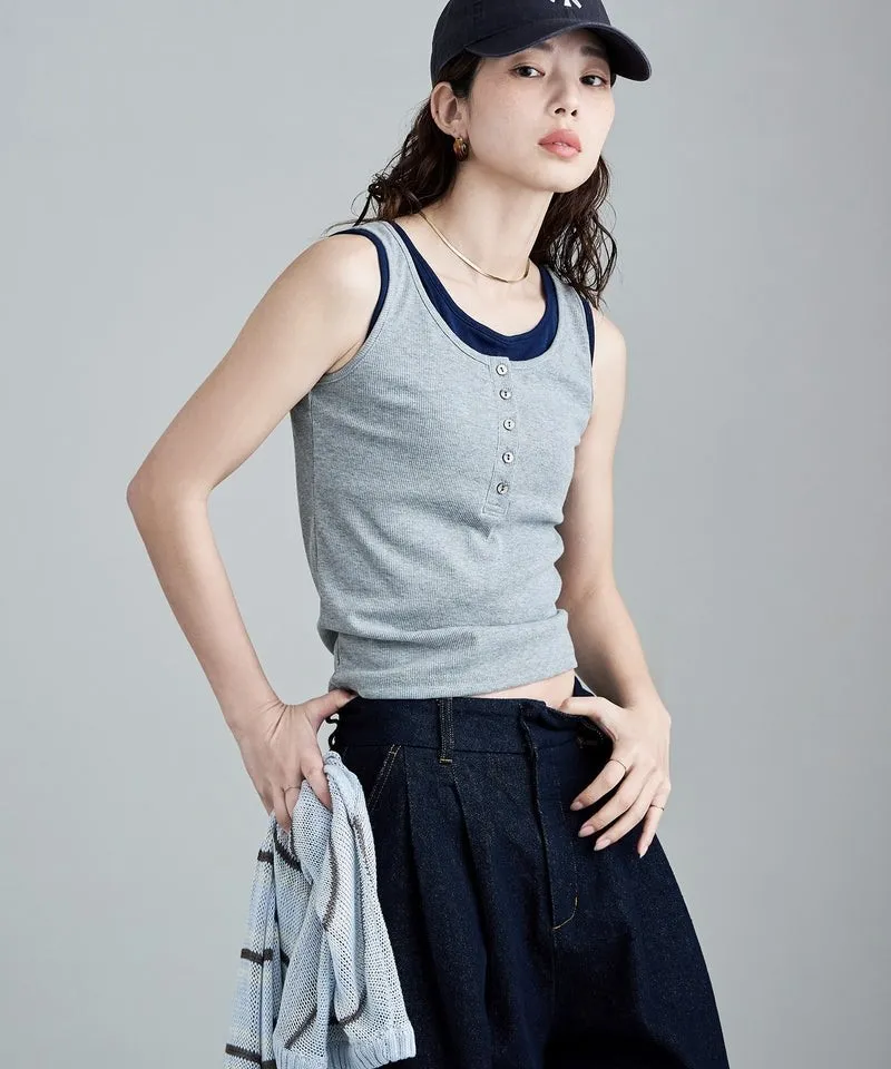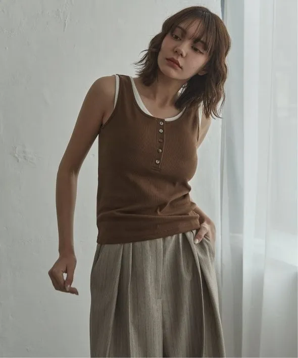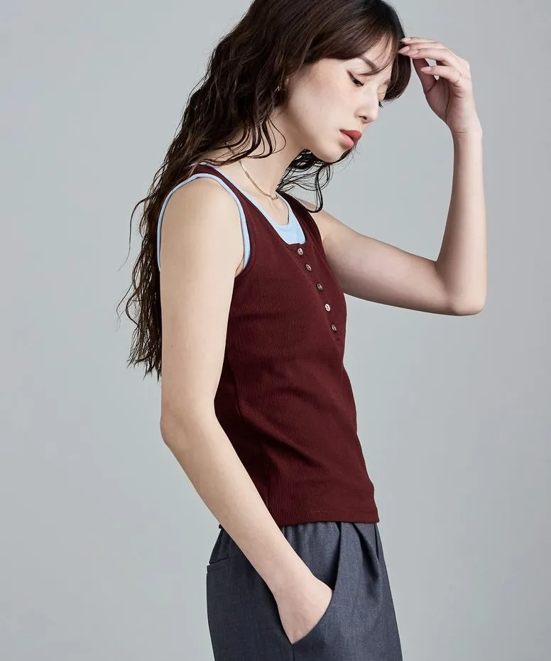 雙層造型配色羅紋背心~<附可拆胸墊>