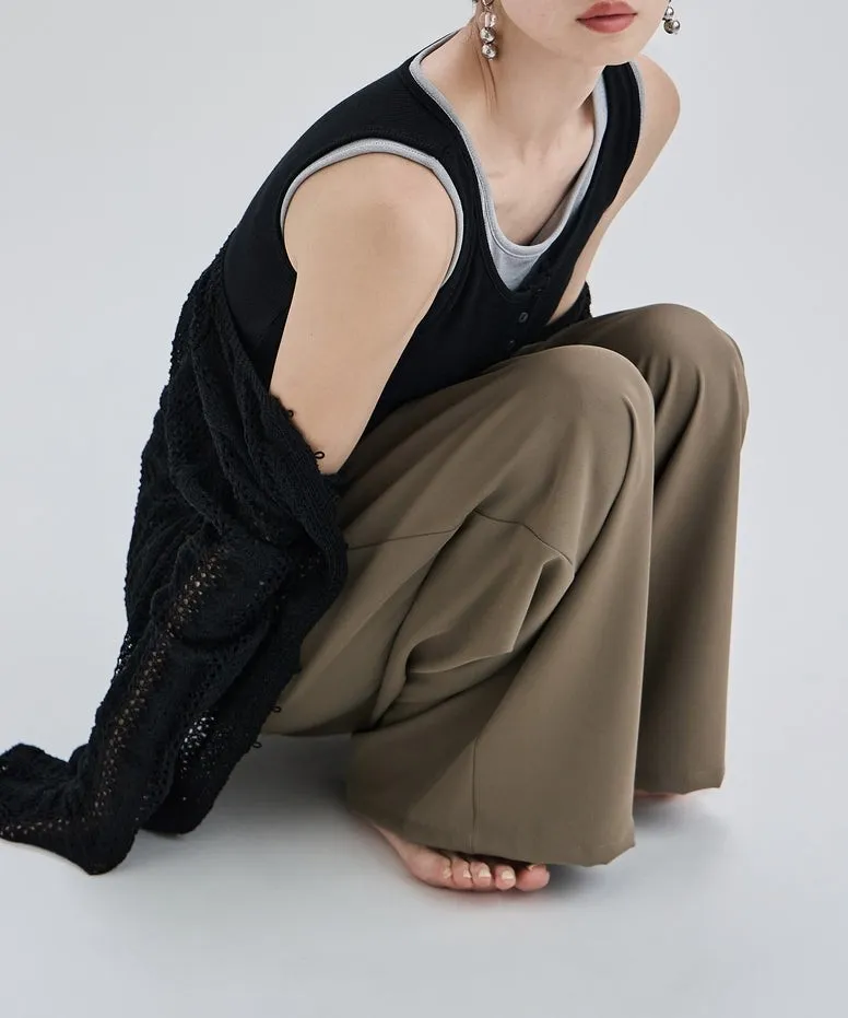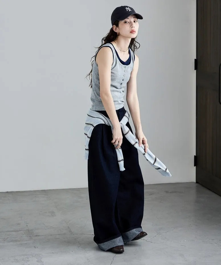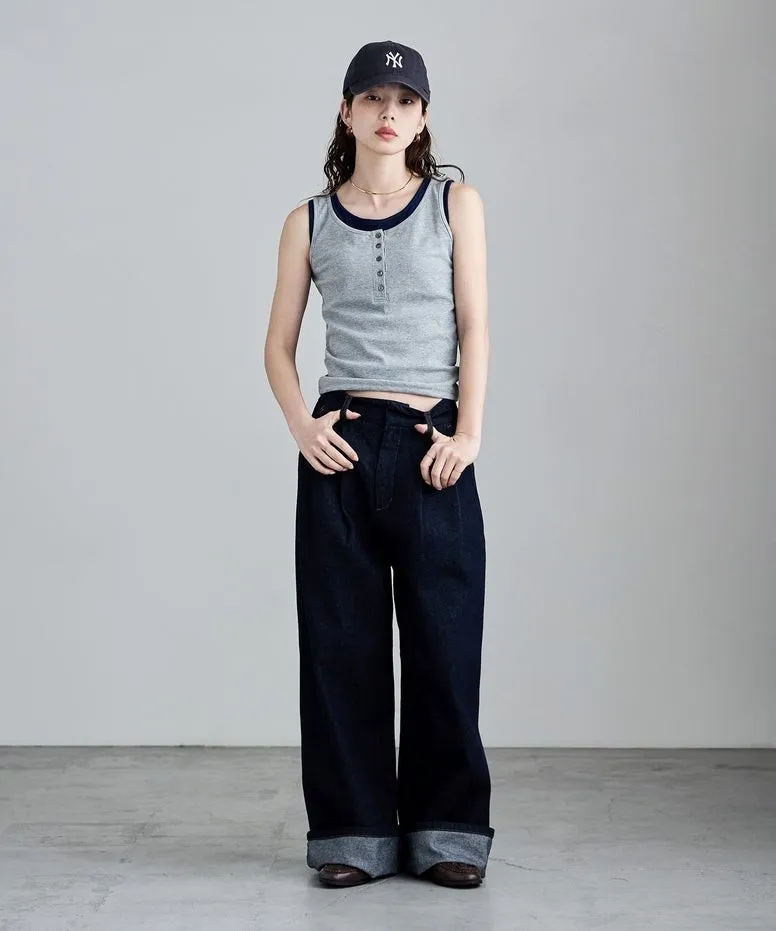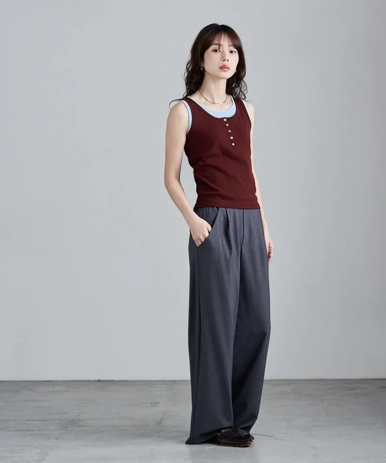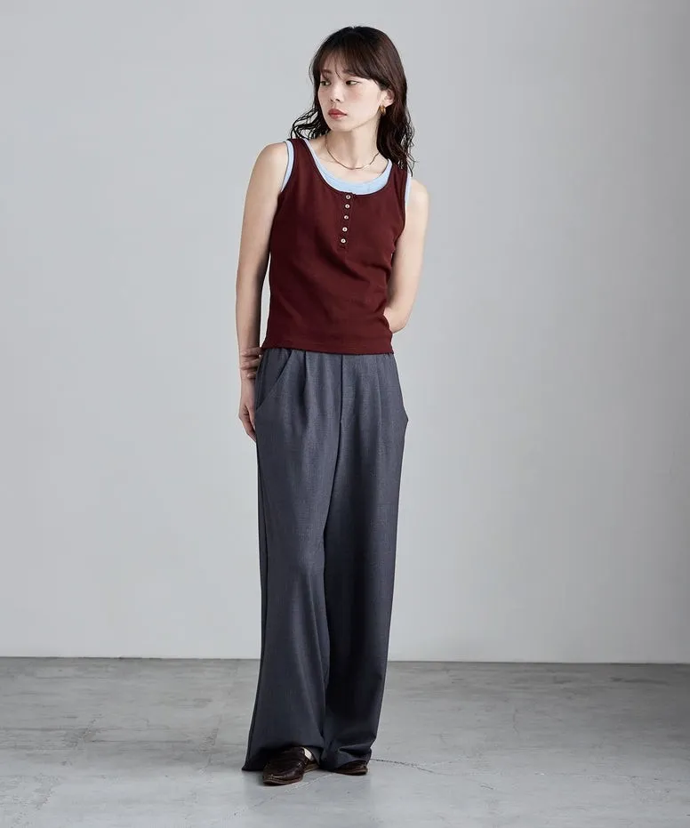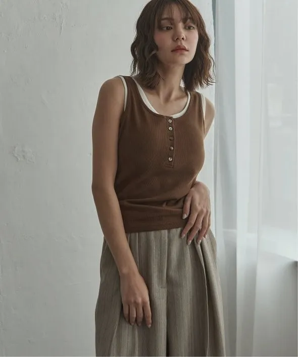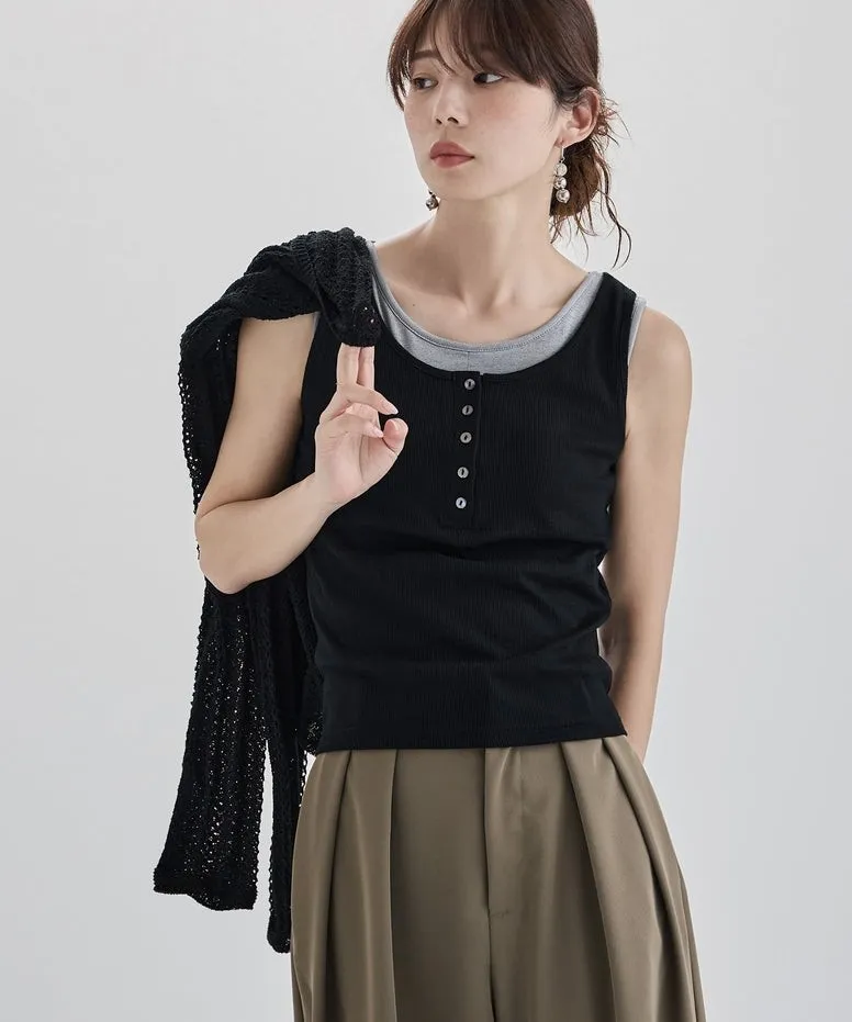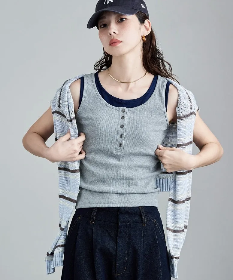雙層造型配色羅紋背心~<附可拆胸墊>