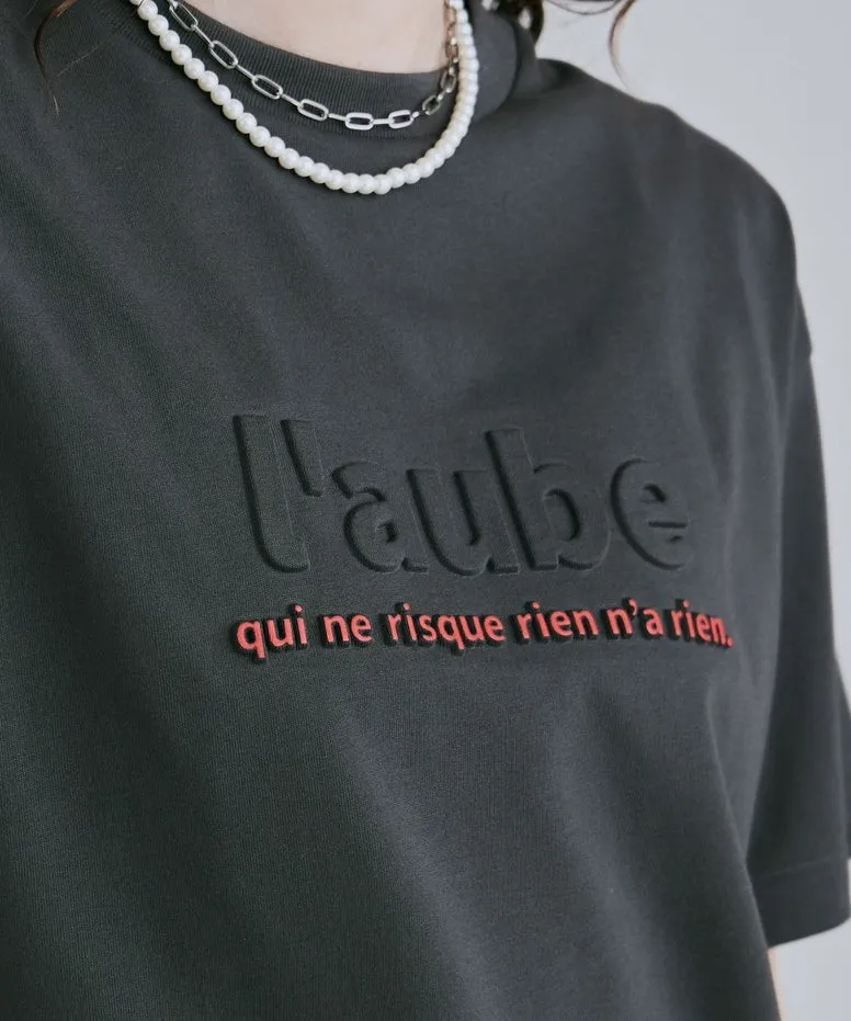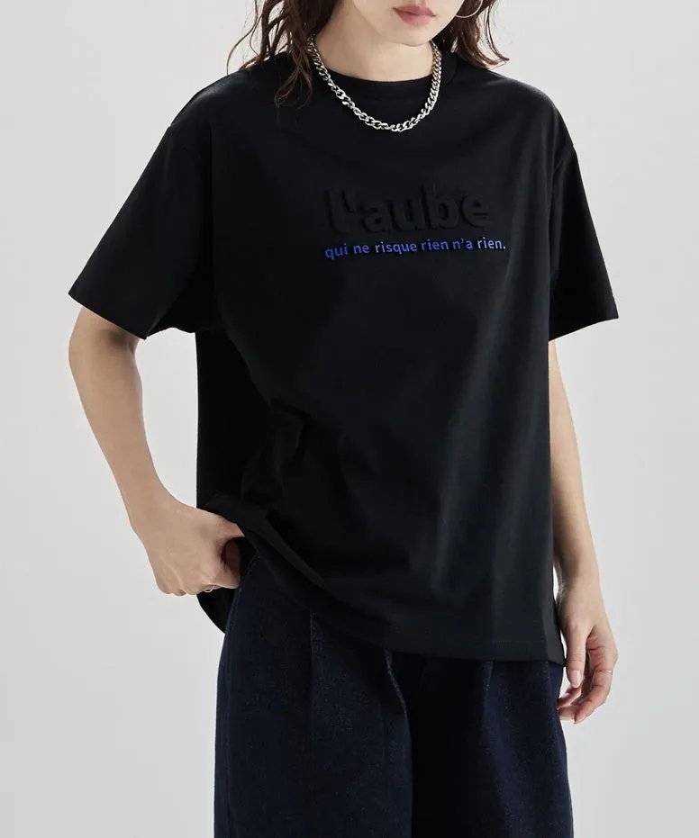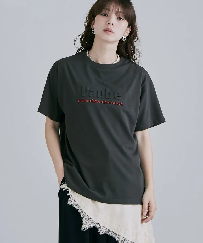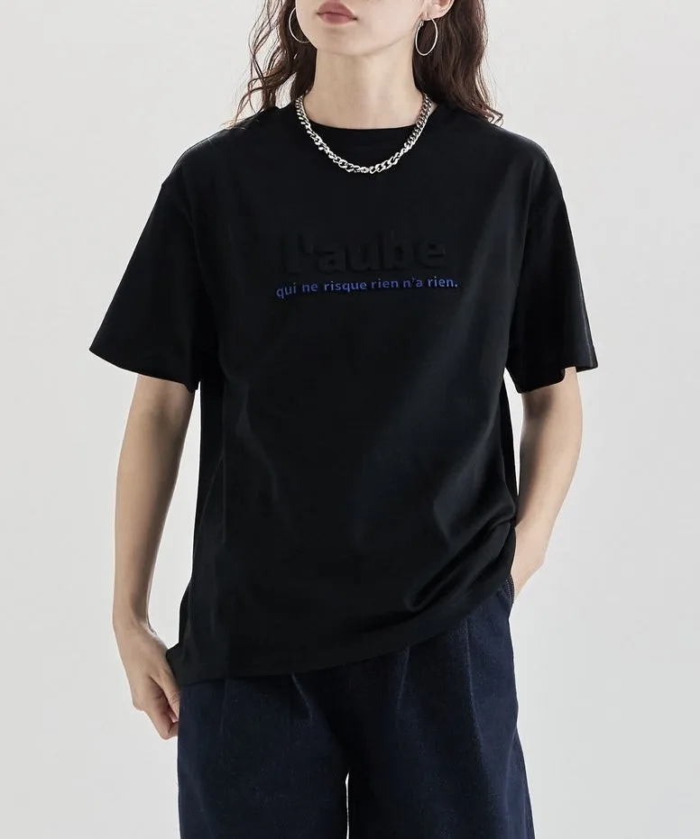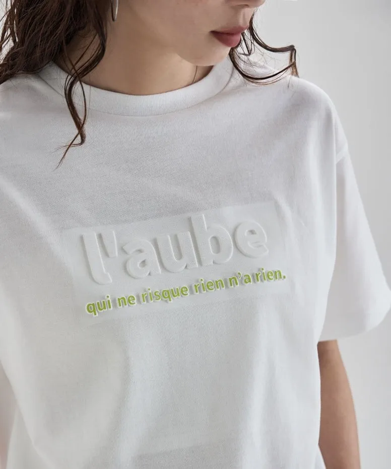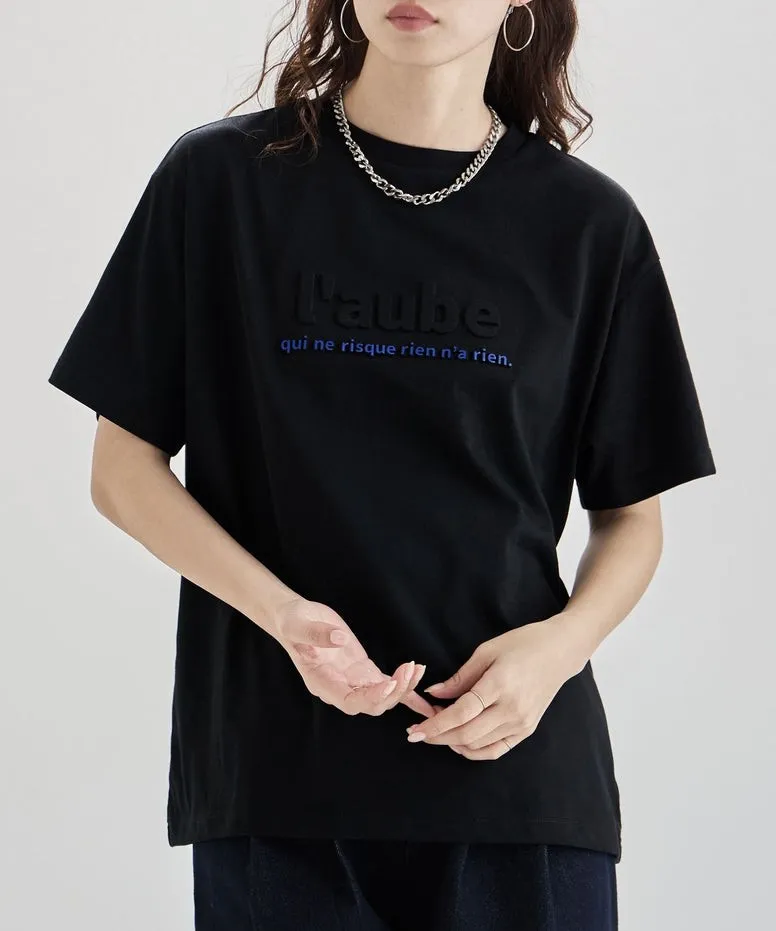 機能接觸冷感&抗UV加工 立體l'aube法語字體壓印棉T