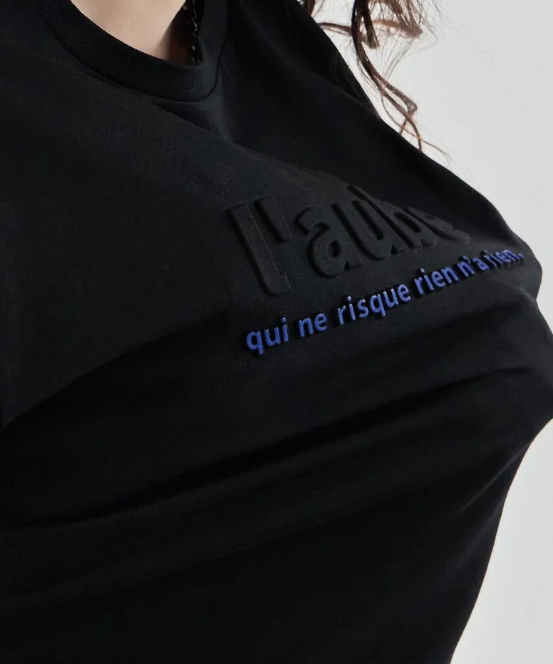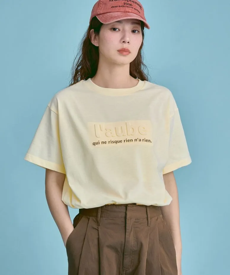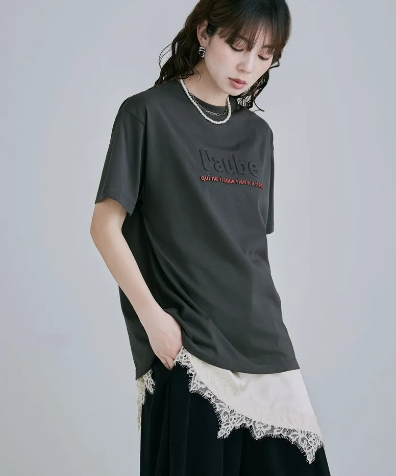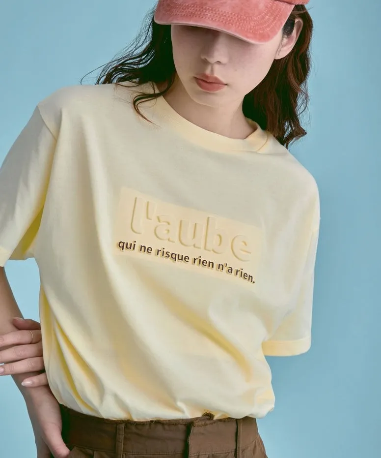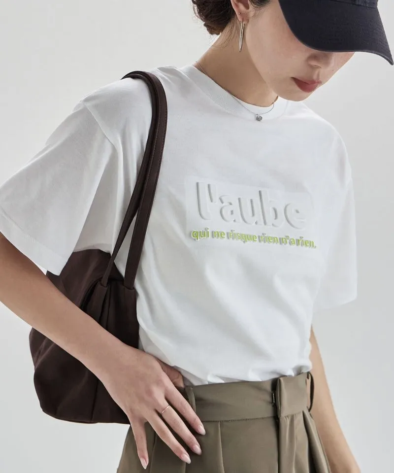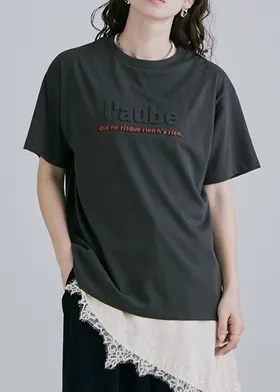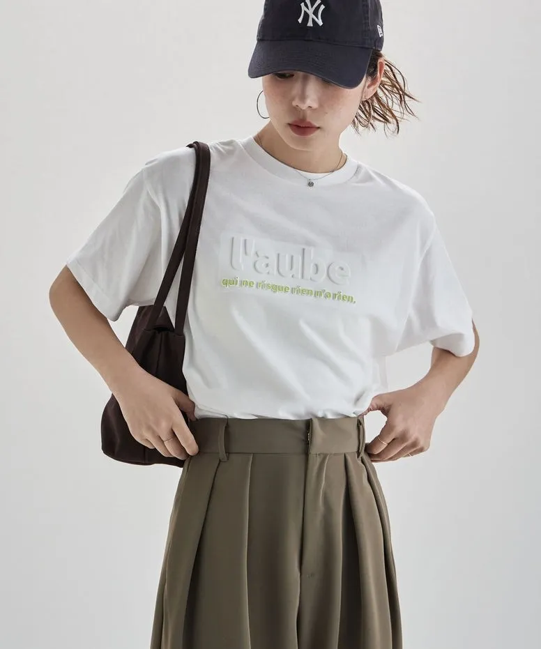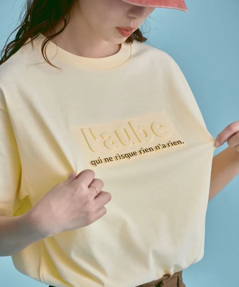 機能接觸冷感&抗UV加工 立體l'aube法語字體壓印棉T