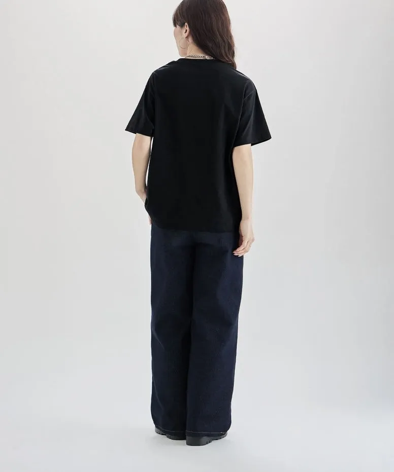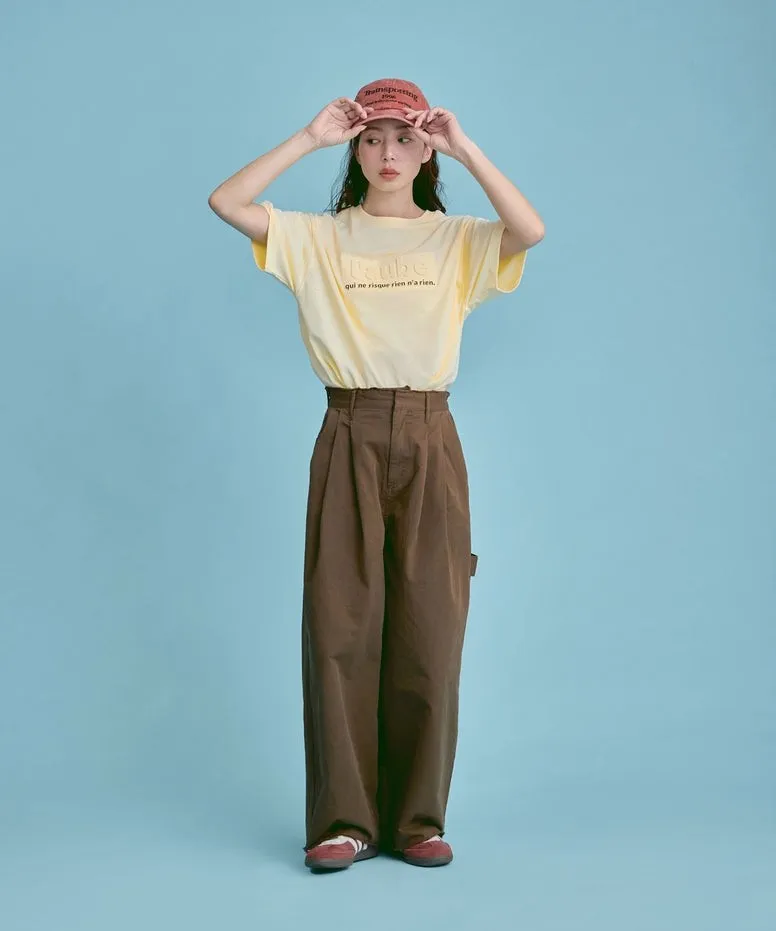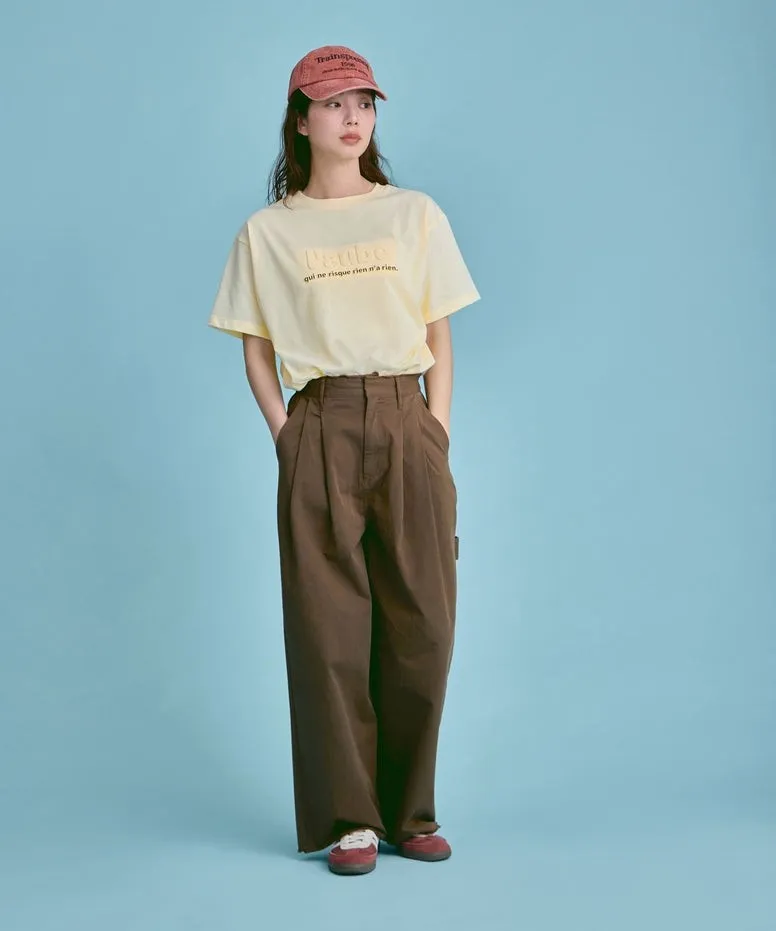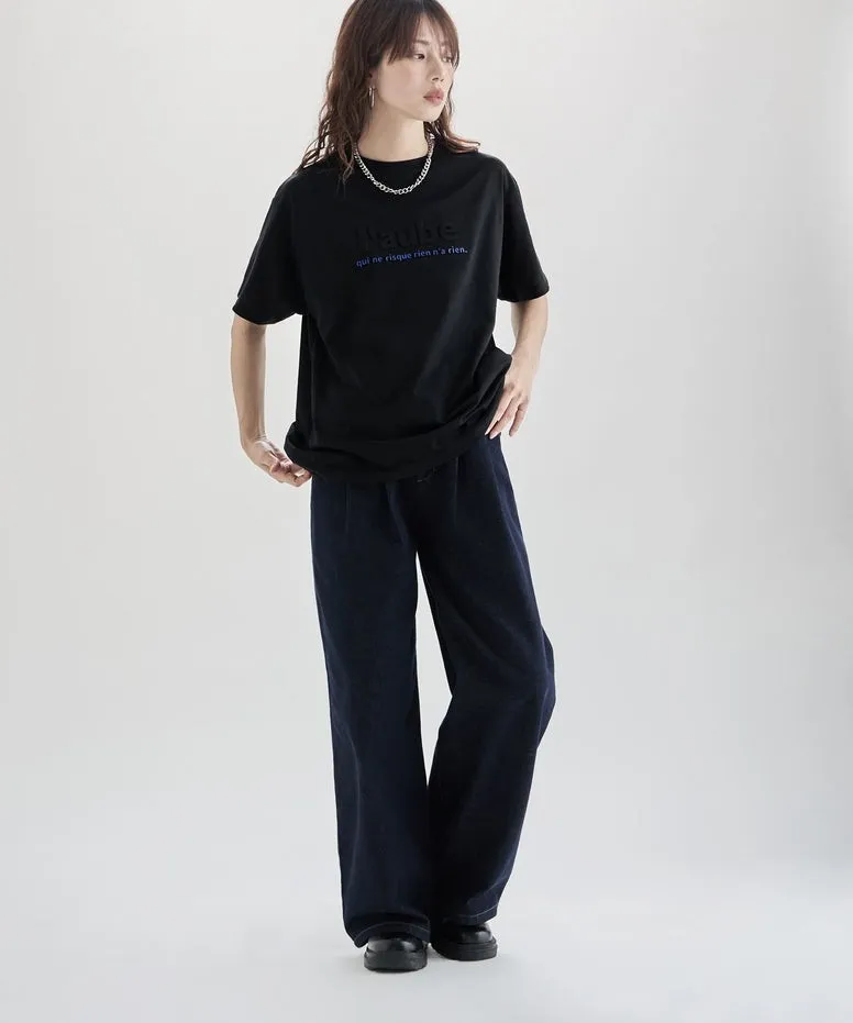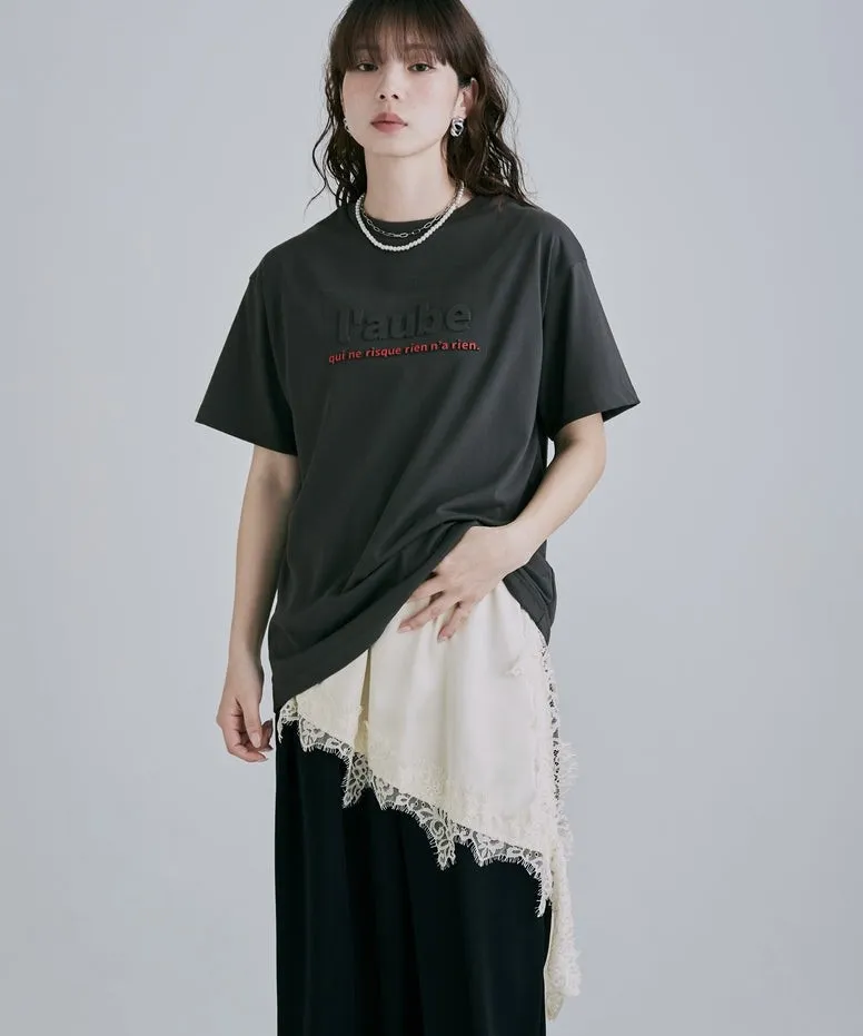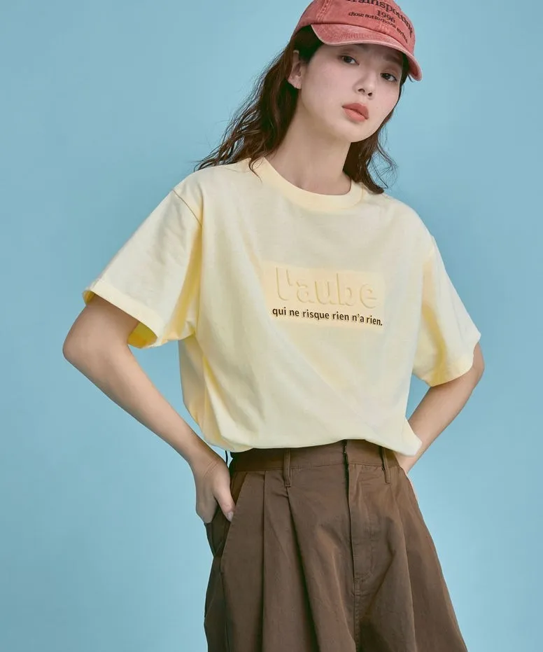 機能接觸冷感&抗UV加工 立體l'aube法語字體壓印棉T