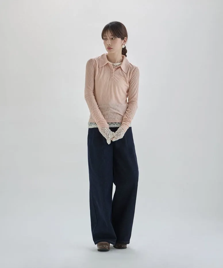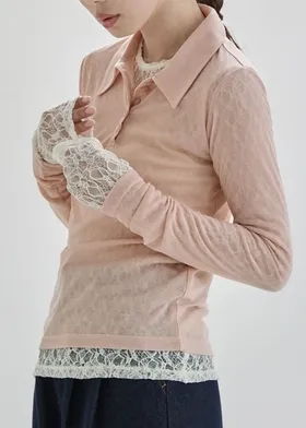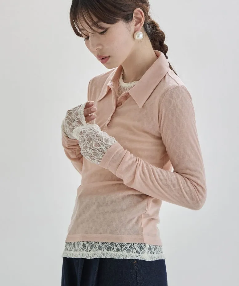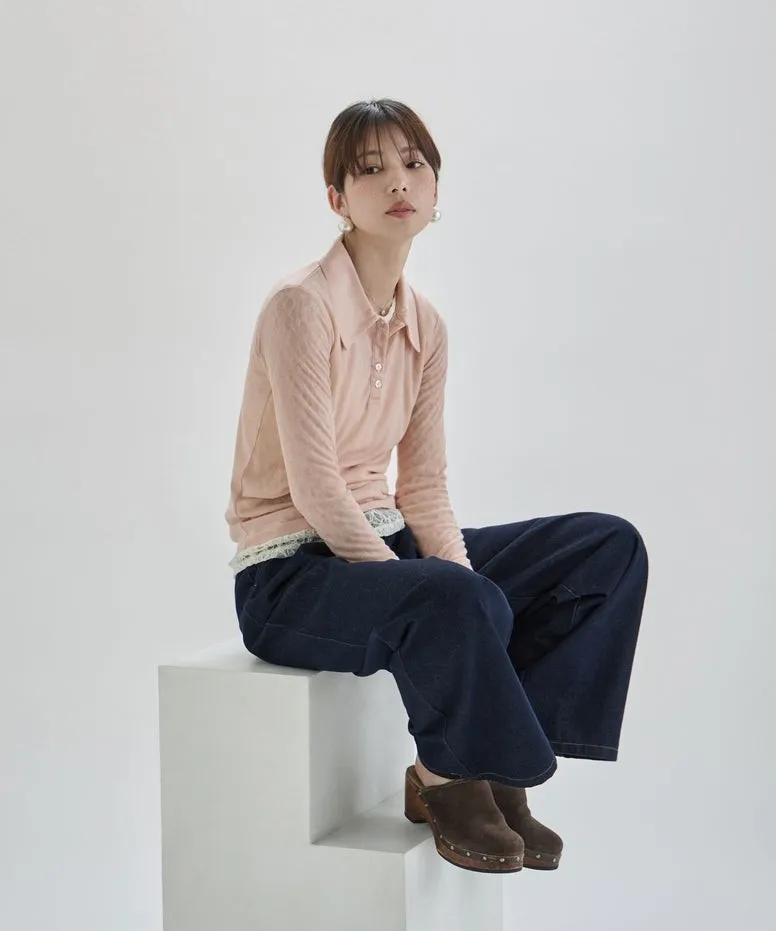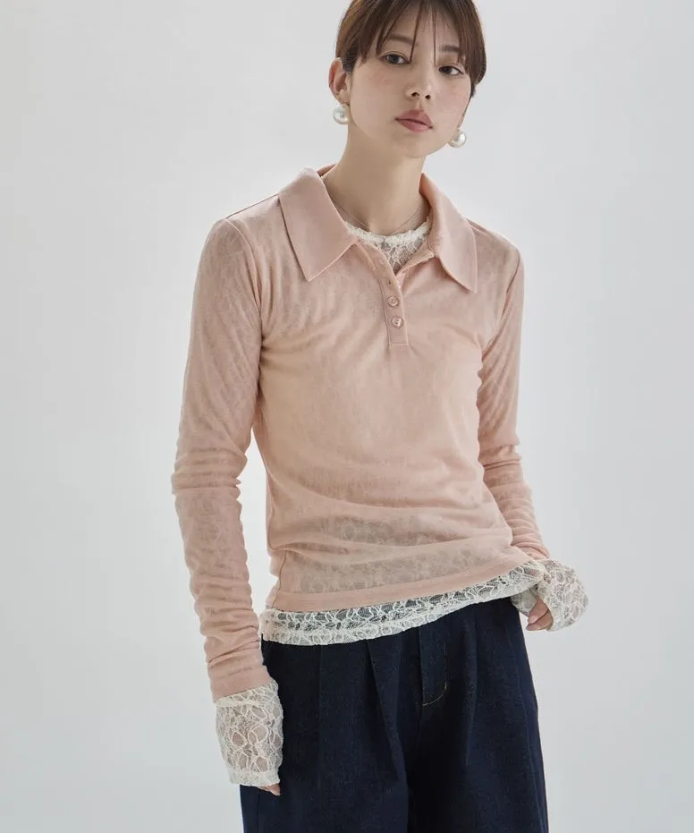 優惠價格~絲滑親膚為透感春色POLO上衣