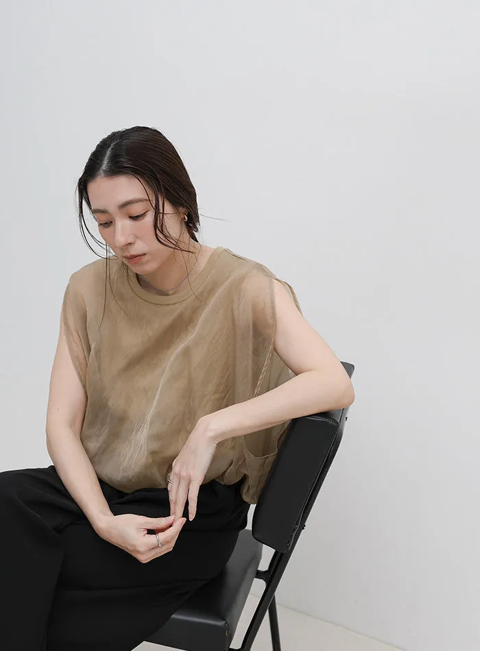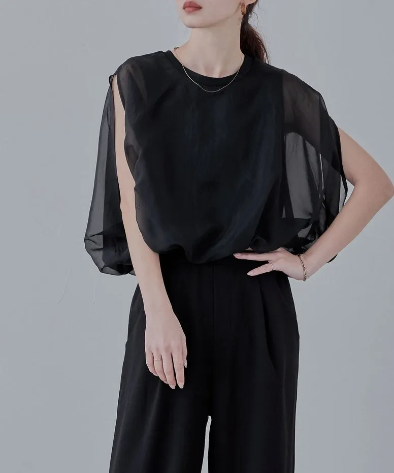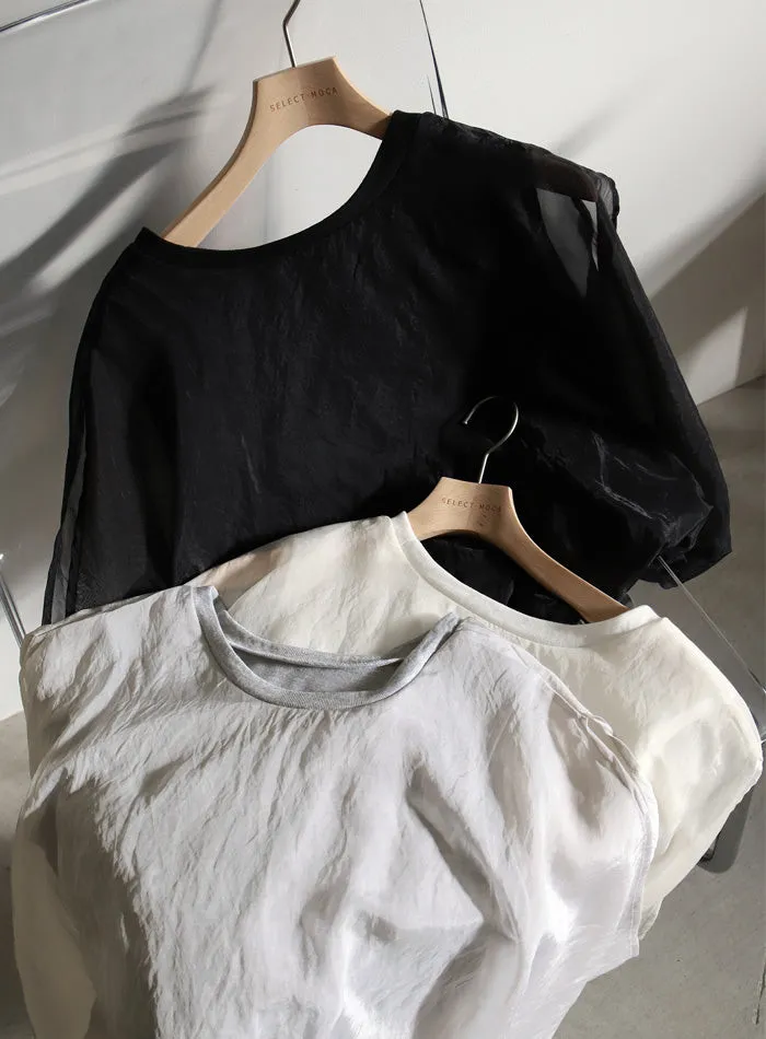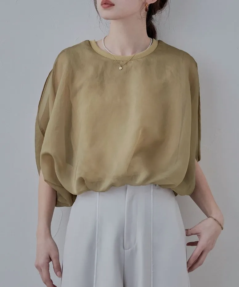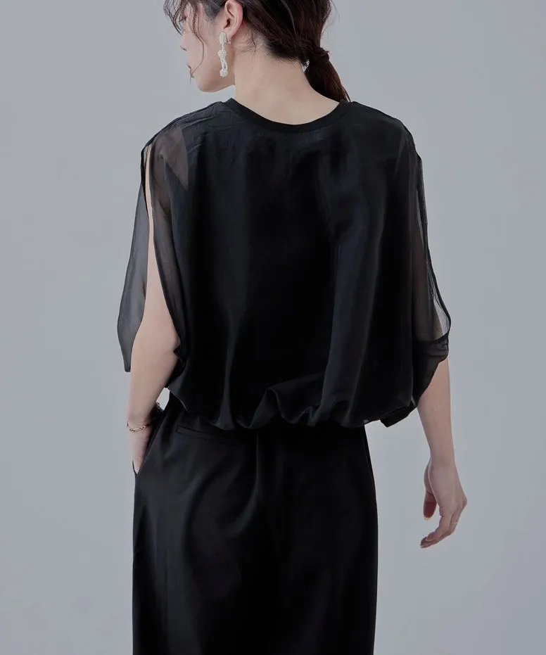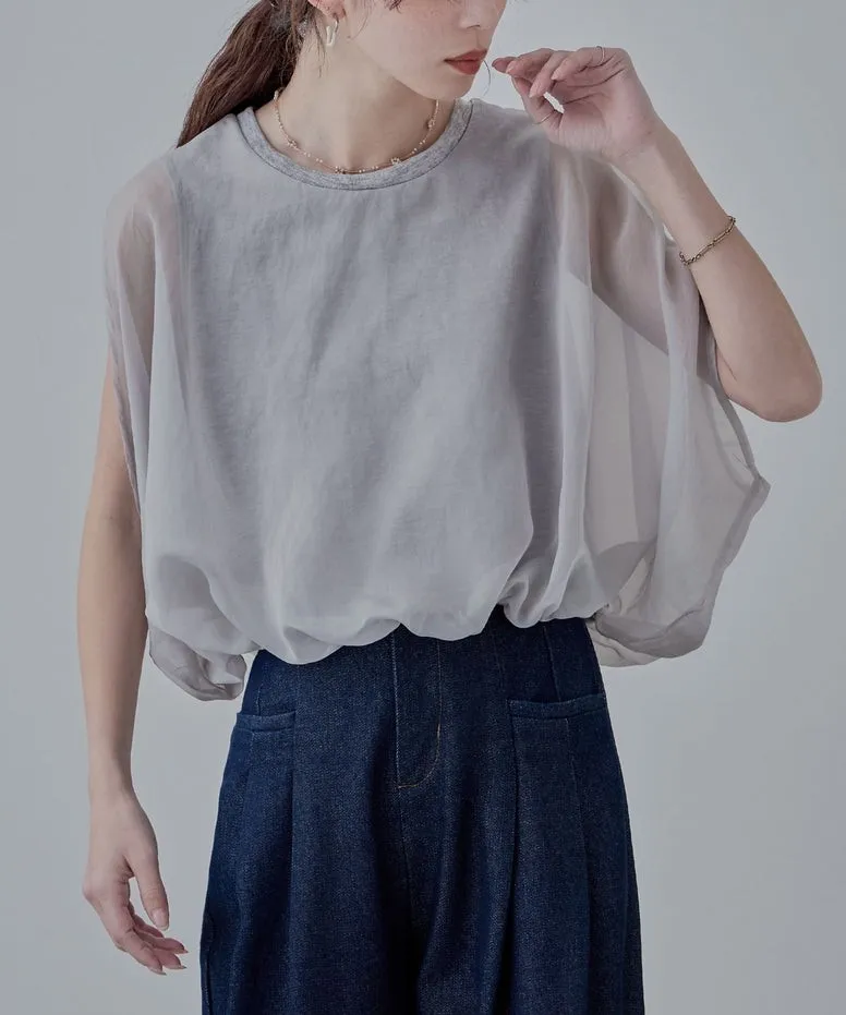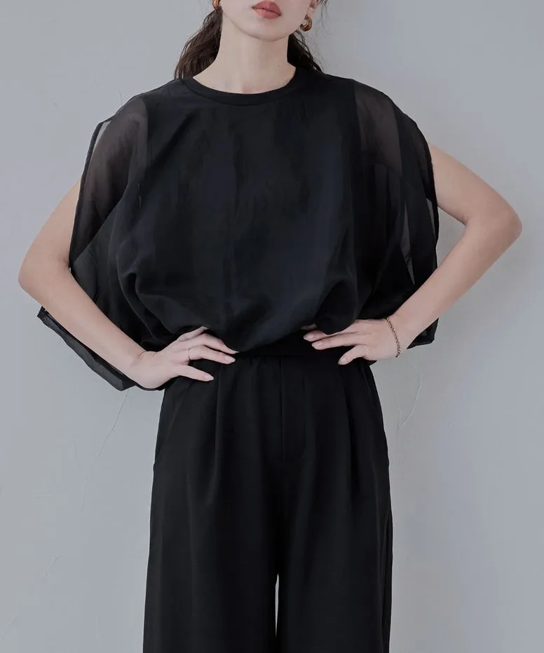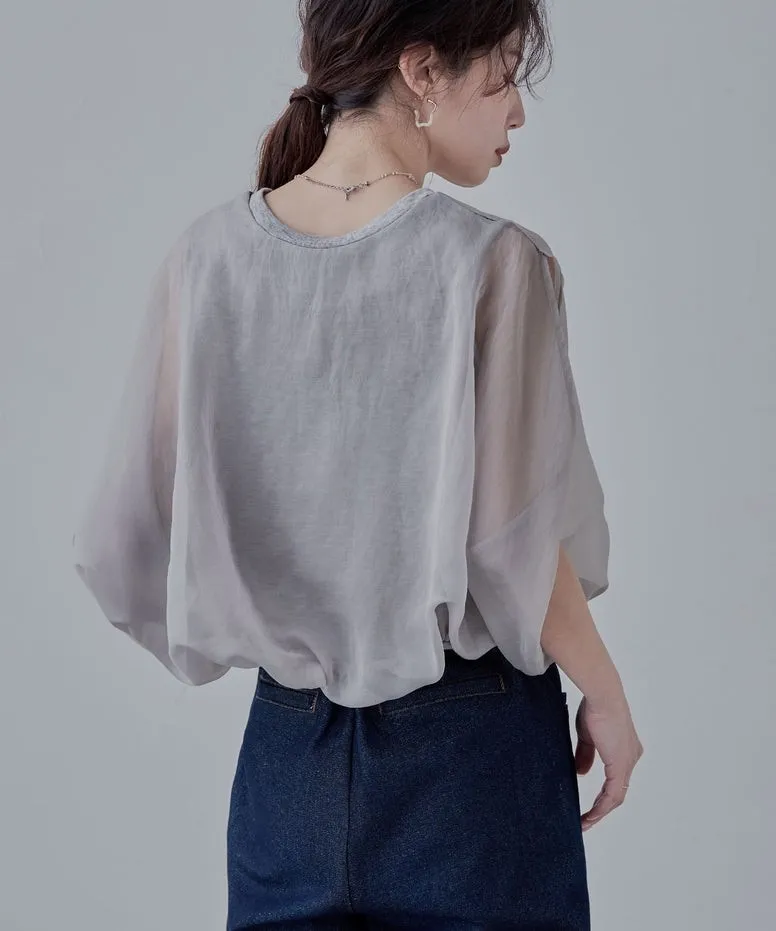 同色調舒服彈性棉觸感的內層x透視烏干紗外層