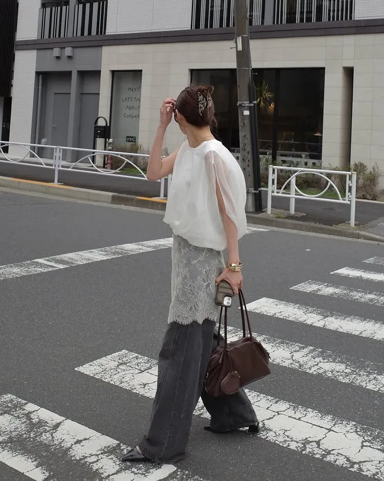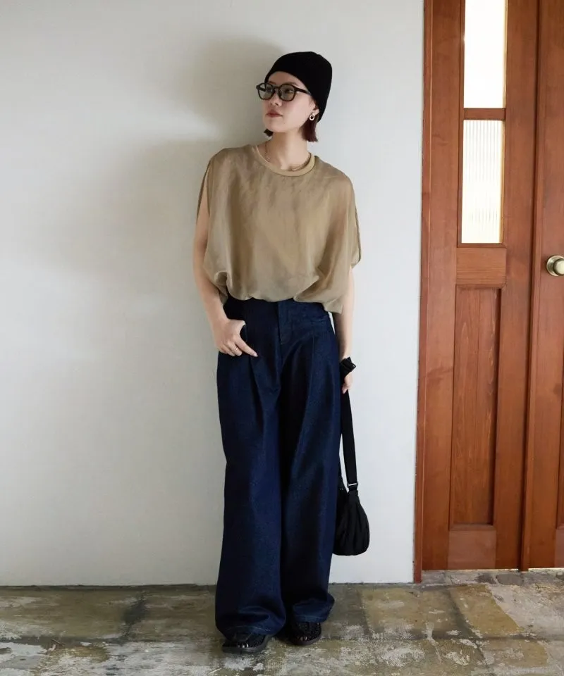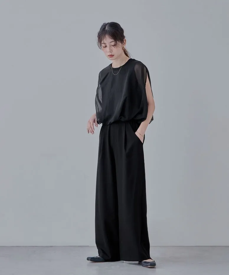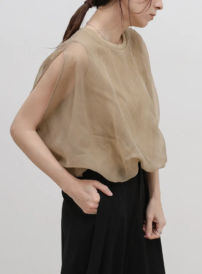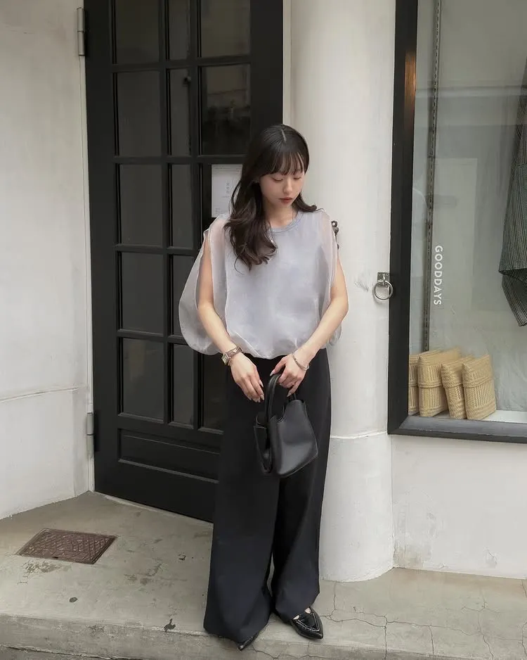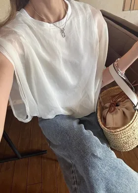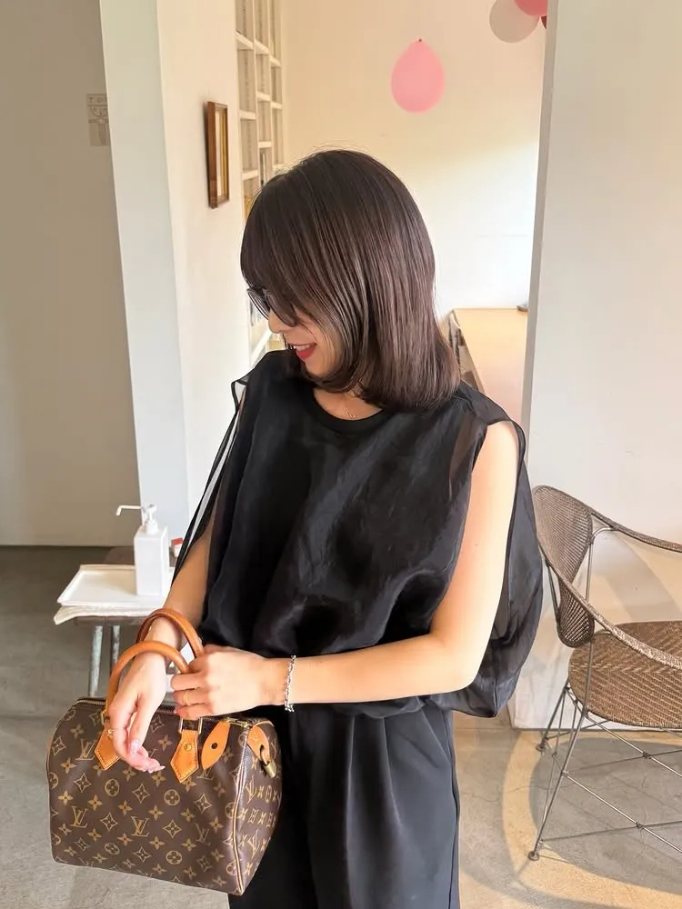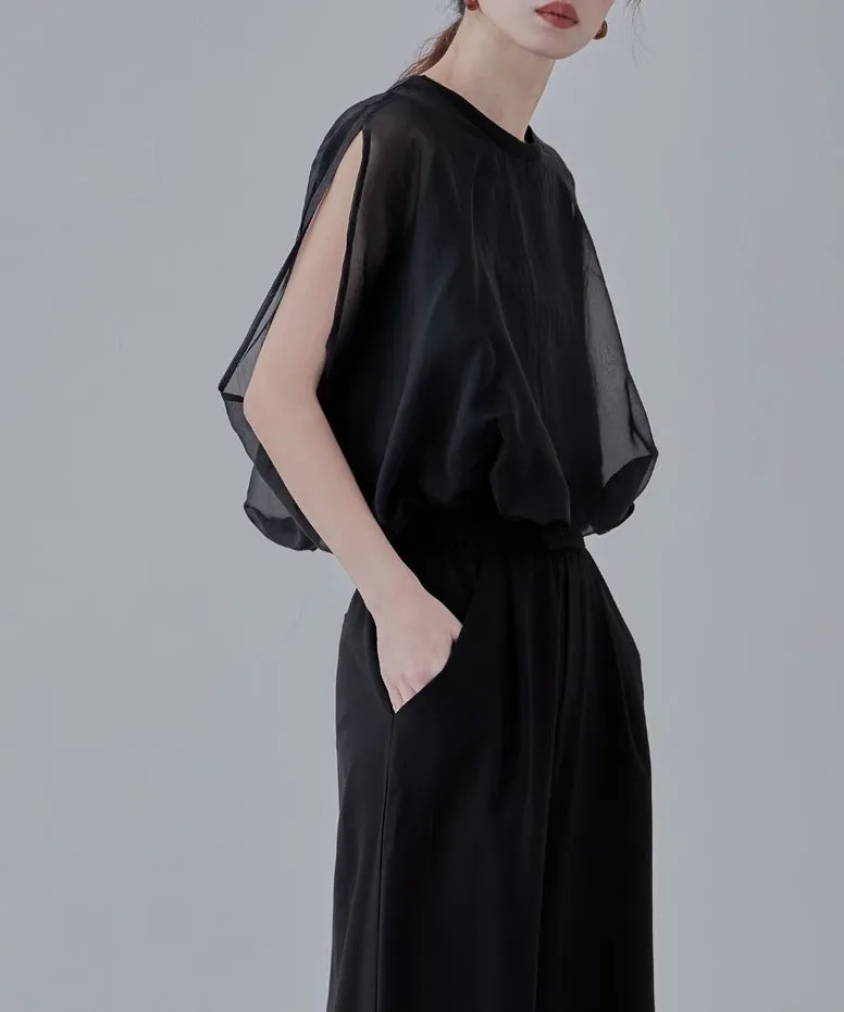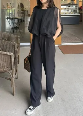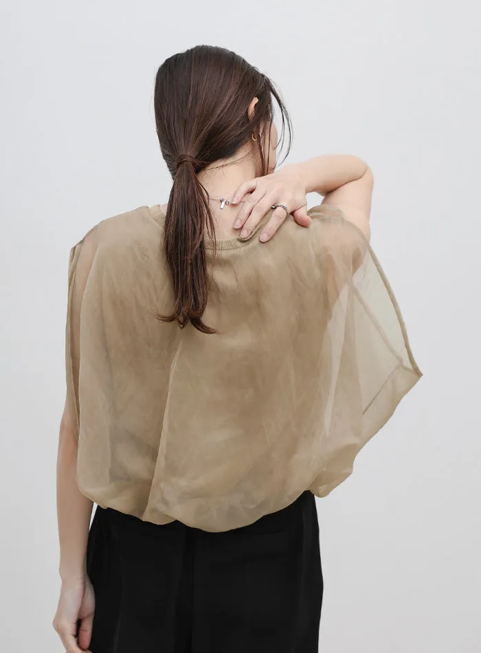 同色調舒服彈性棉觸感的內層x透視烏干紗外層