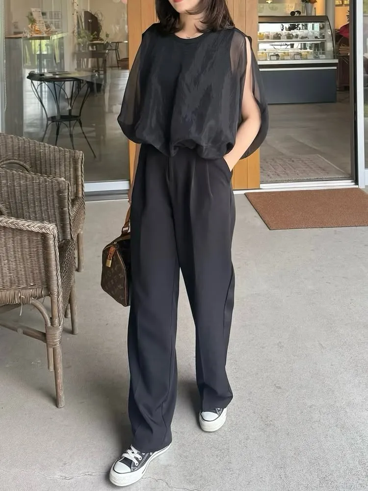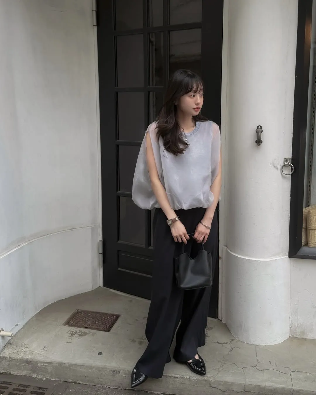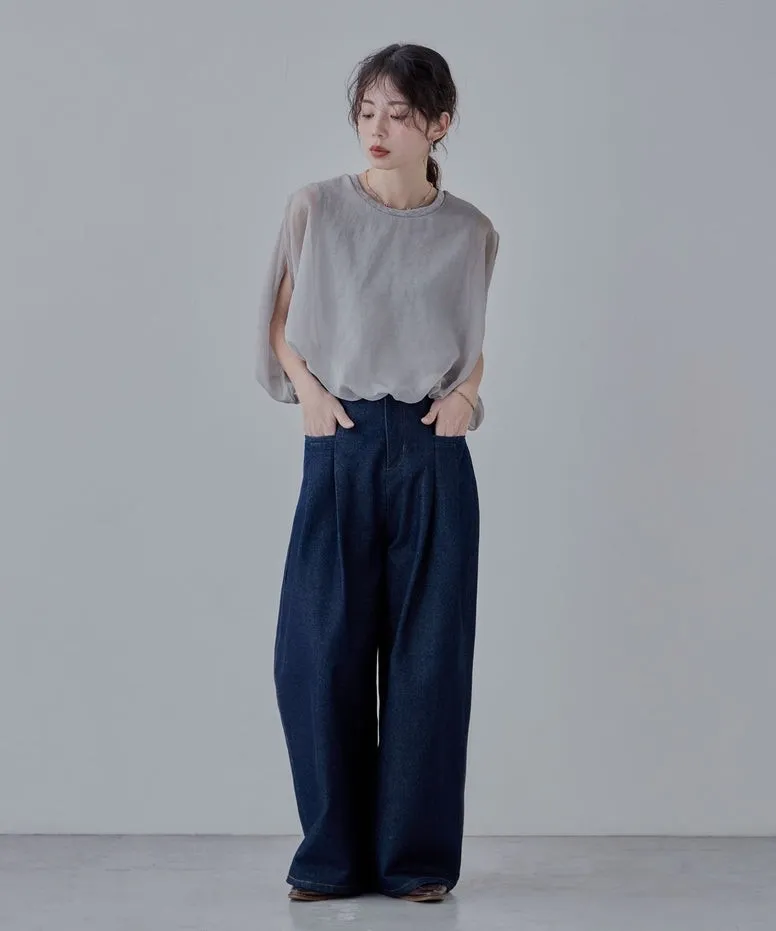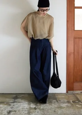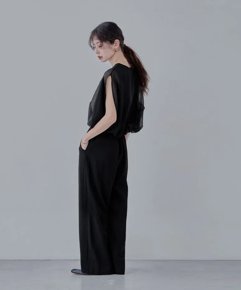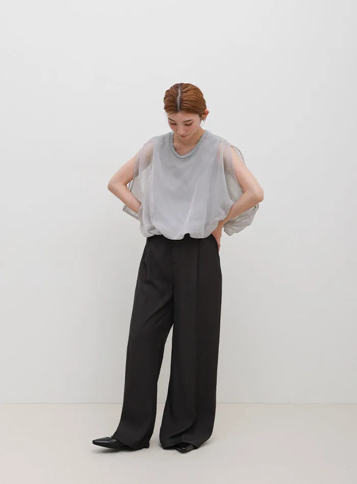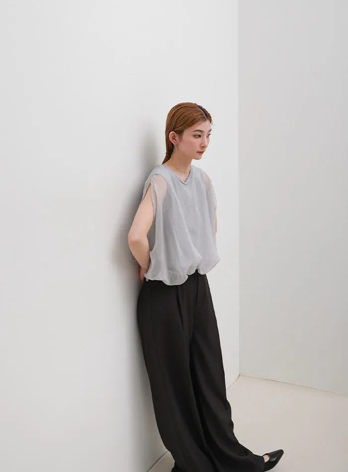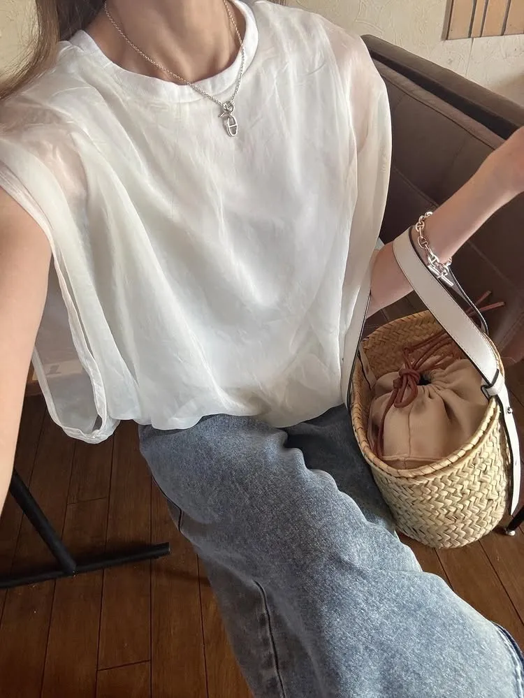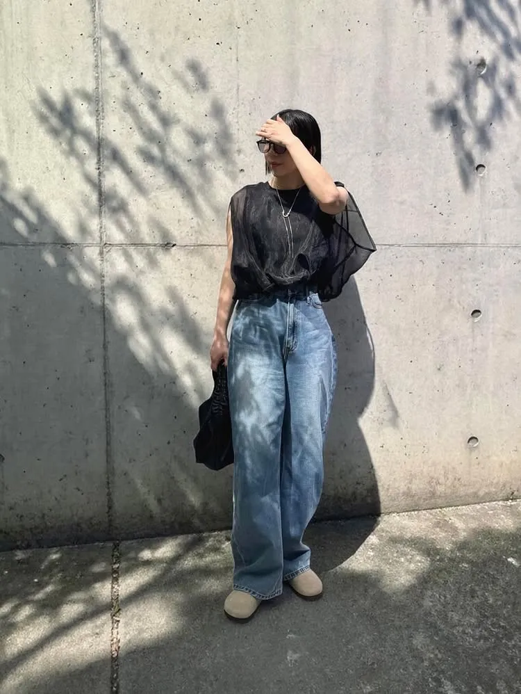 同色調舒服彈性棉觸感的內層x透視烏干紗外層