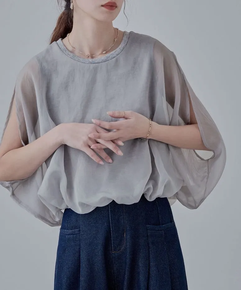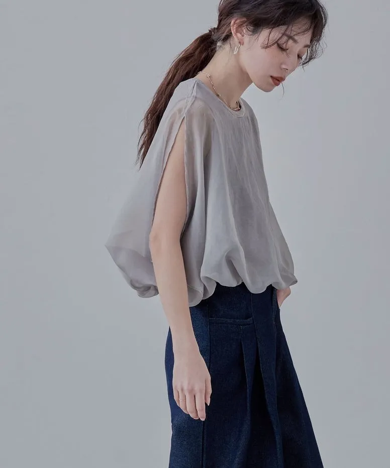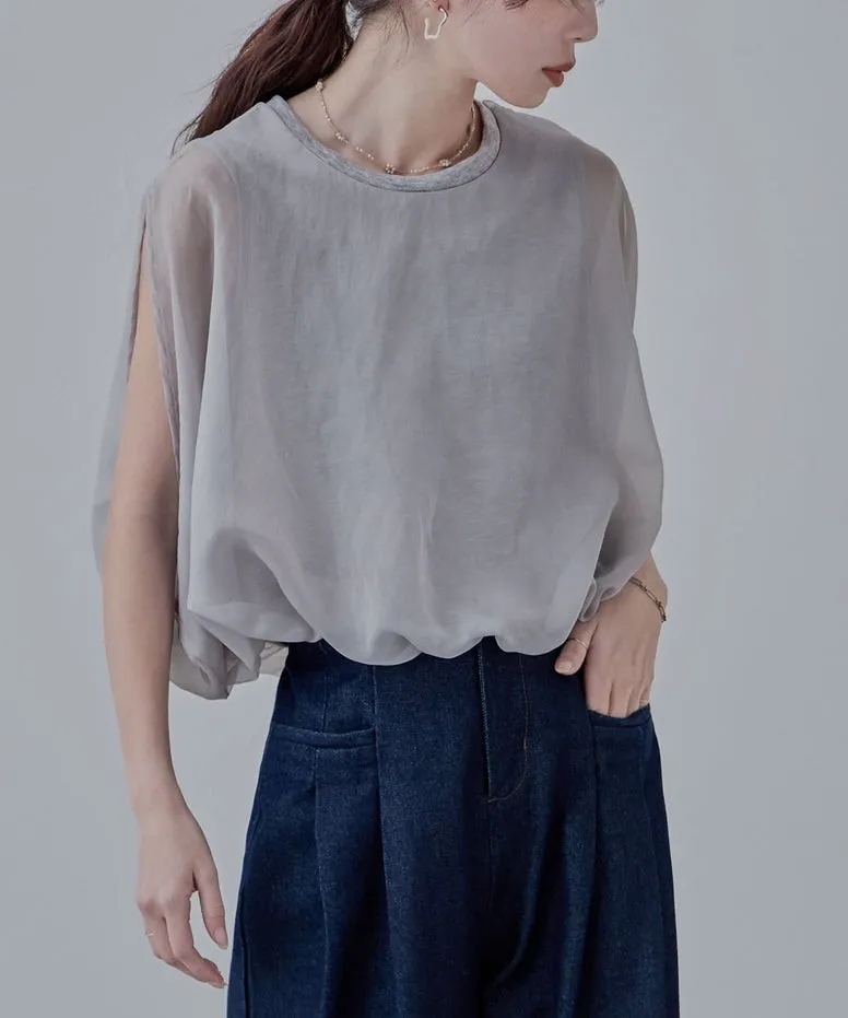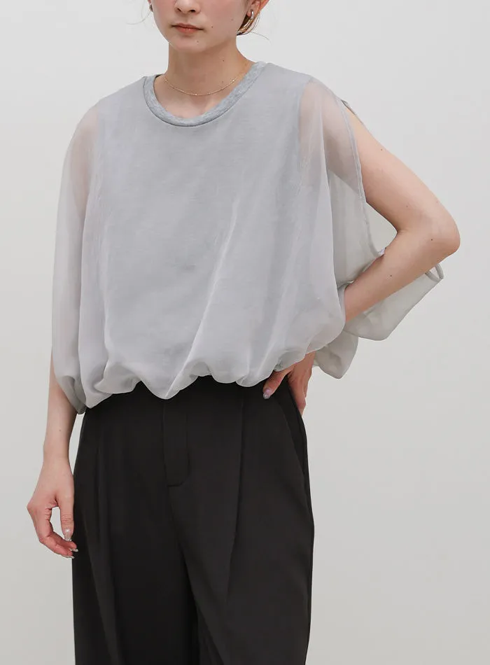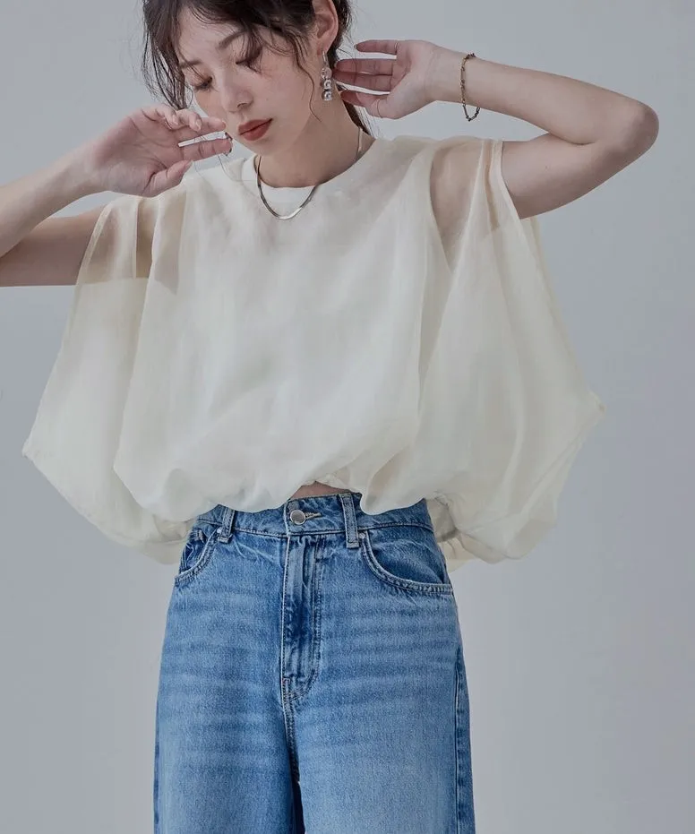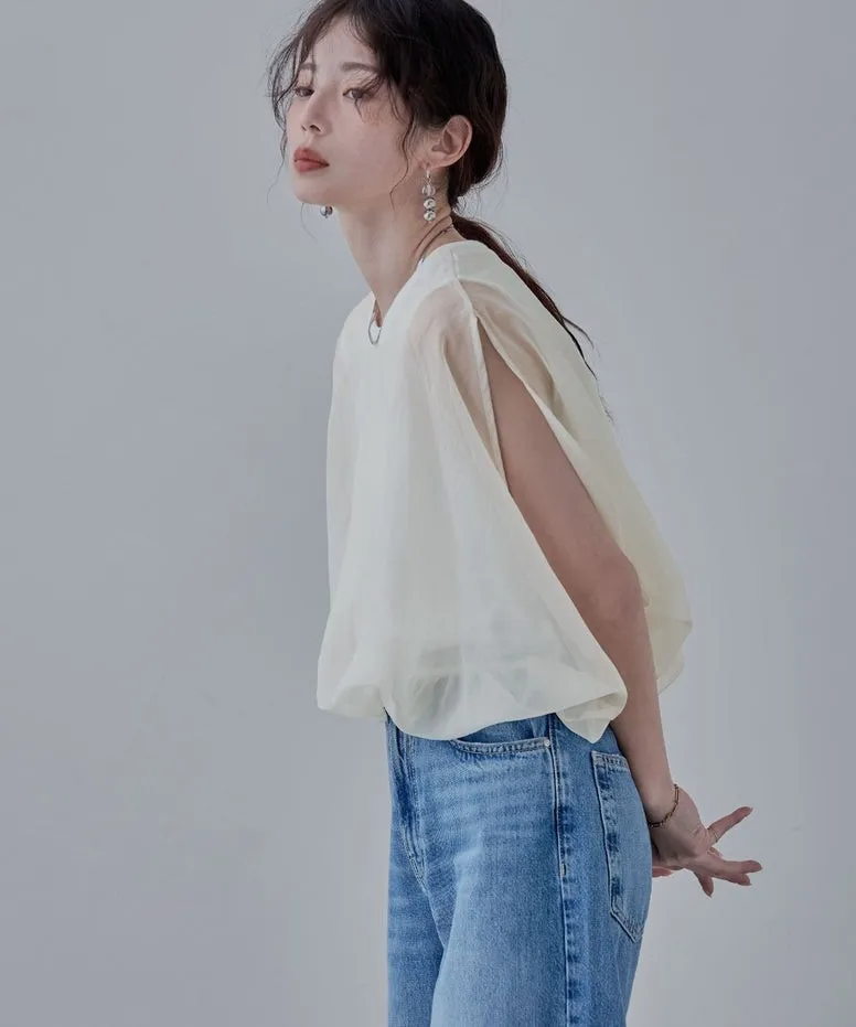 雙層設計短版花苞氣球造型上衣