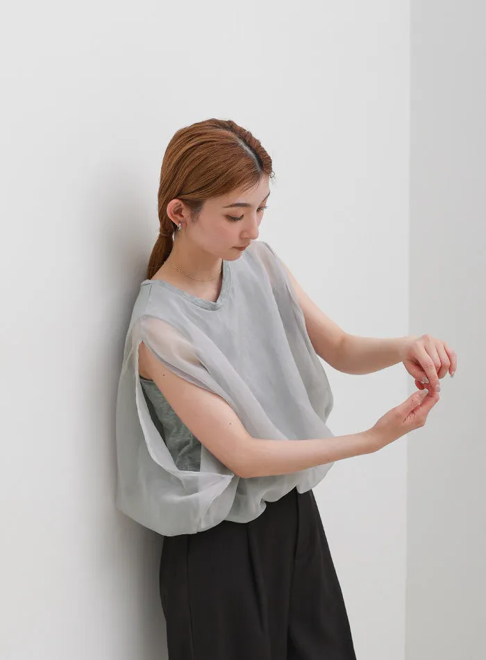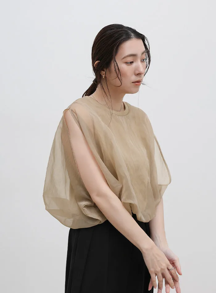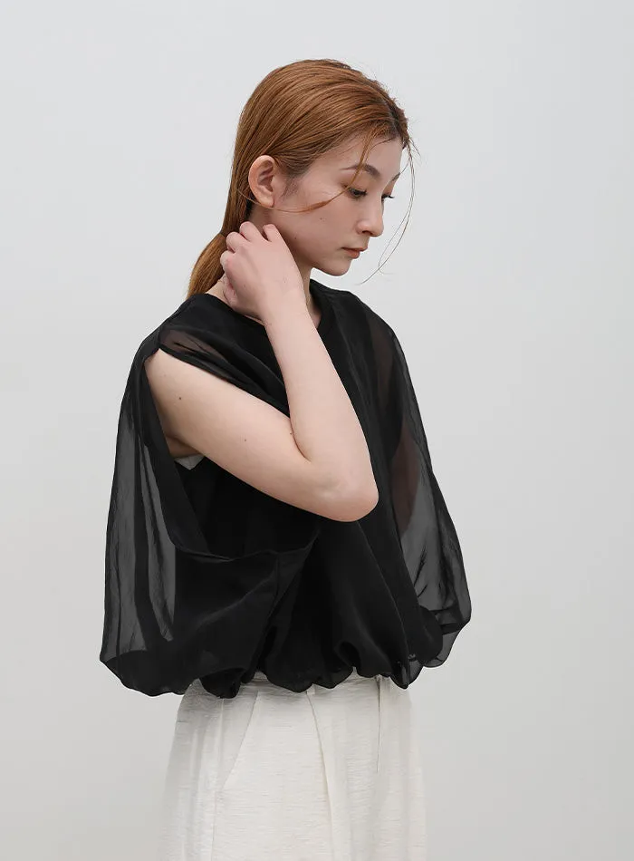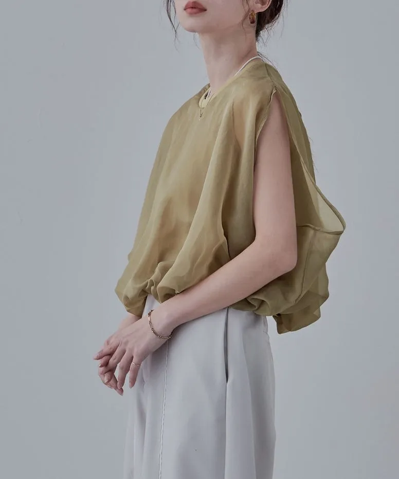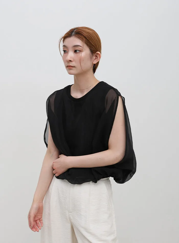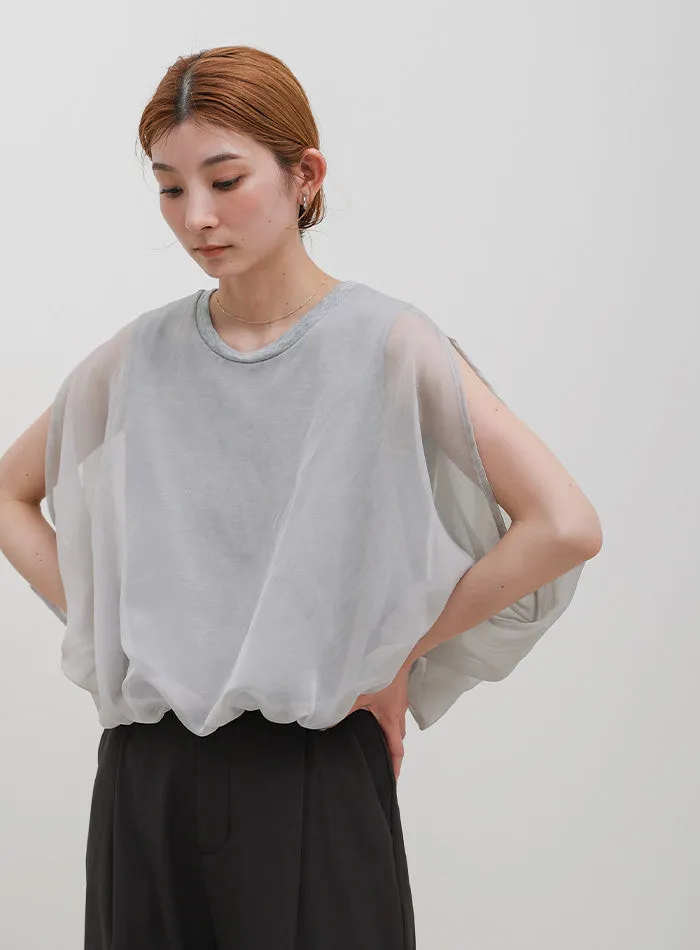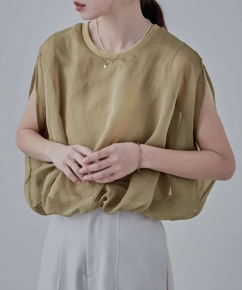 雙層設計短版花苞氣球造型上衣
