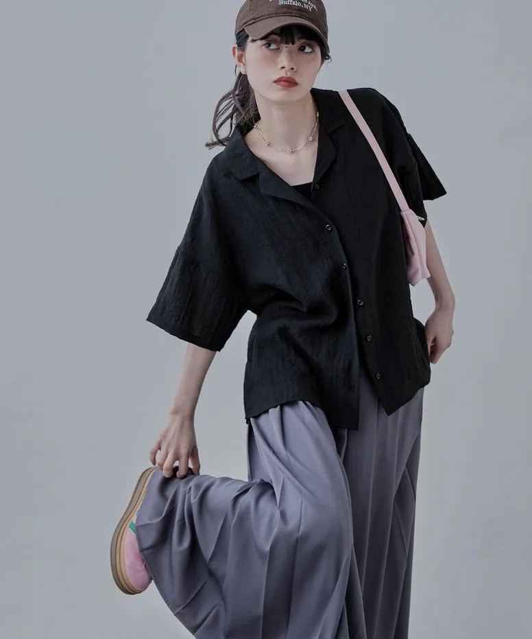 涼爽男孩感翻領半袖開襟襯衫