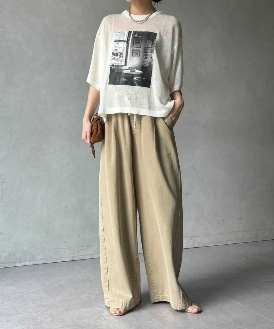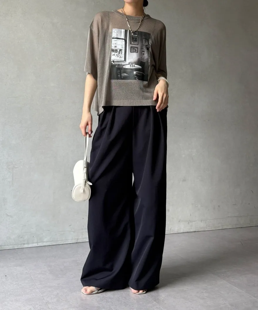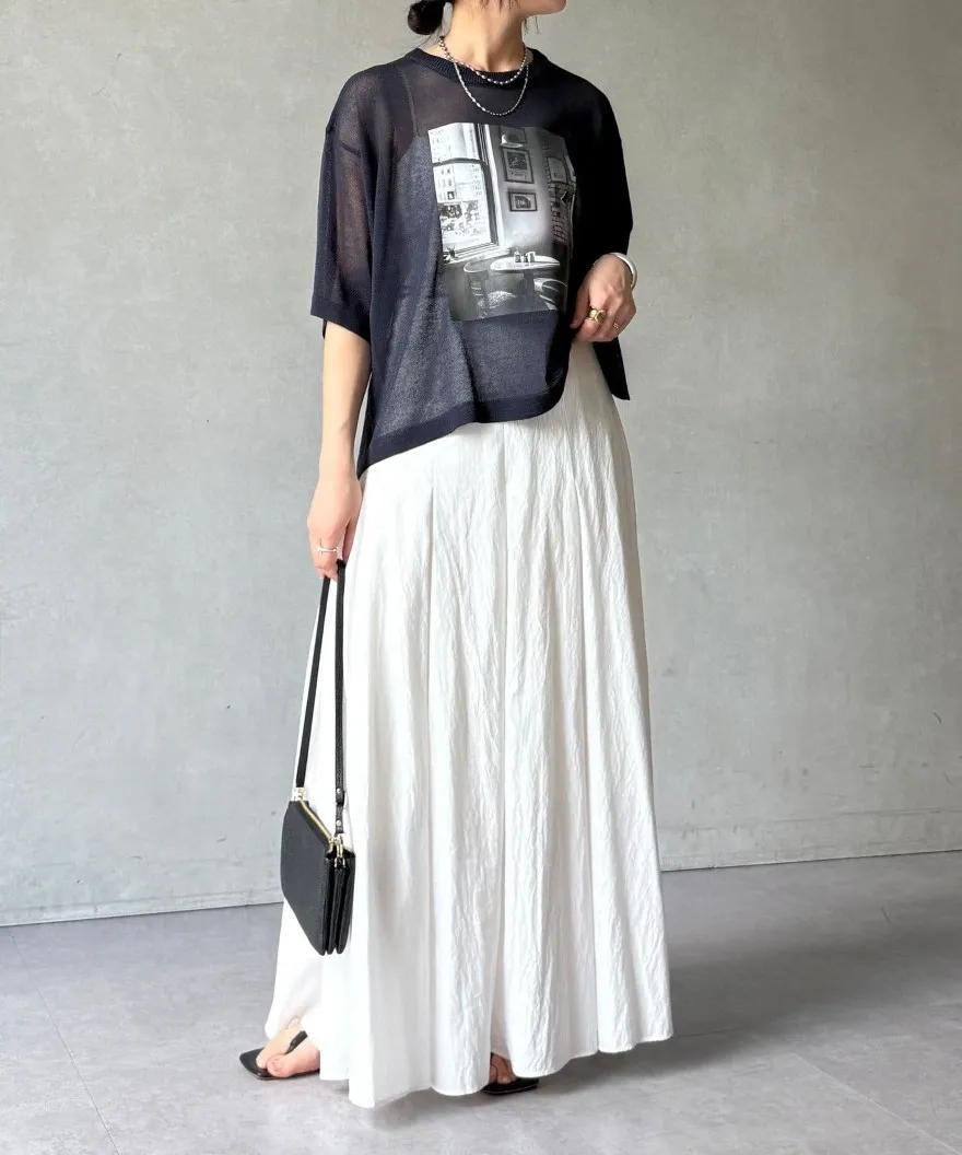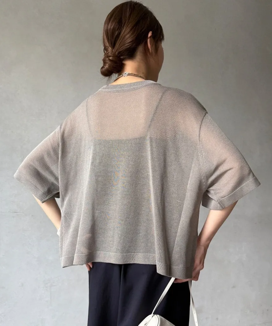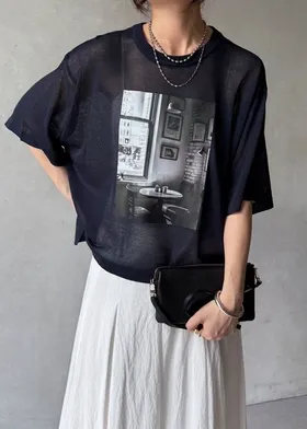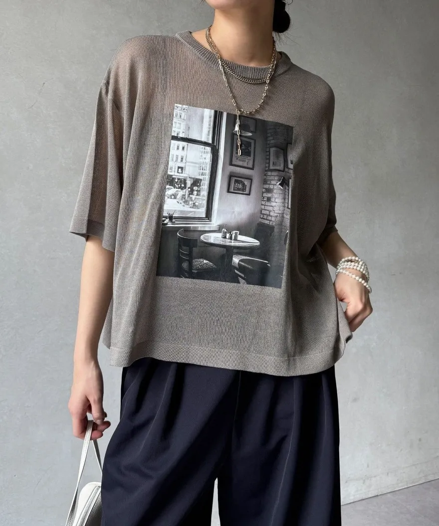 照片印刷麻觸感透感短袖針織衫