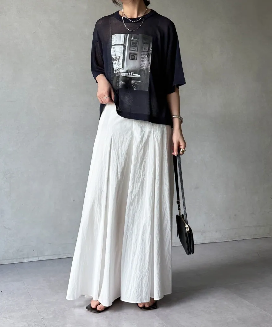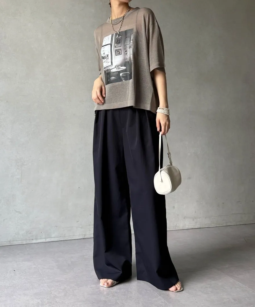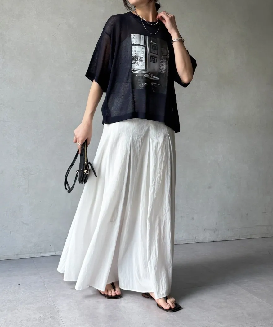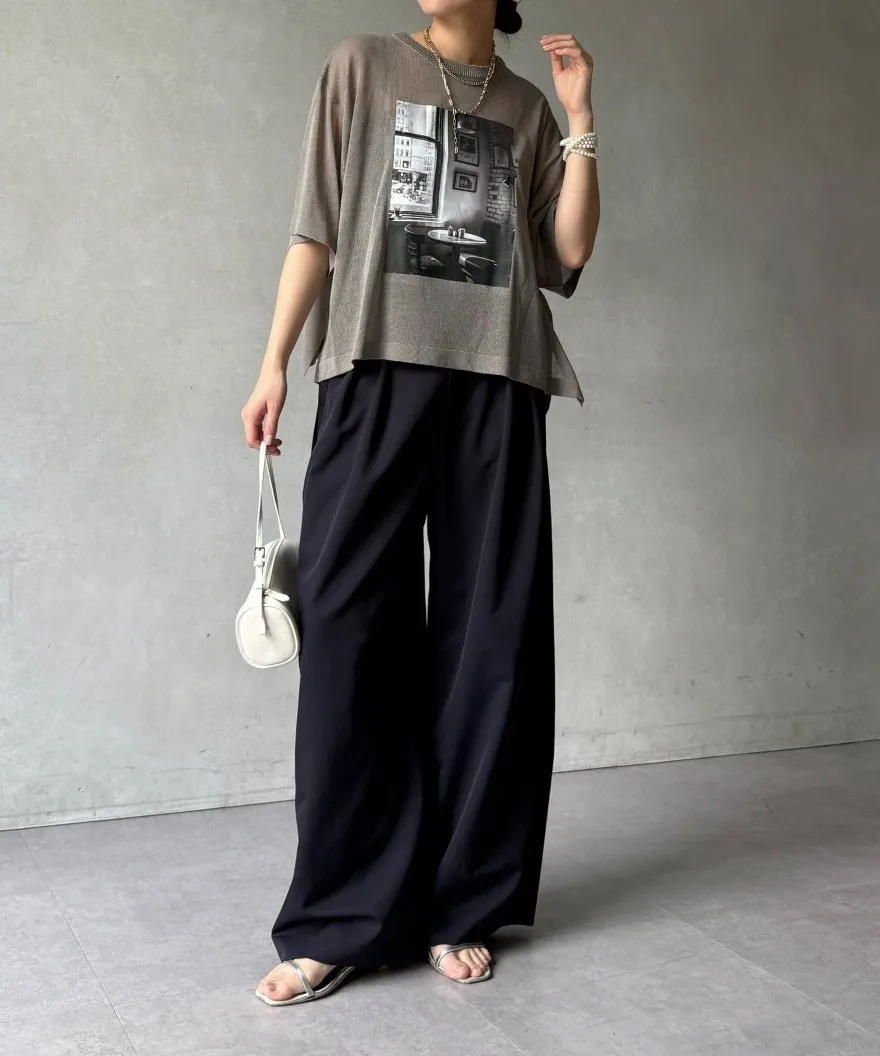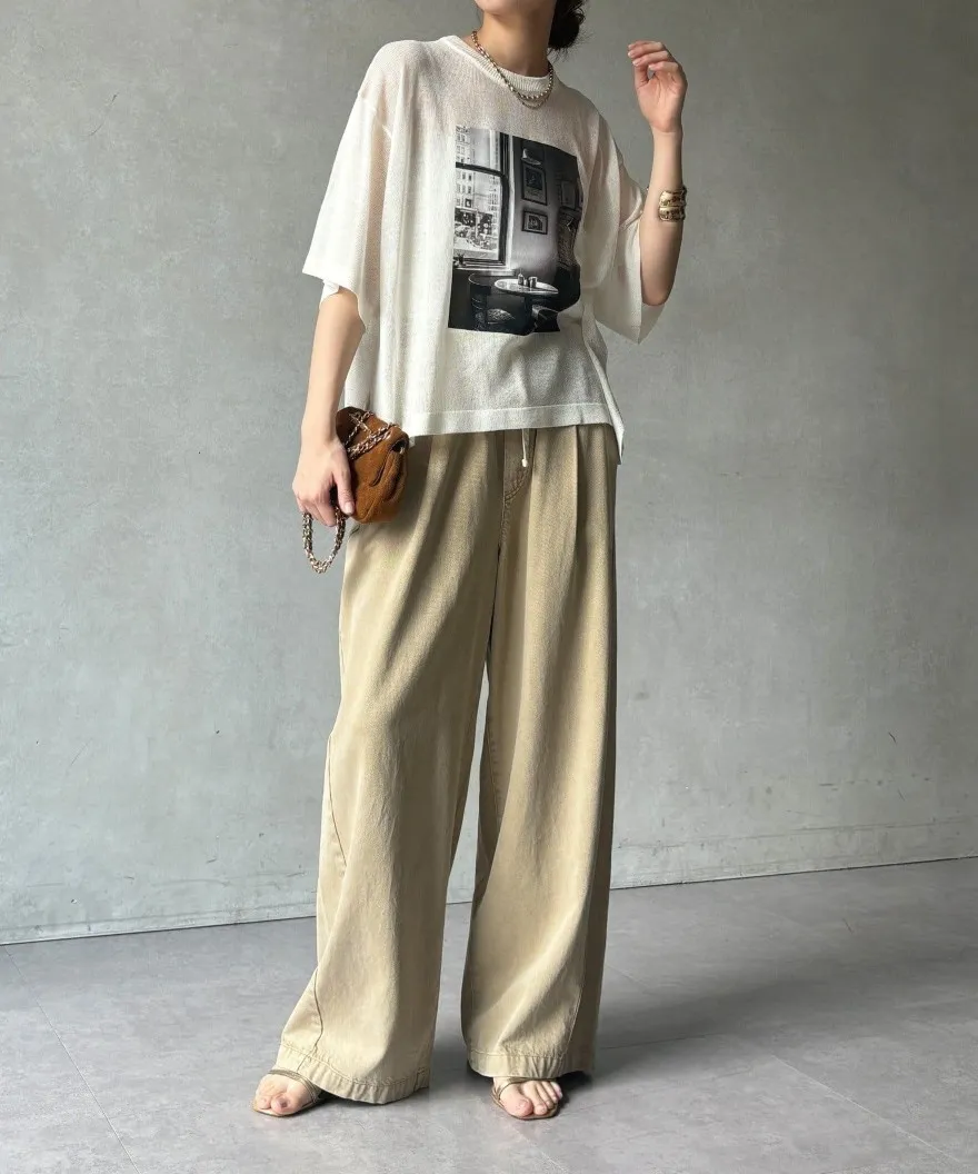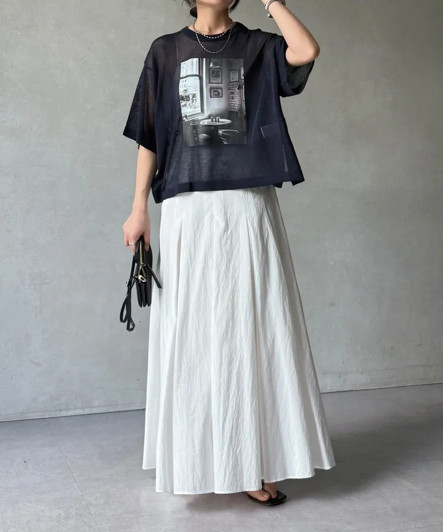 照片印刷麻觸感透感短袖針織衫