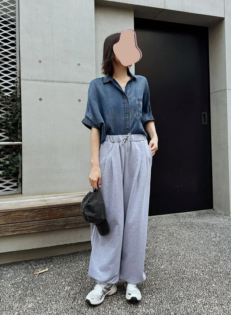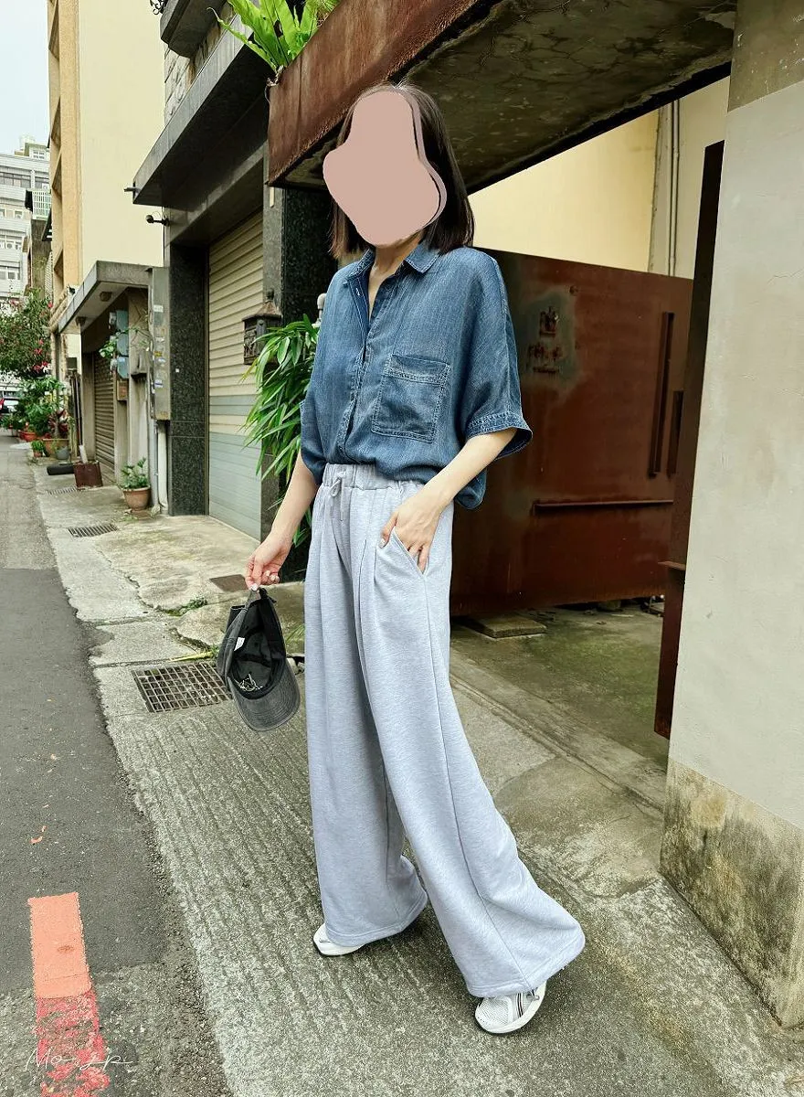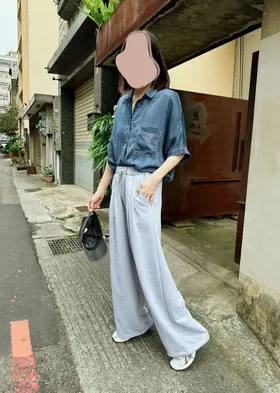 寬度非常好看~整個是質感休閒感.但在腰部利用打褶~營造正式感