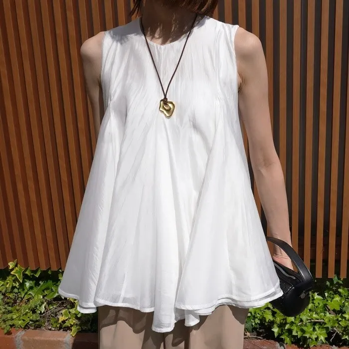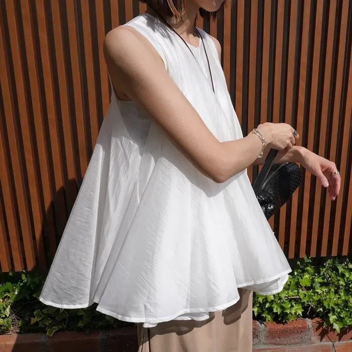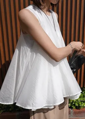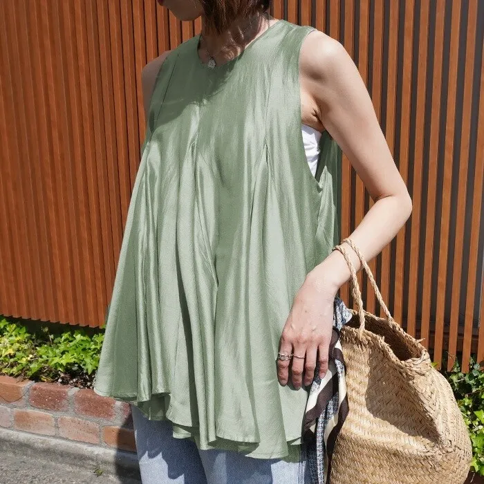 天絲材質~光澤搖曳層次波浪下擺造型背心