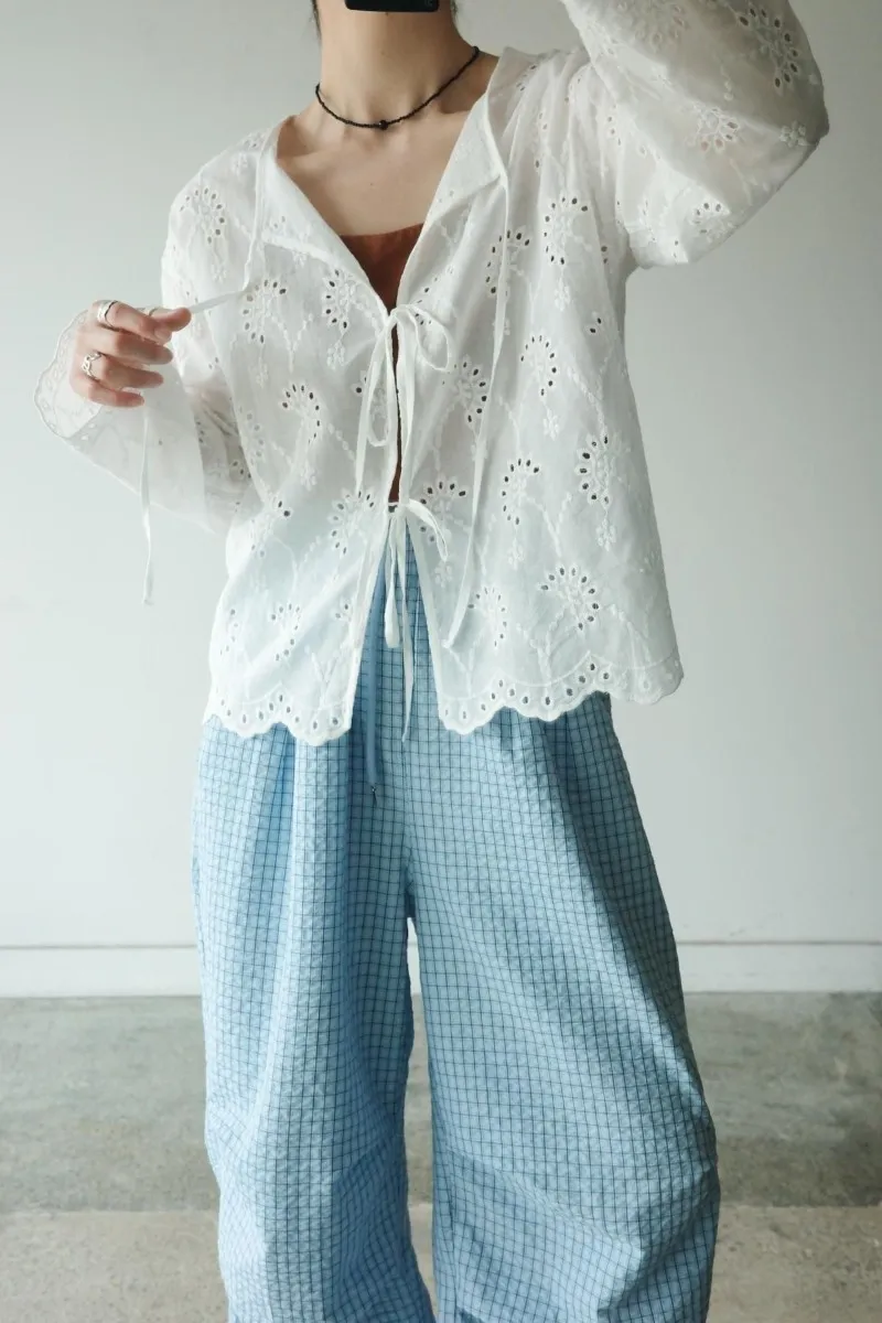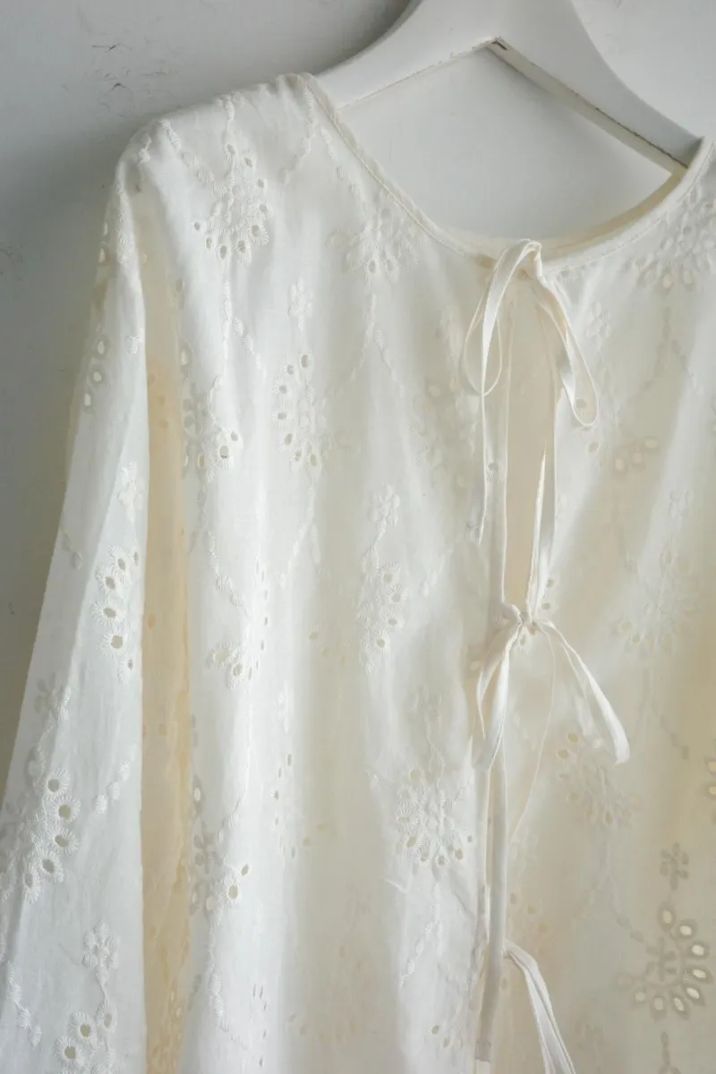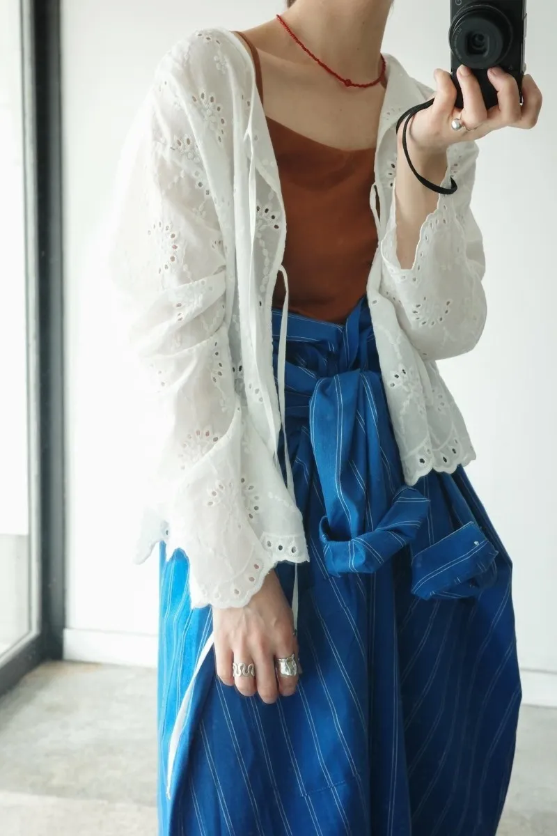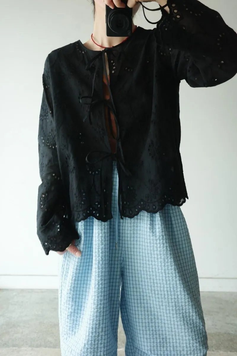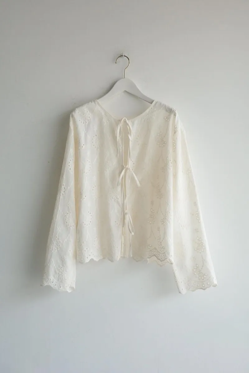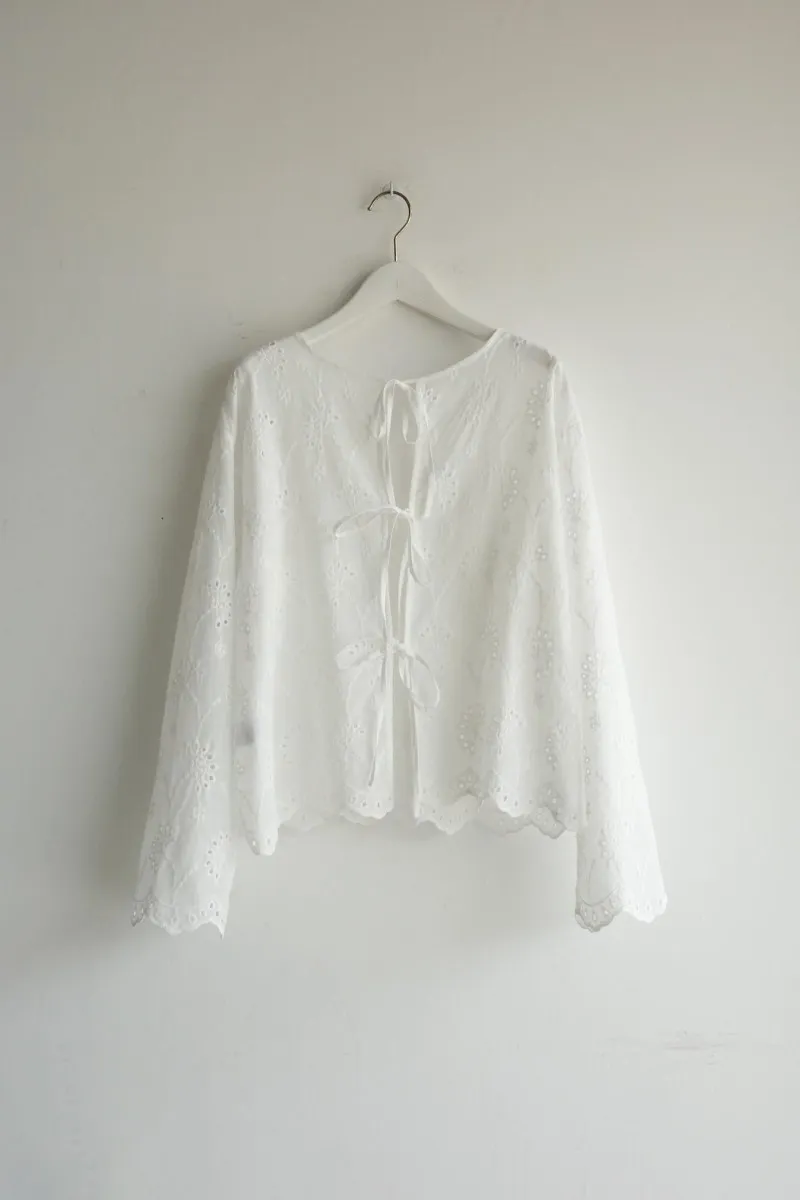 前後2WAY~刺繡雕花綁帶造型上衣罩衫