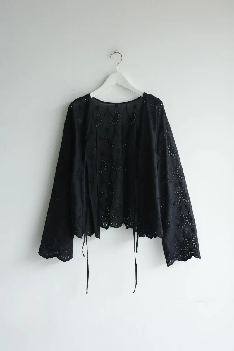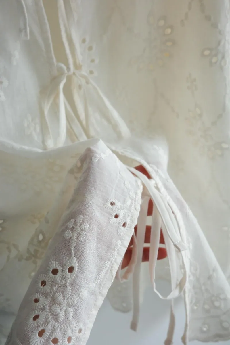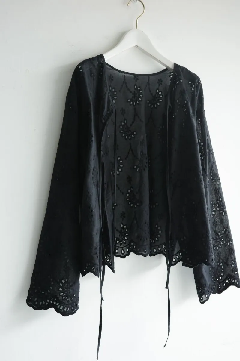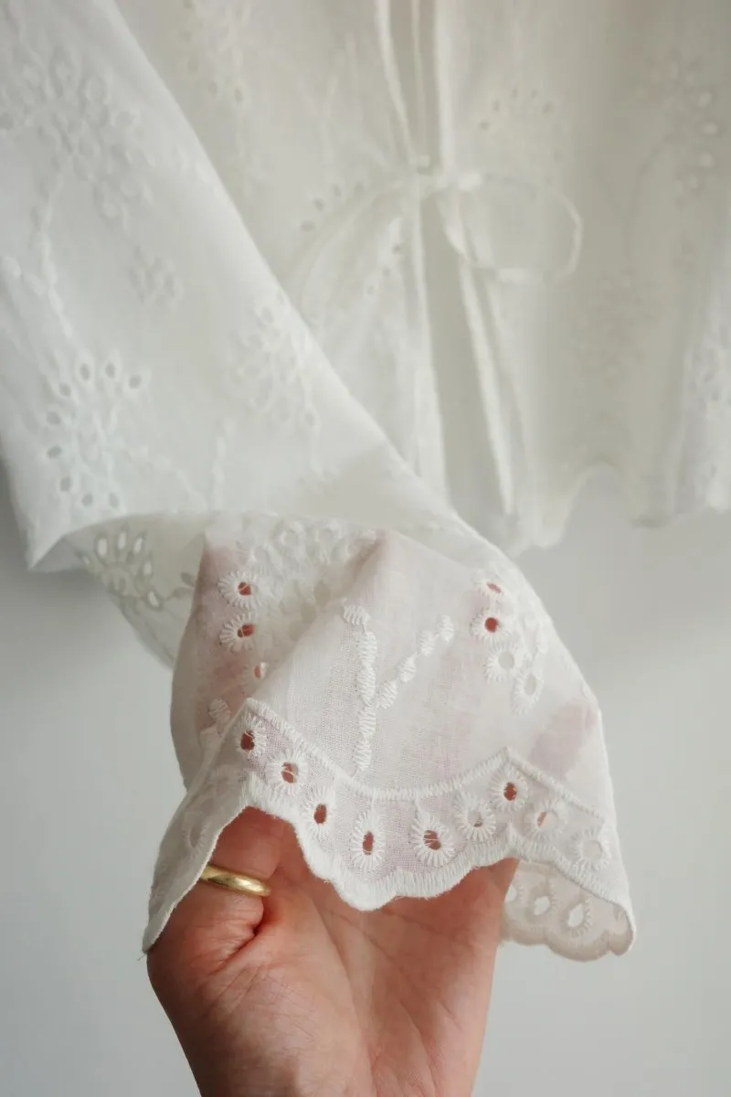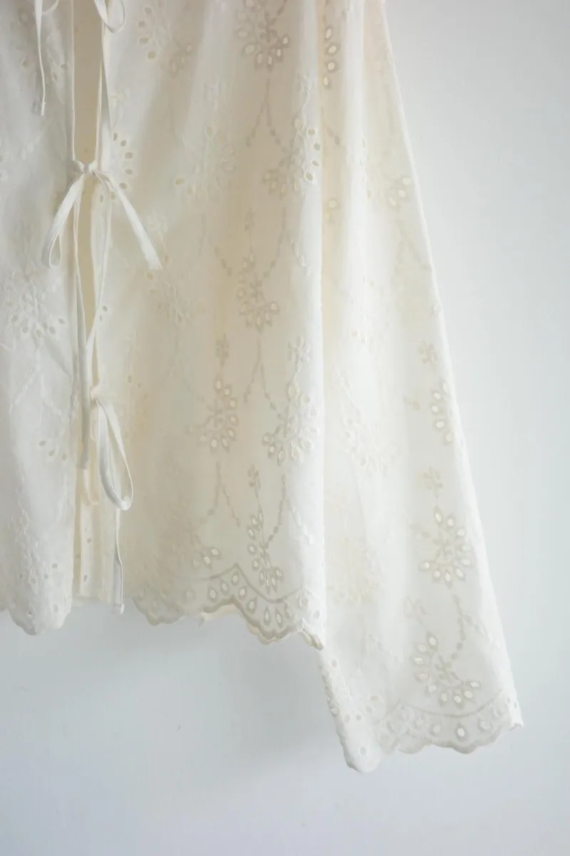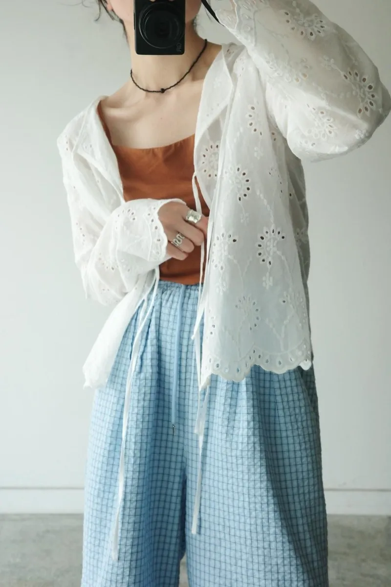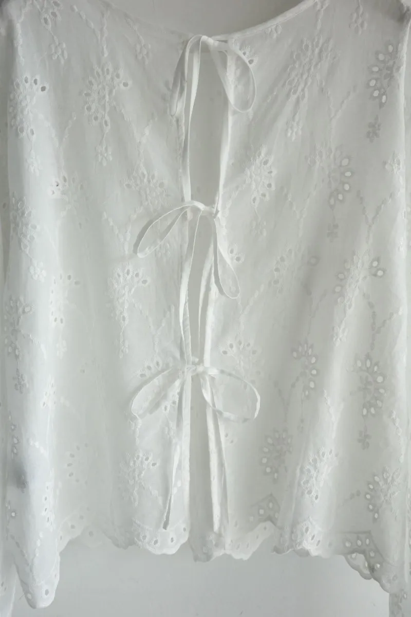 前後2WAY~刺繡雕花綁帶造型上衣罩衫