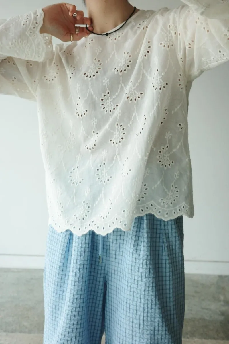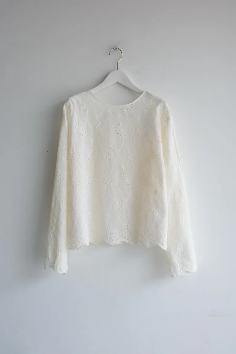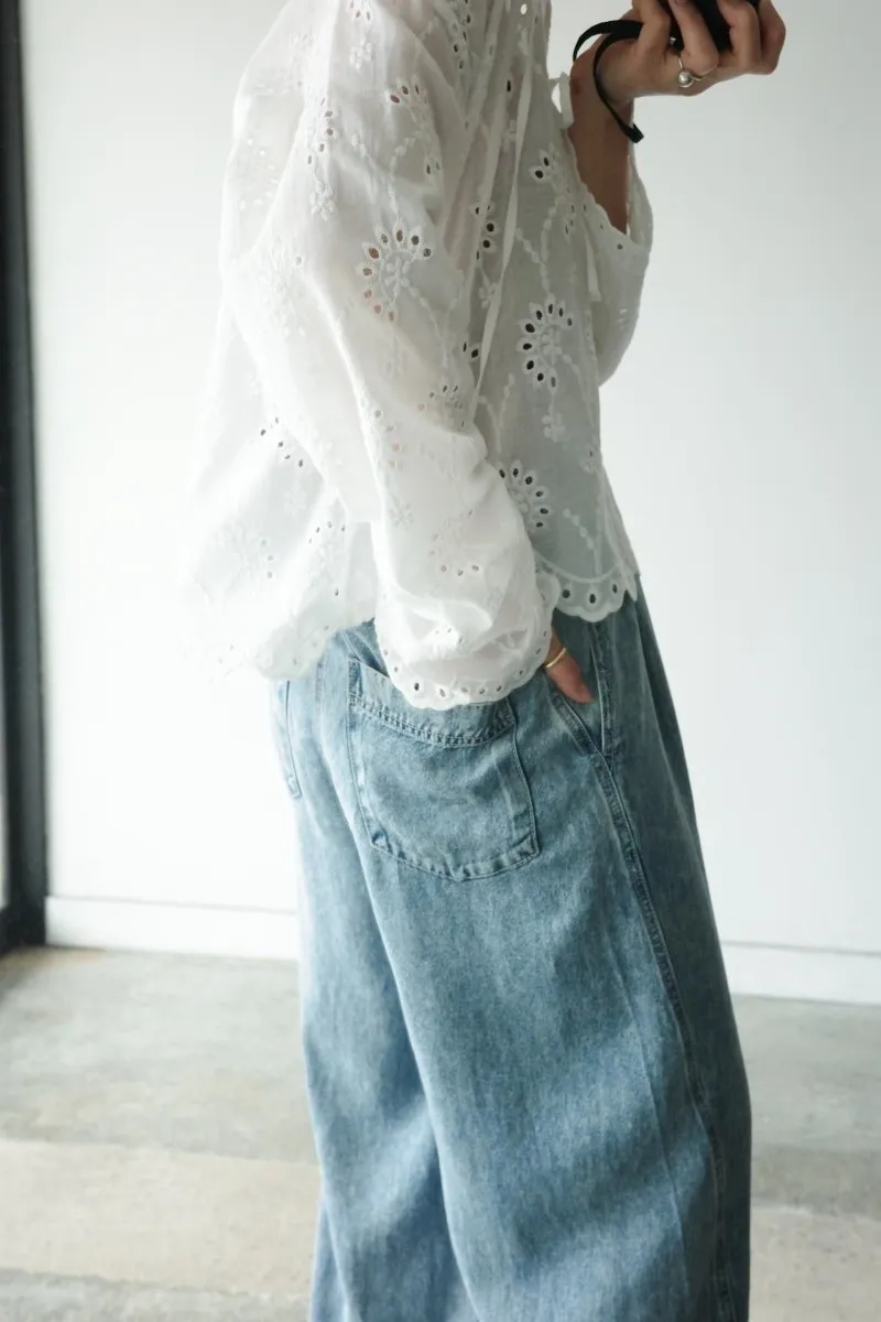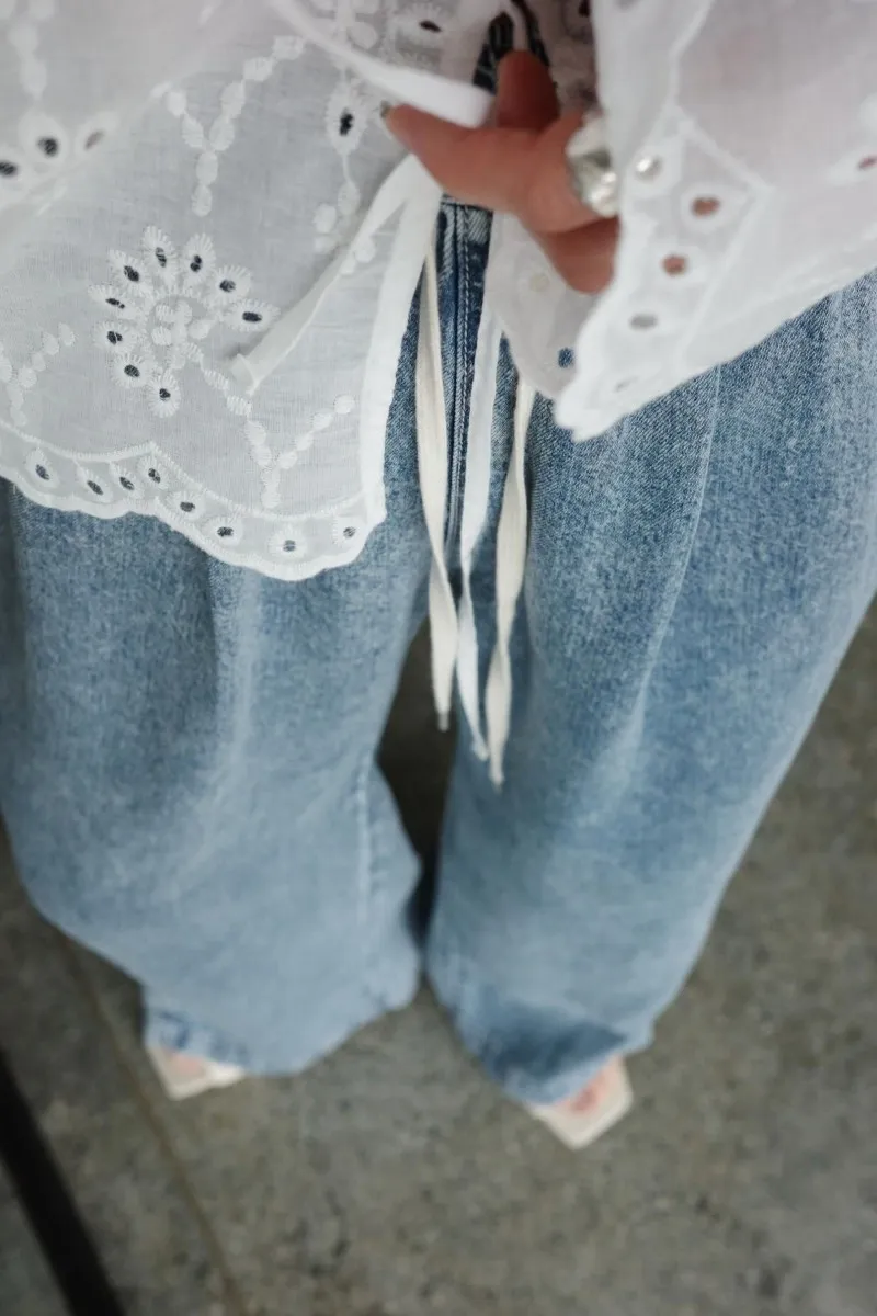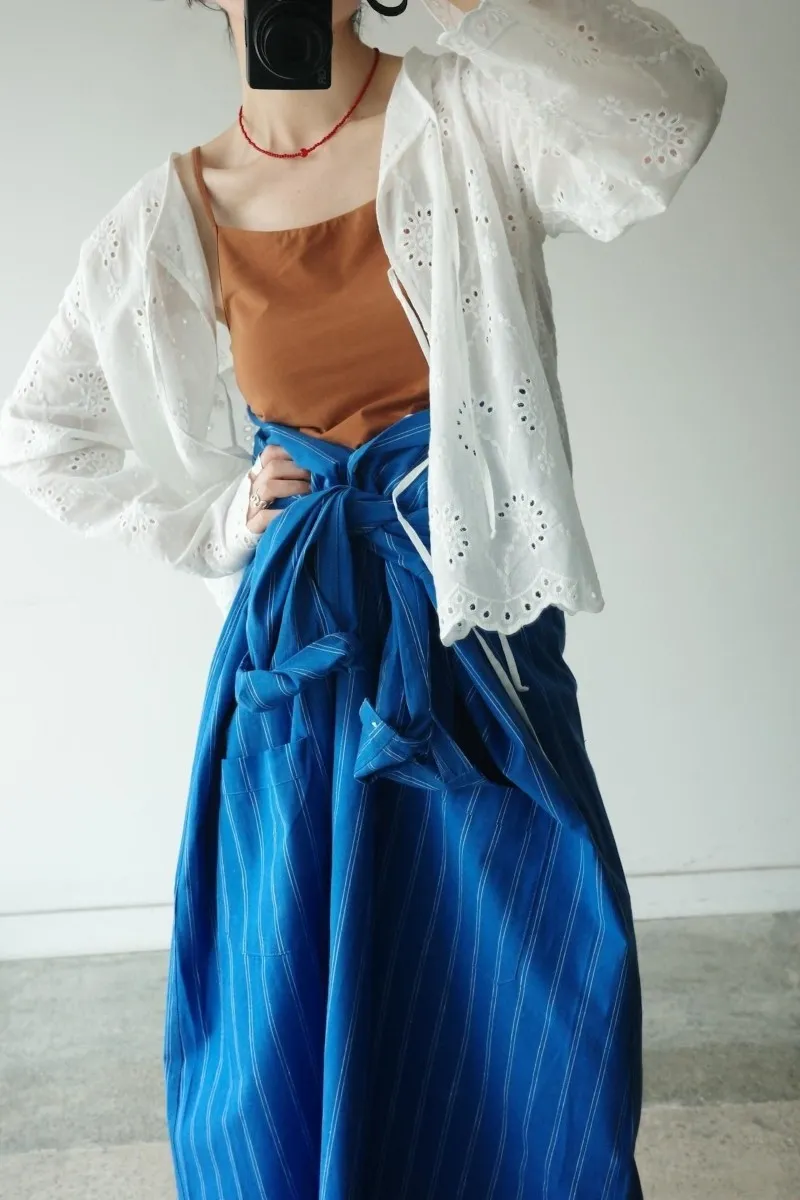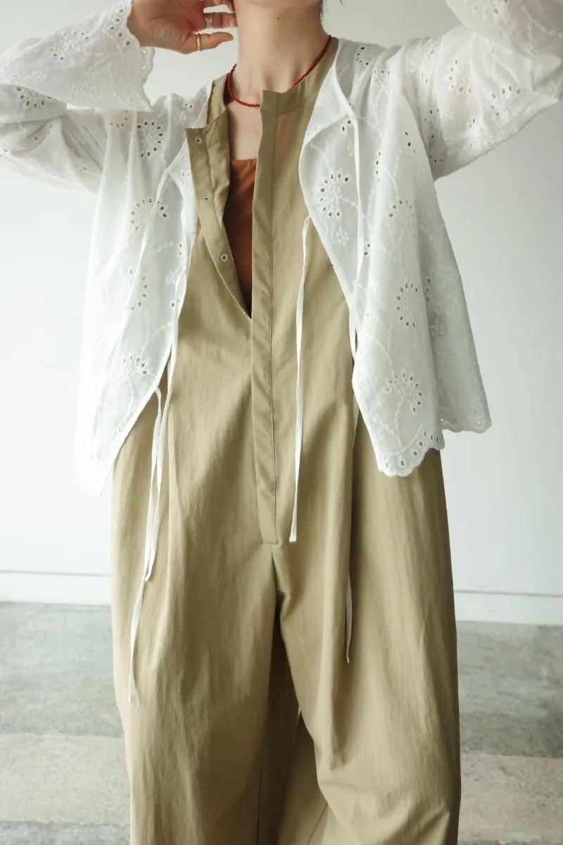 前後2WAY~刺繡雕花綁帶造型上衣罩衫