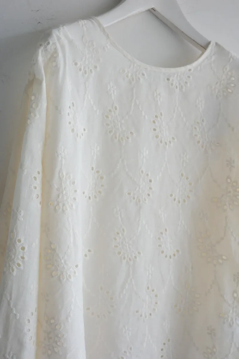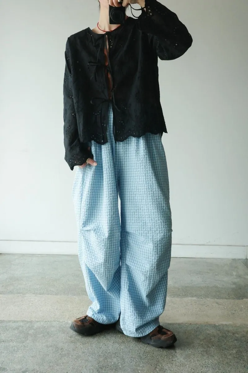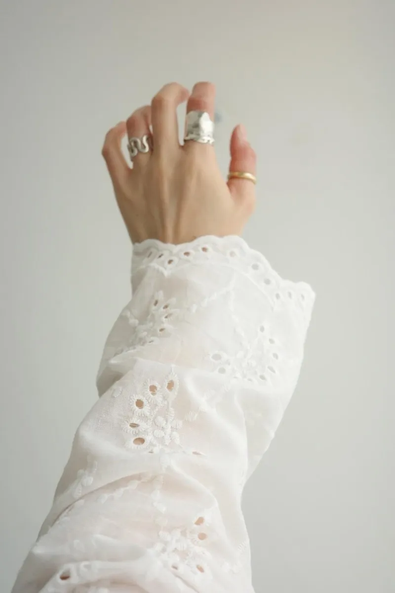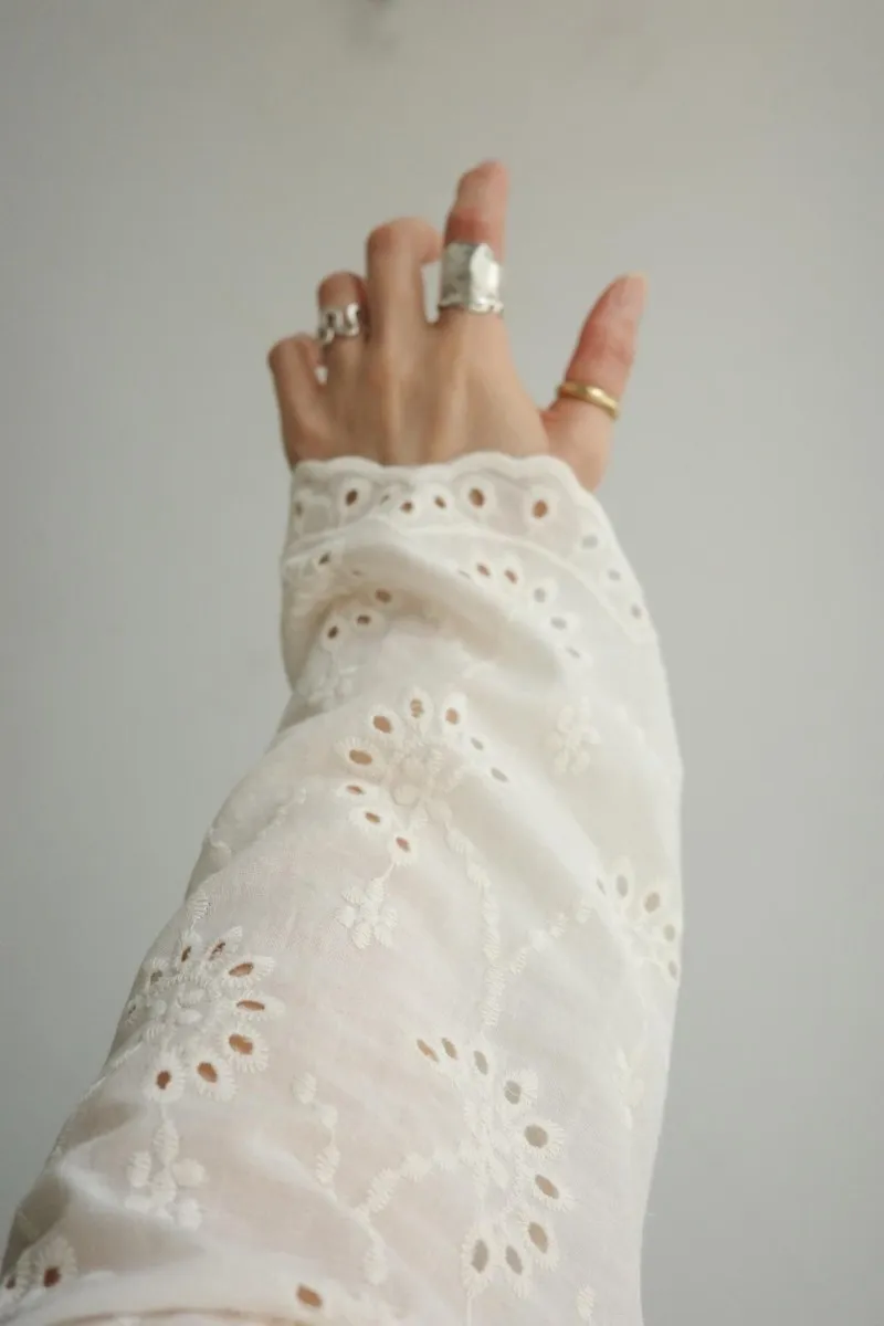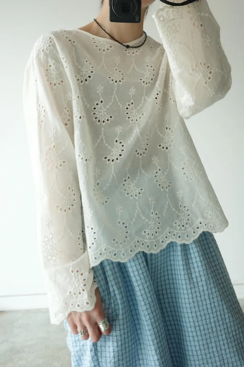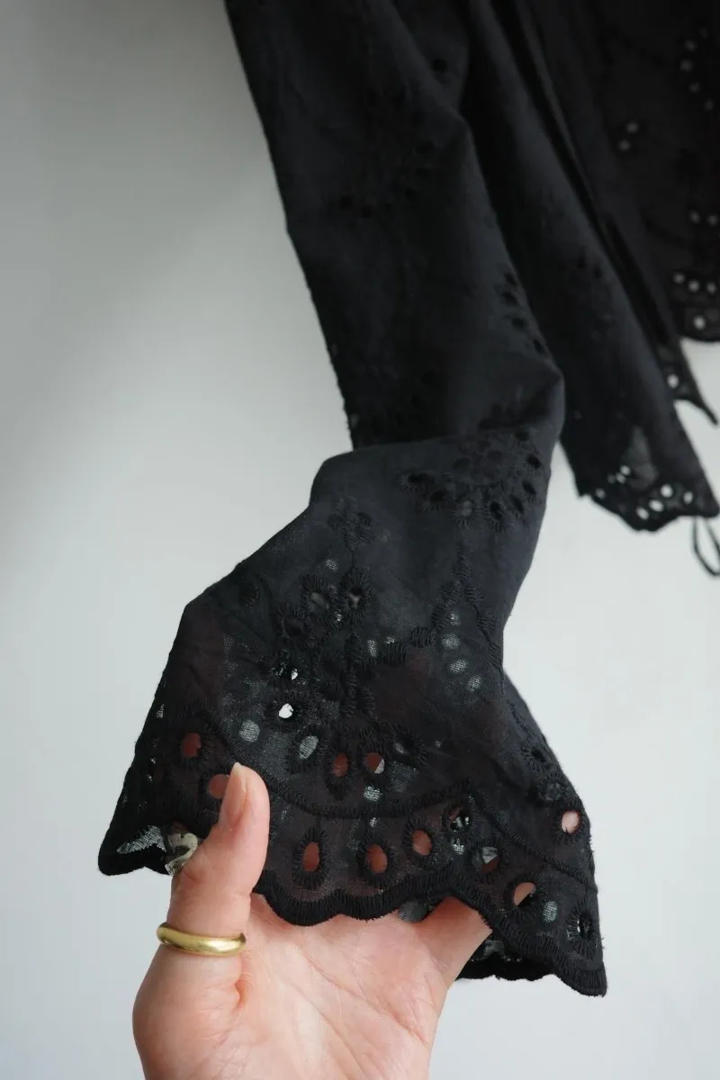 前後2WAY~刺繡雕花綁帶造型上衣罩衫