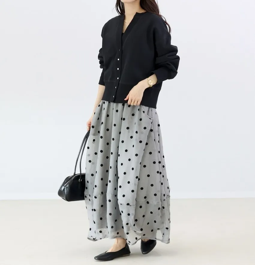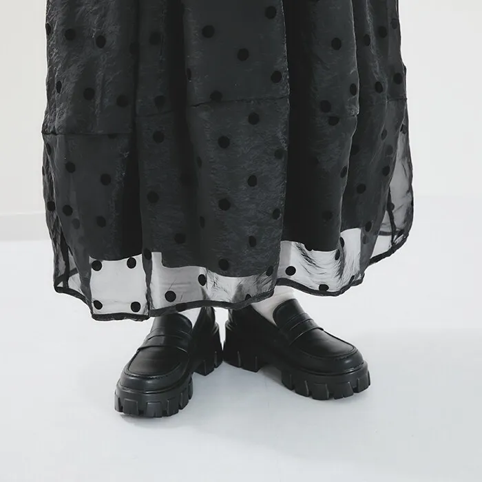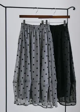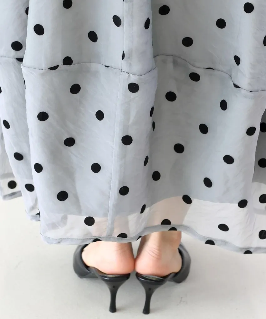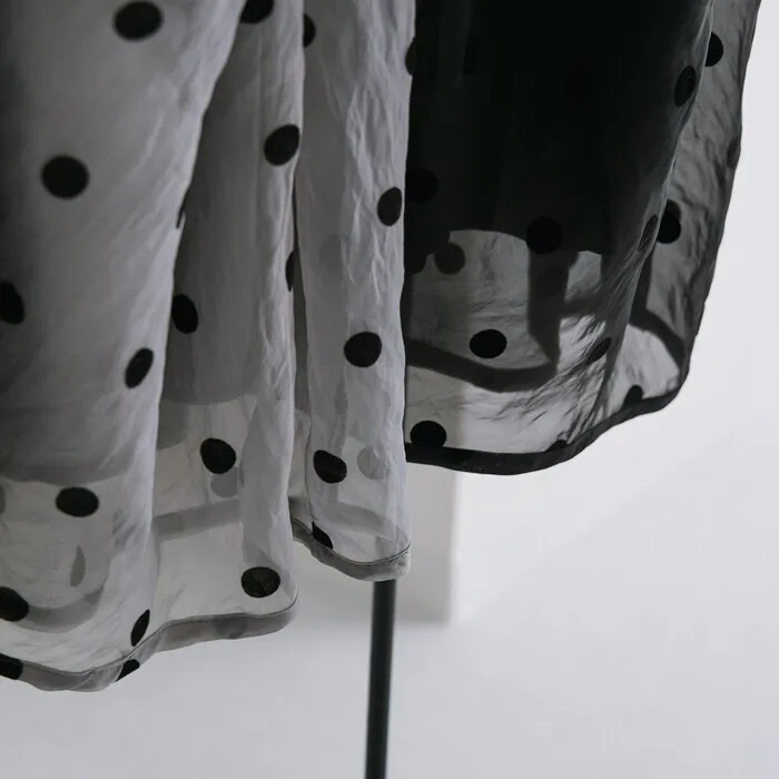 透明波點立體長裙,可愛減齡感點點絨面刺繡