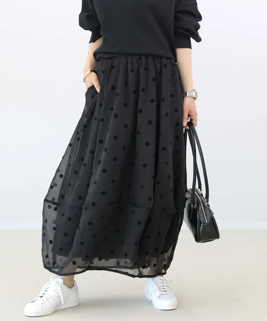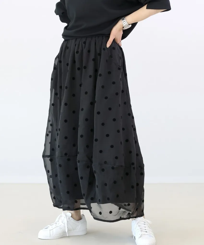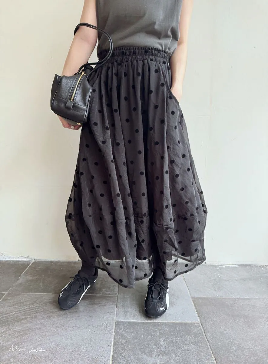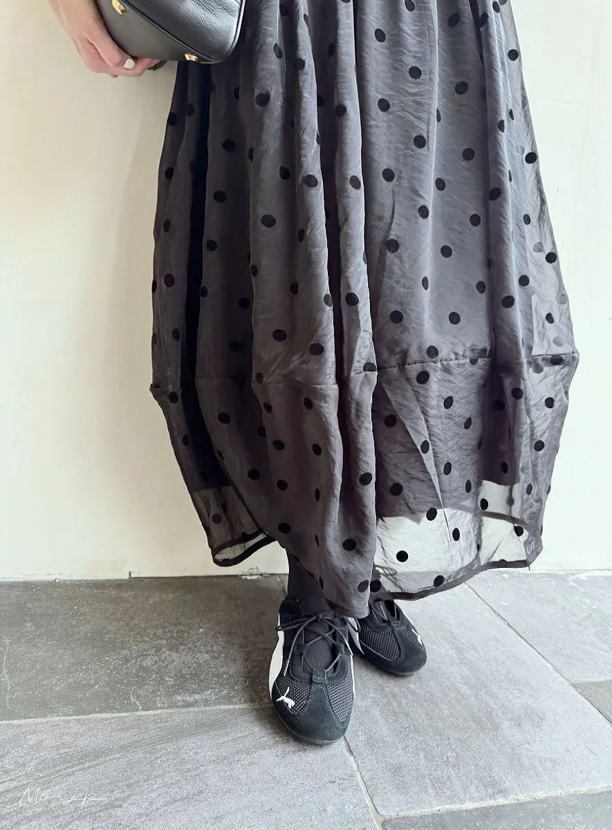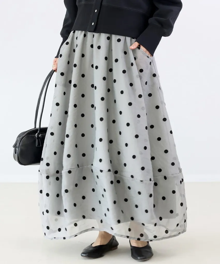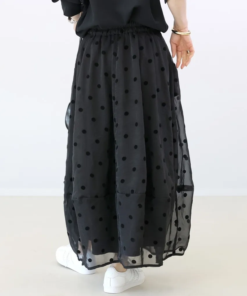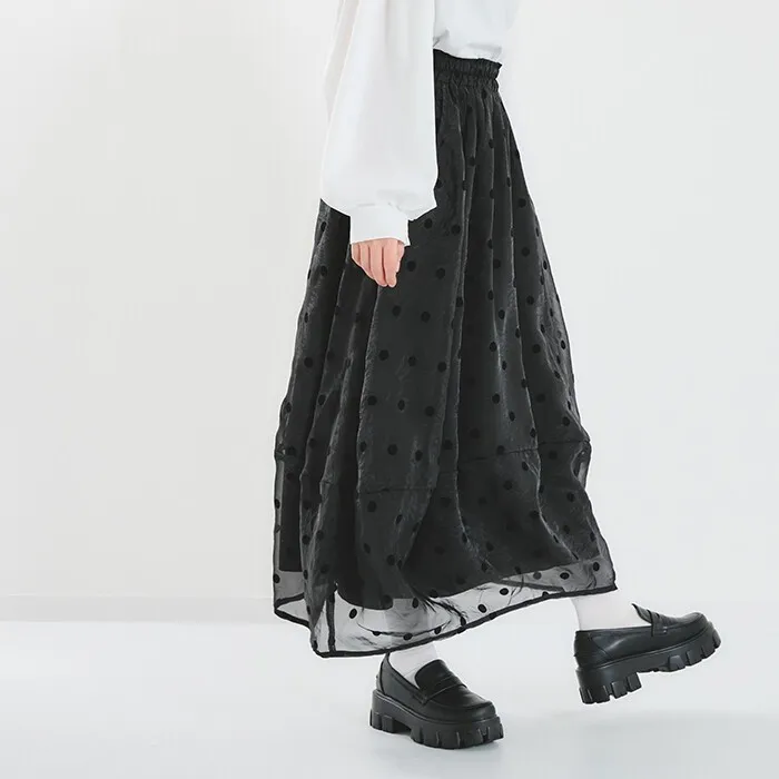 <必收>立體絨面點點刺繡透視雪紡拼接剪裁鐘形氣球裙