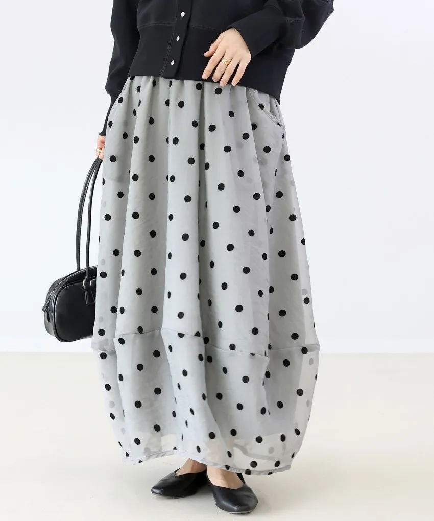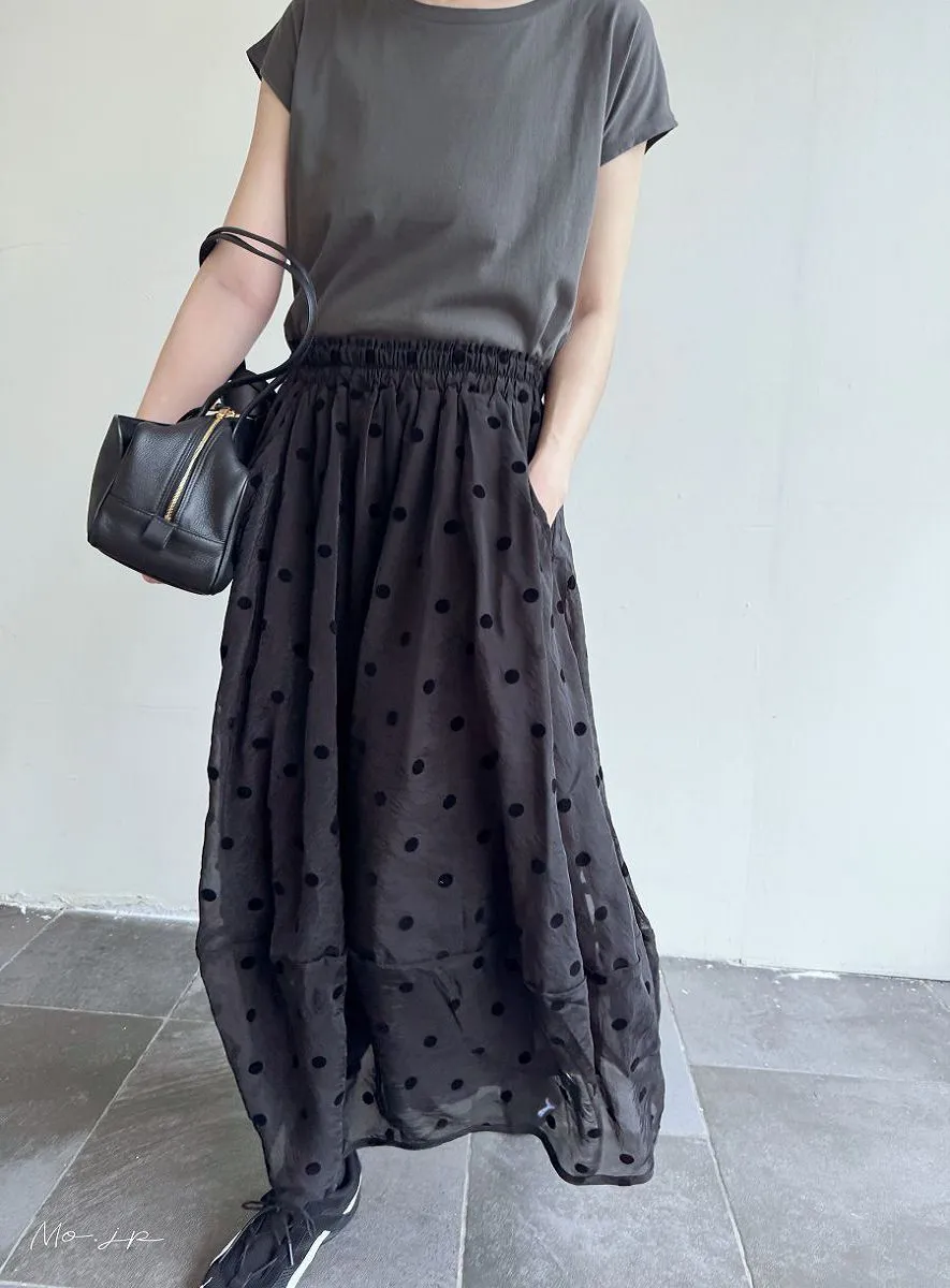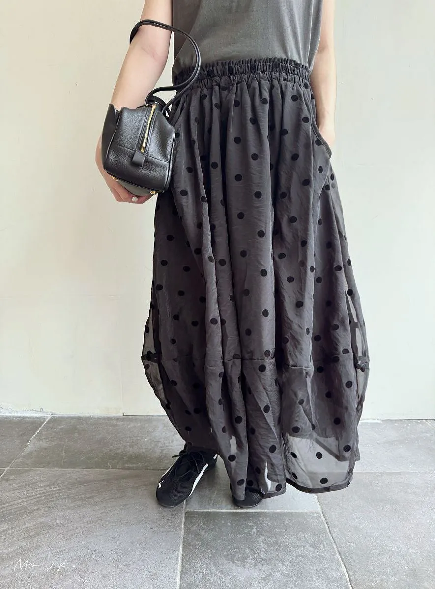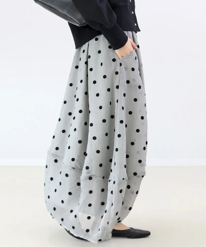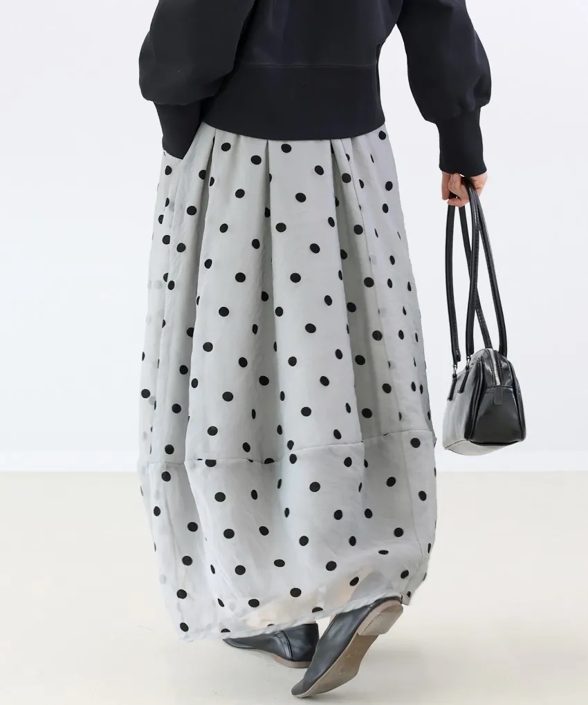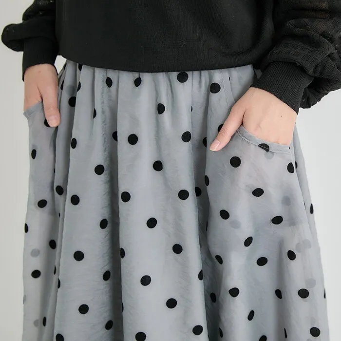 <必收>立體絨面點點刺繡透視雪紡拼接剪裁鐘形氣球裙